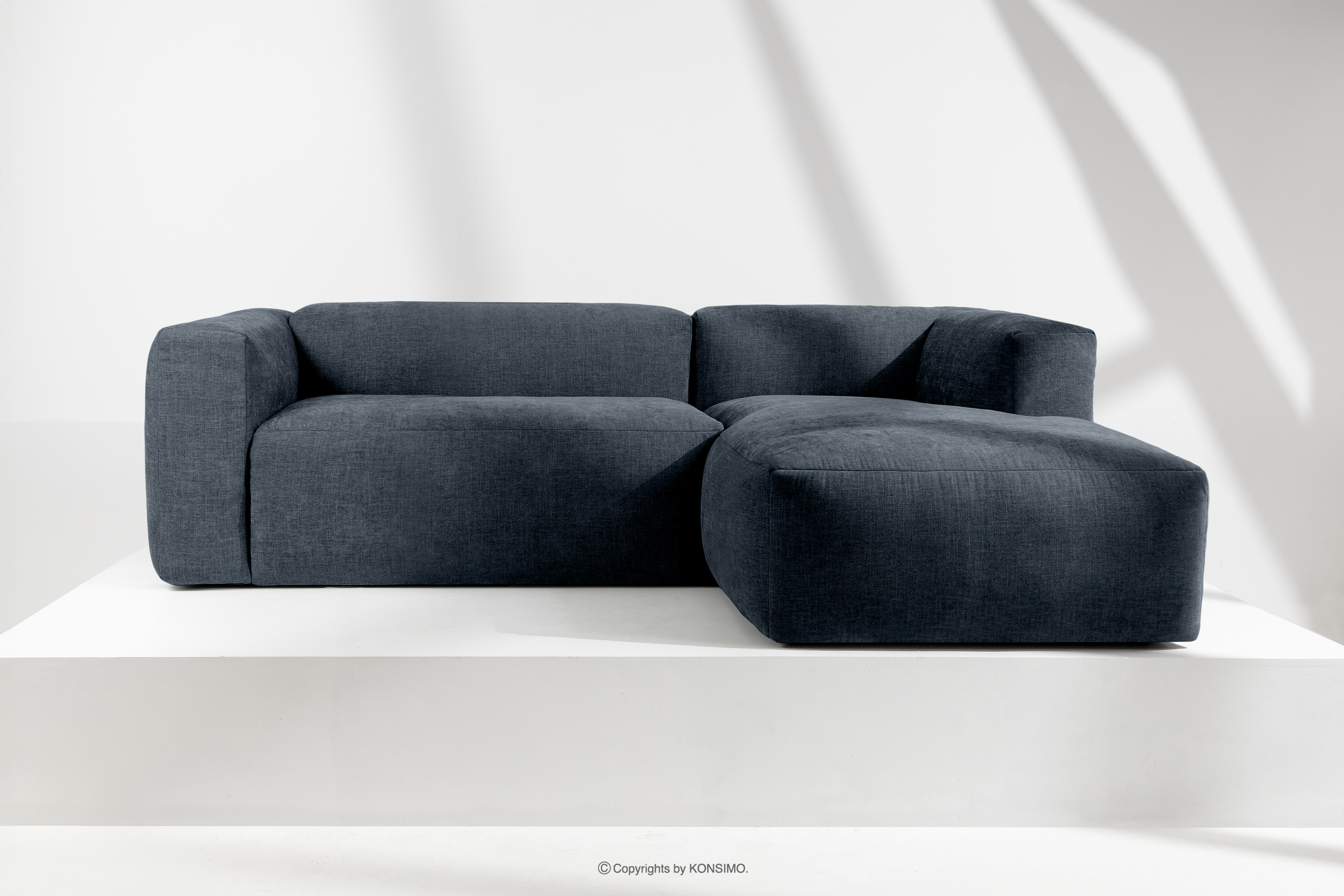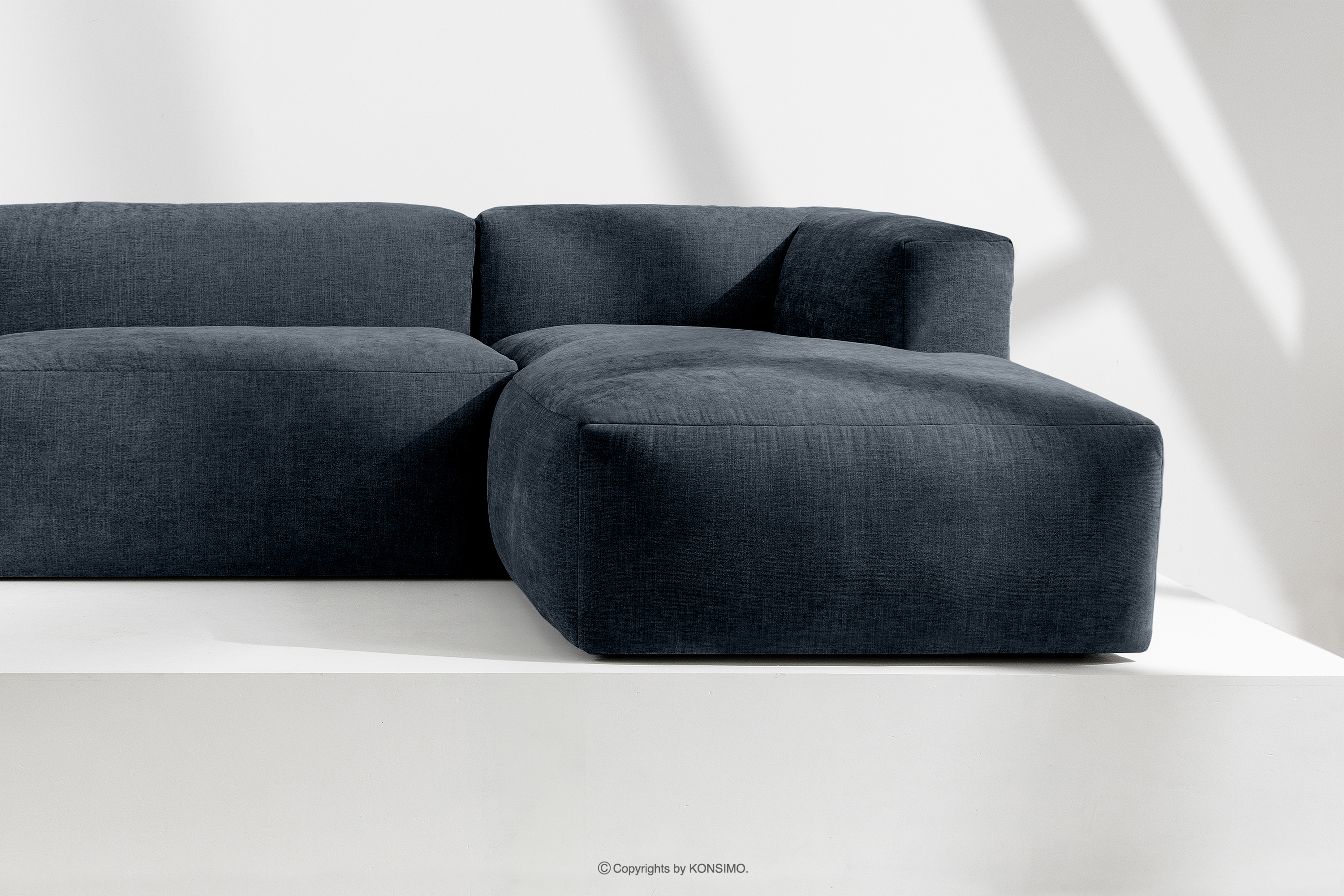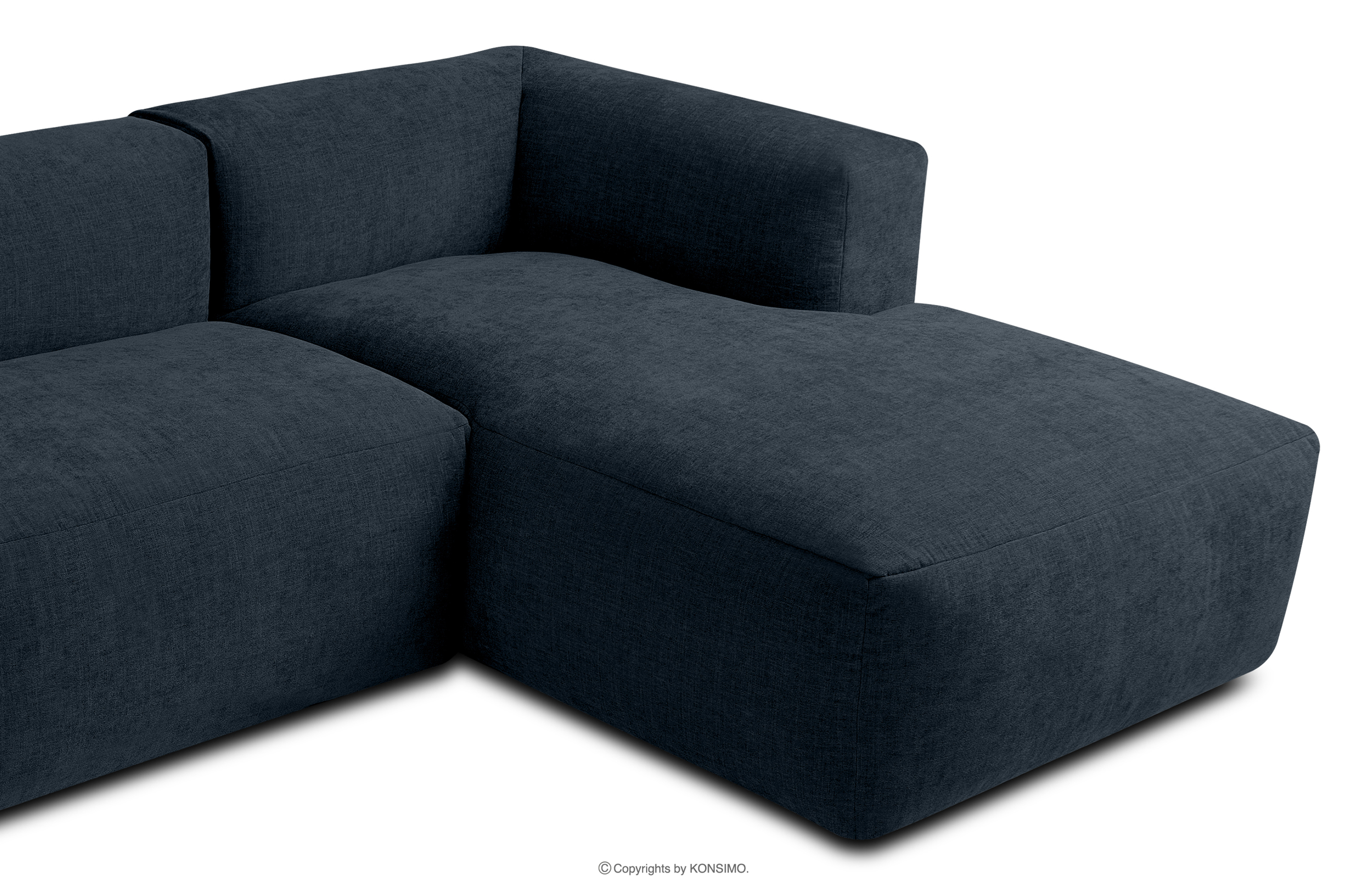 BUFFO Objav celú kolekciu Modulárna rohová pohovka do obývačky z tkanej látky tmavomodrej farby vpravo- farba tmavomodrá
