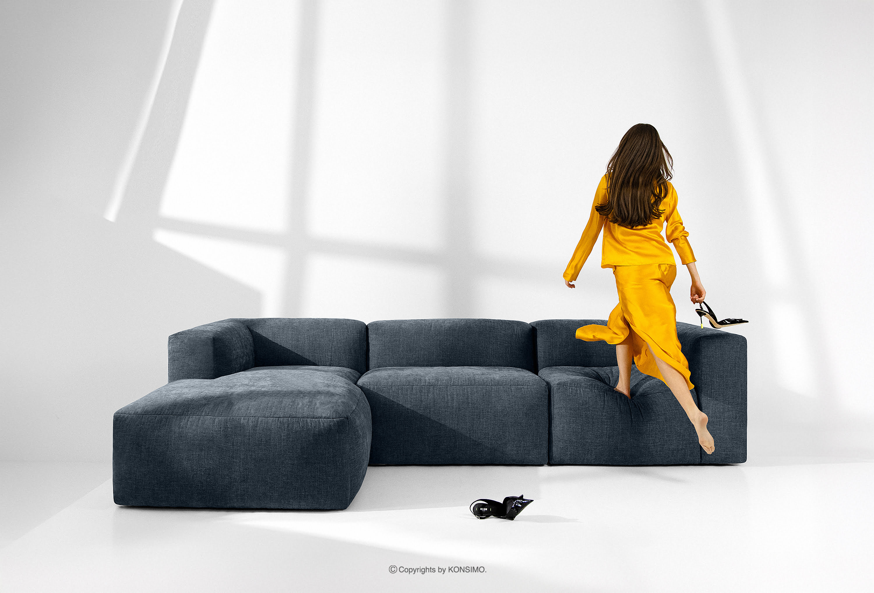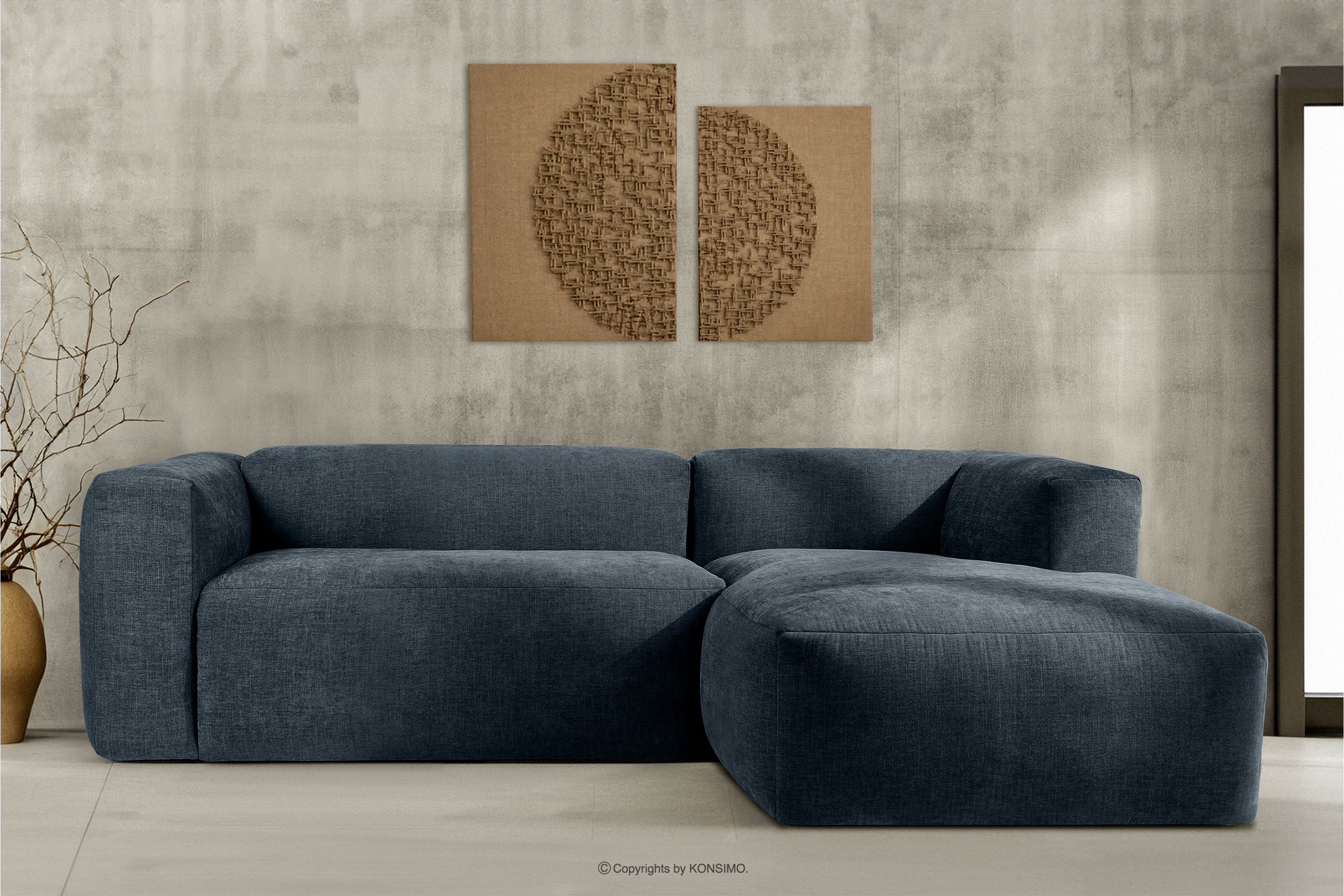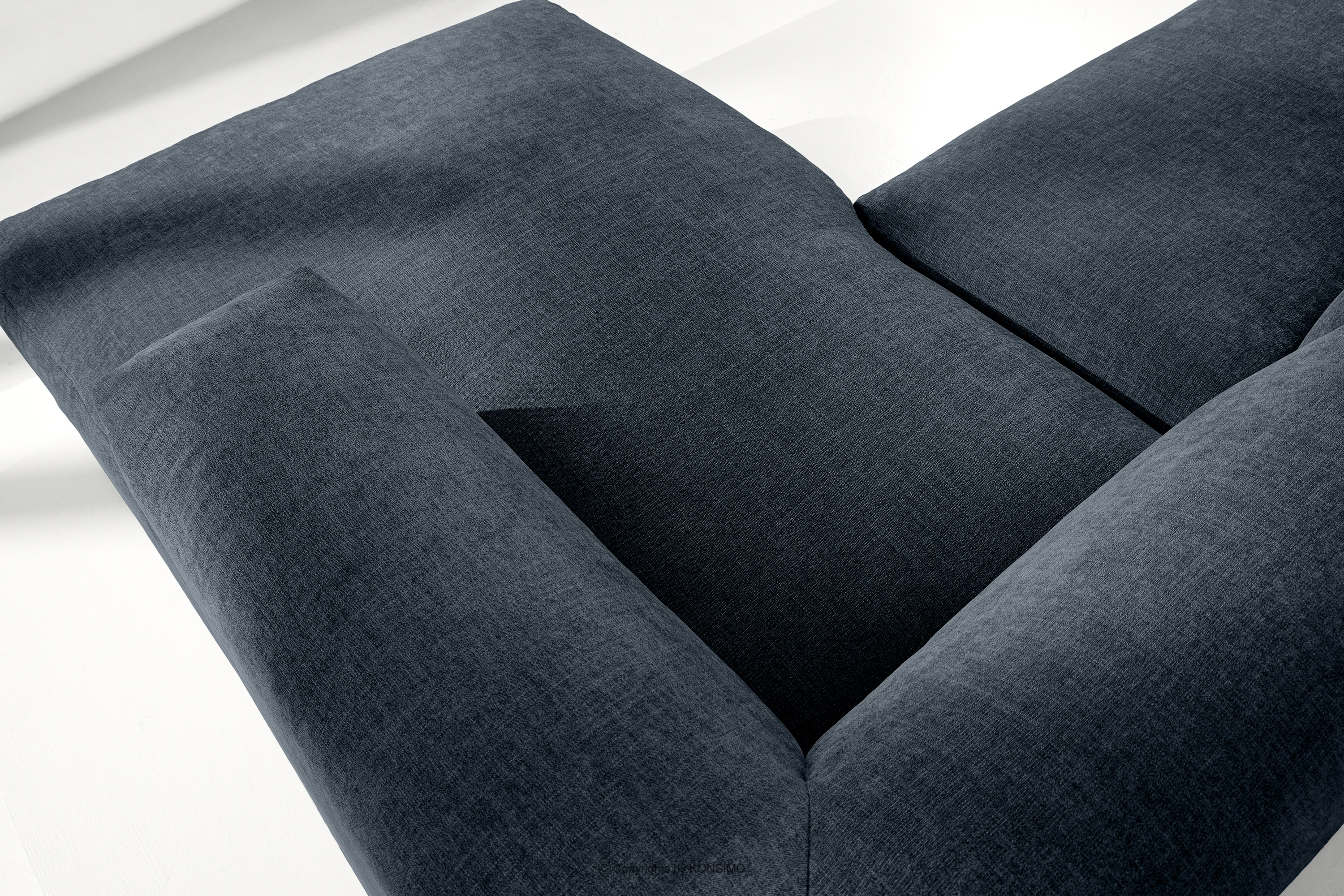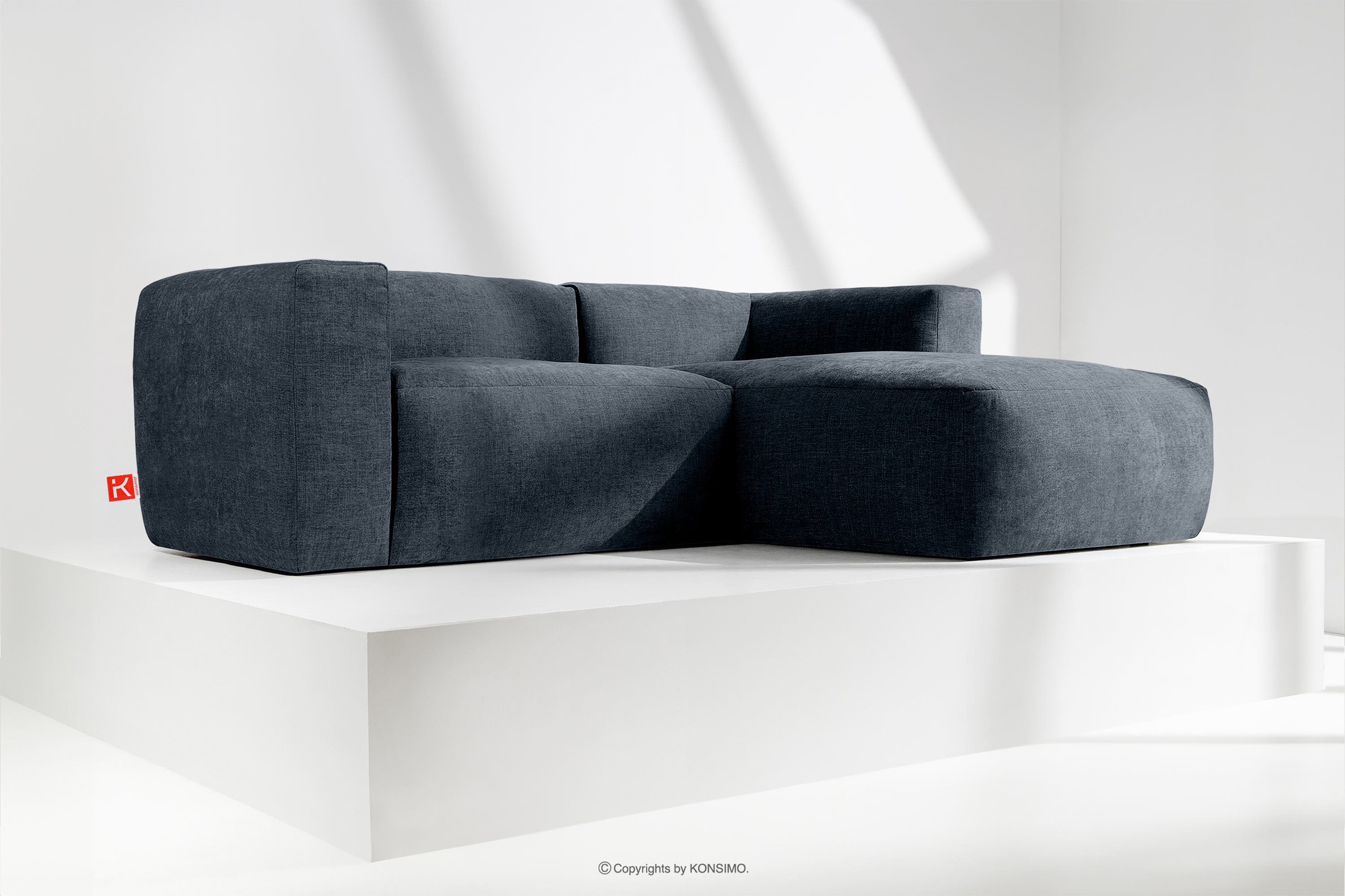 BUFFO Objav celú kolekciu Modulárna rohová pohovka do obývačky z tkanej látky tmavomodrej farby vpravo- farba tmavomodrá