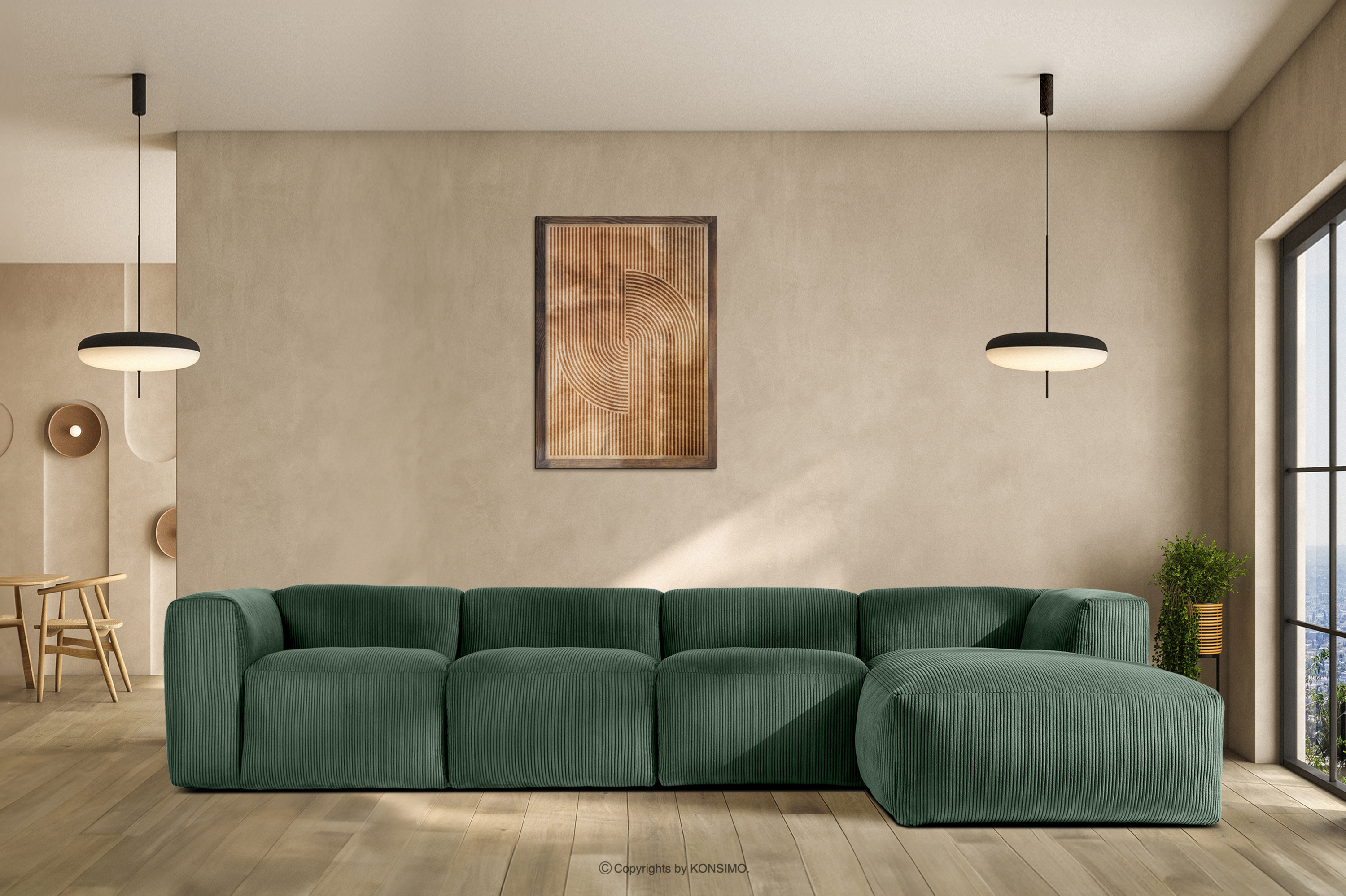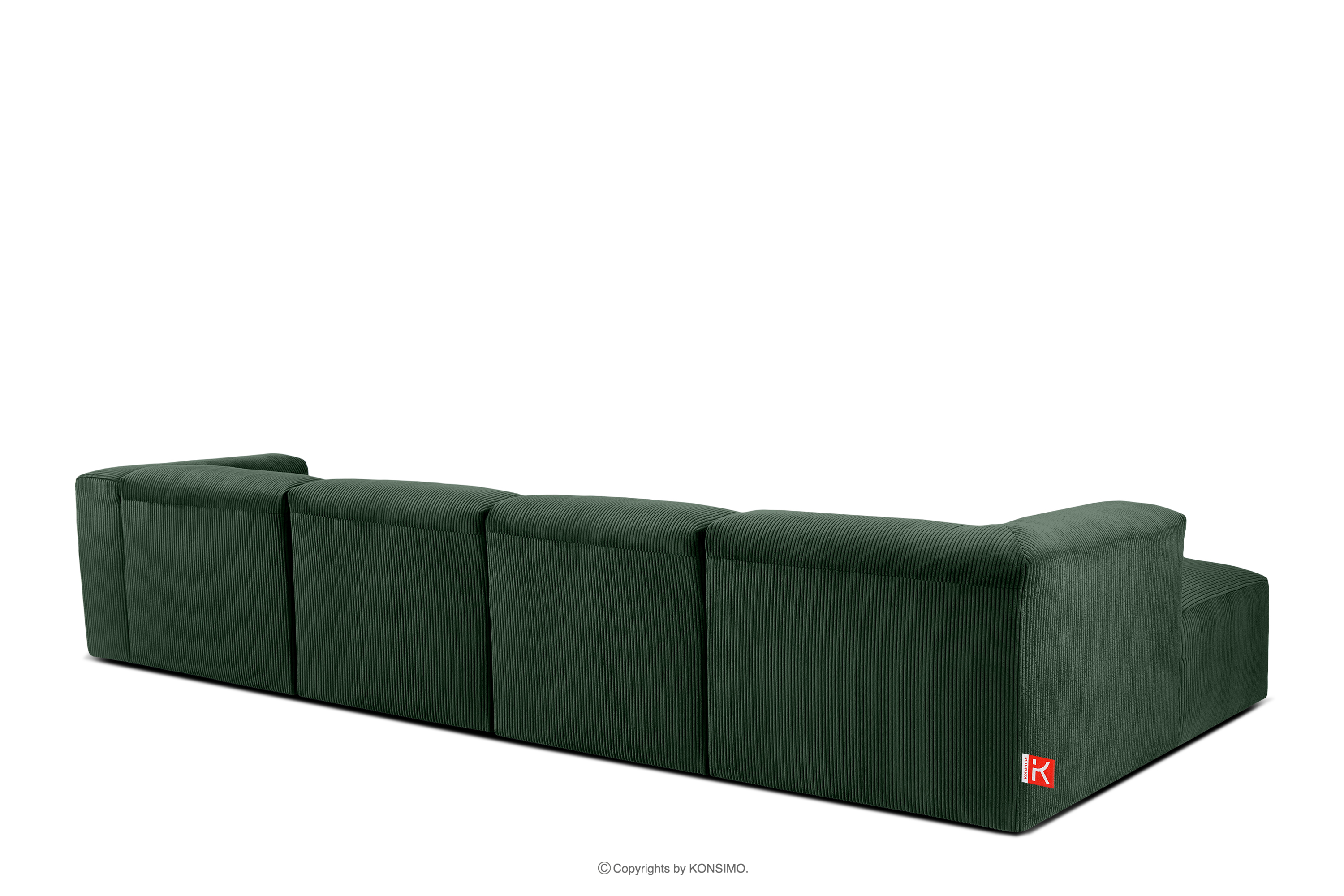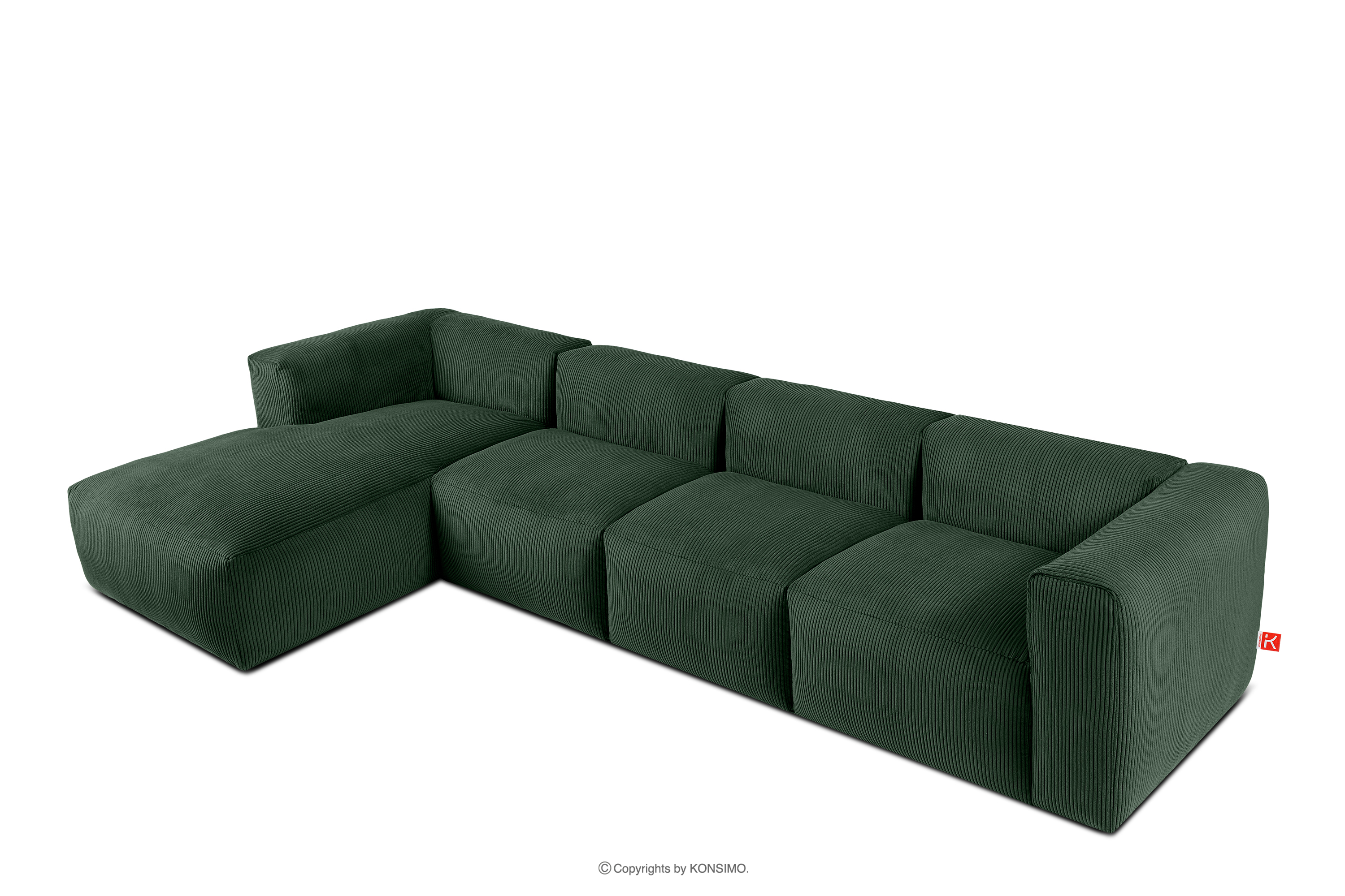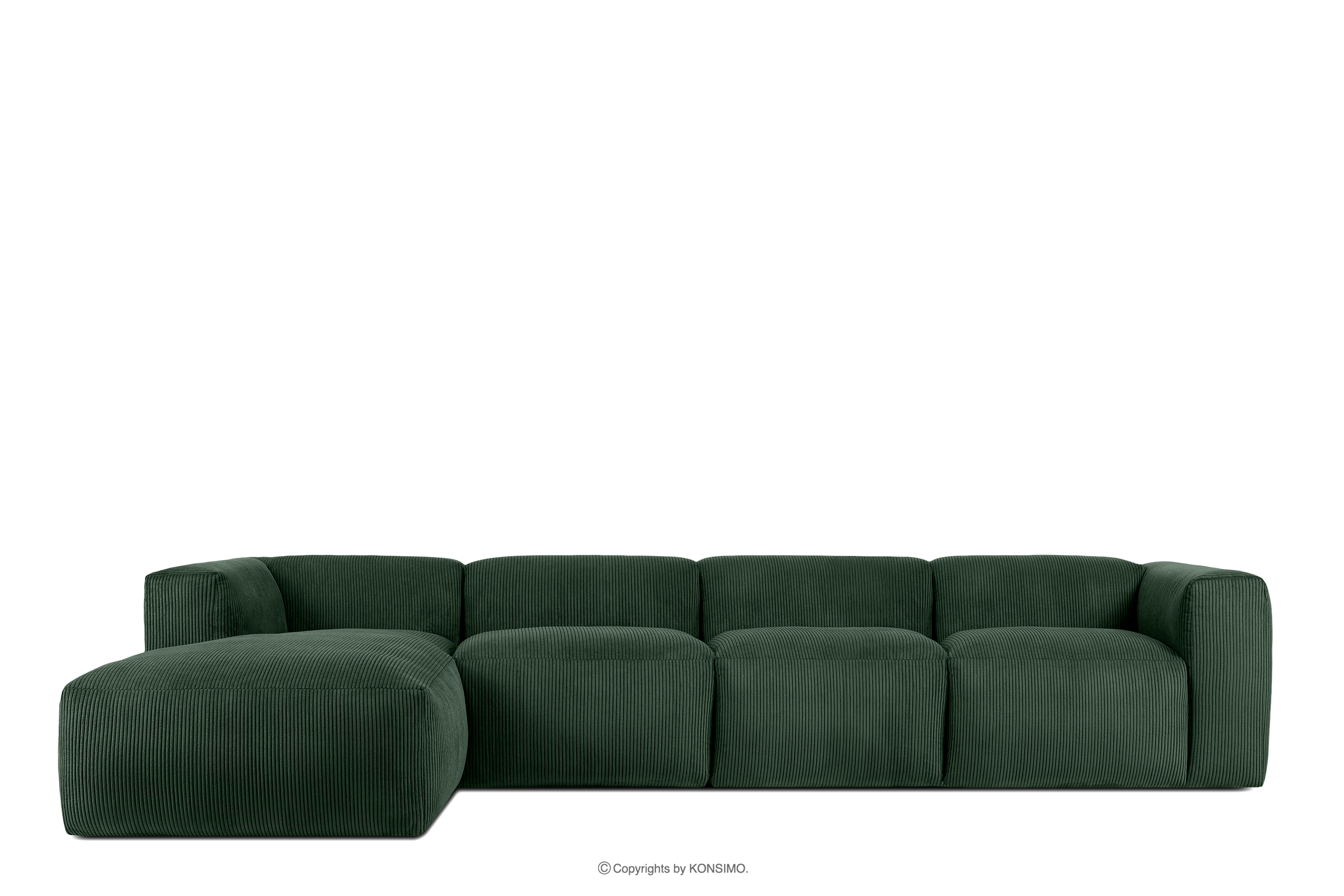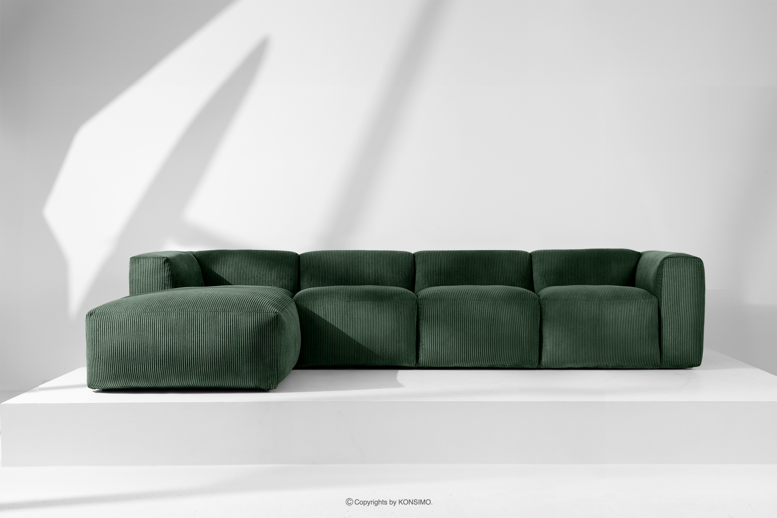 BUFFO Veľká modulárna rohová pohovka do obývačky z manšestrovej tkaniny tmavozelenej farby vľavo