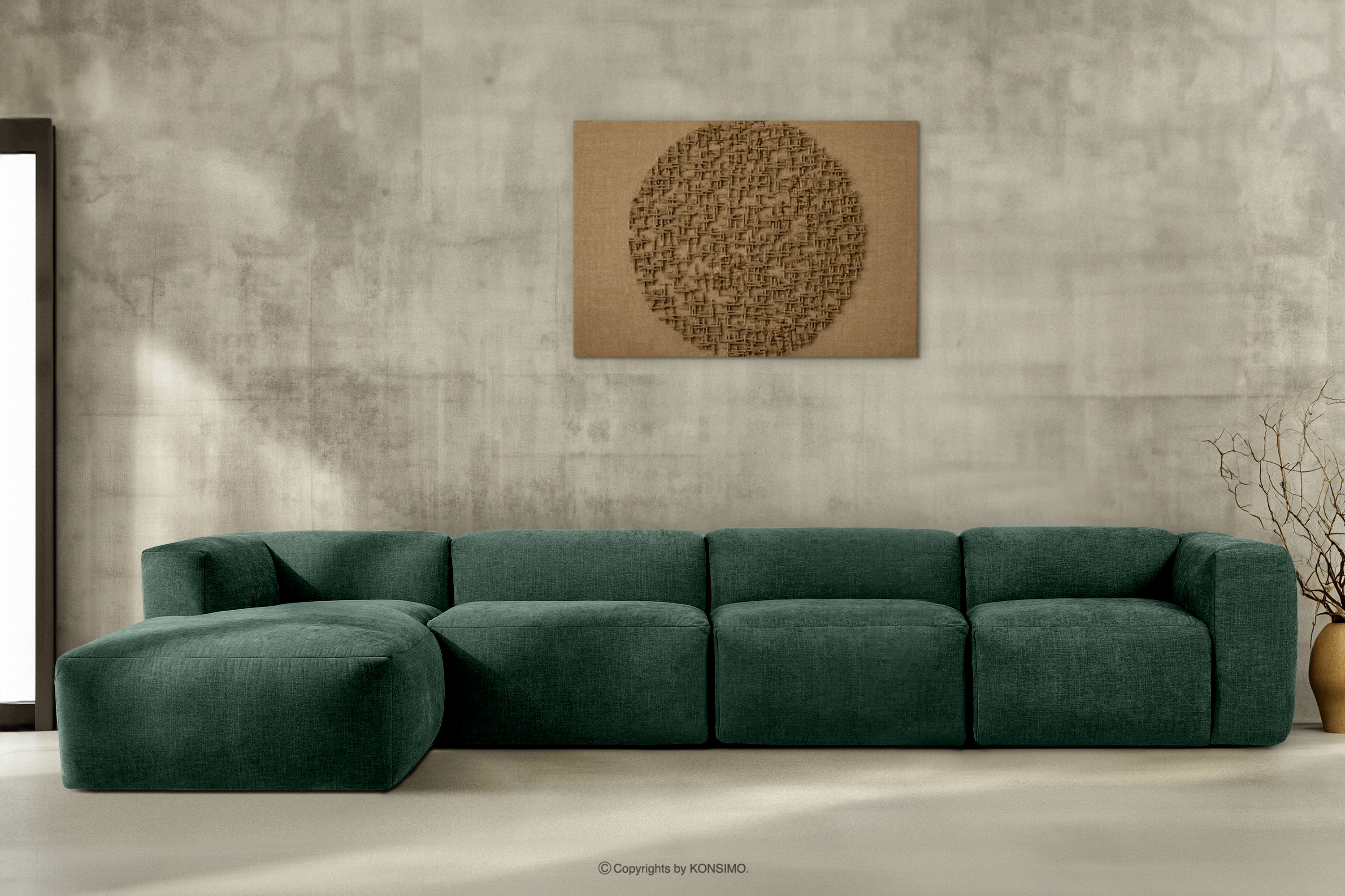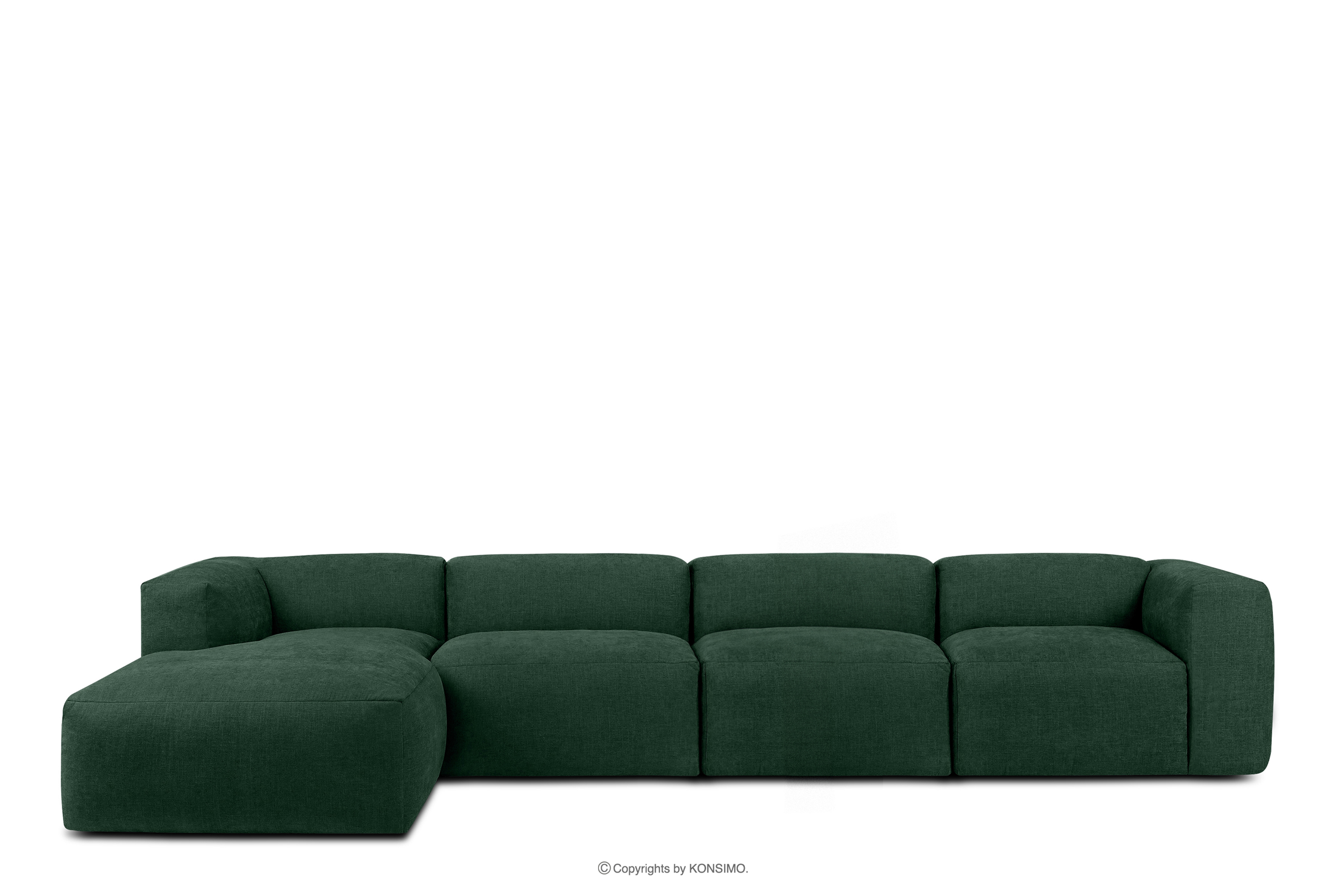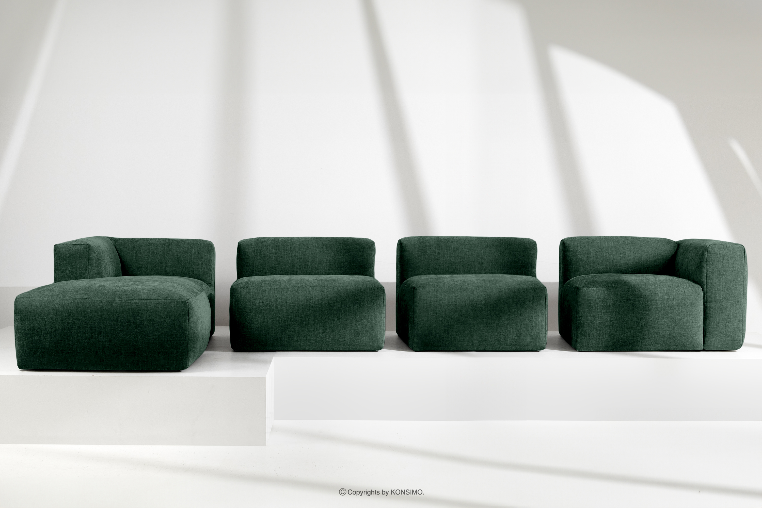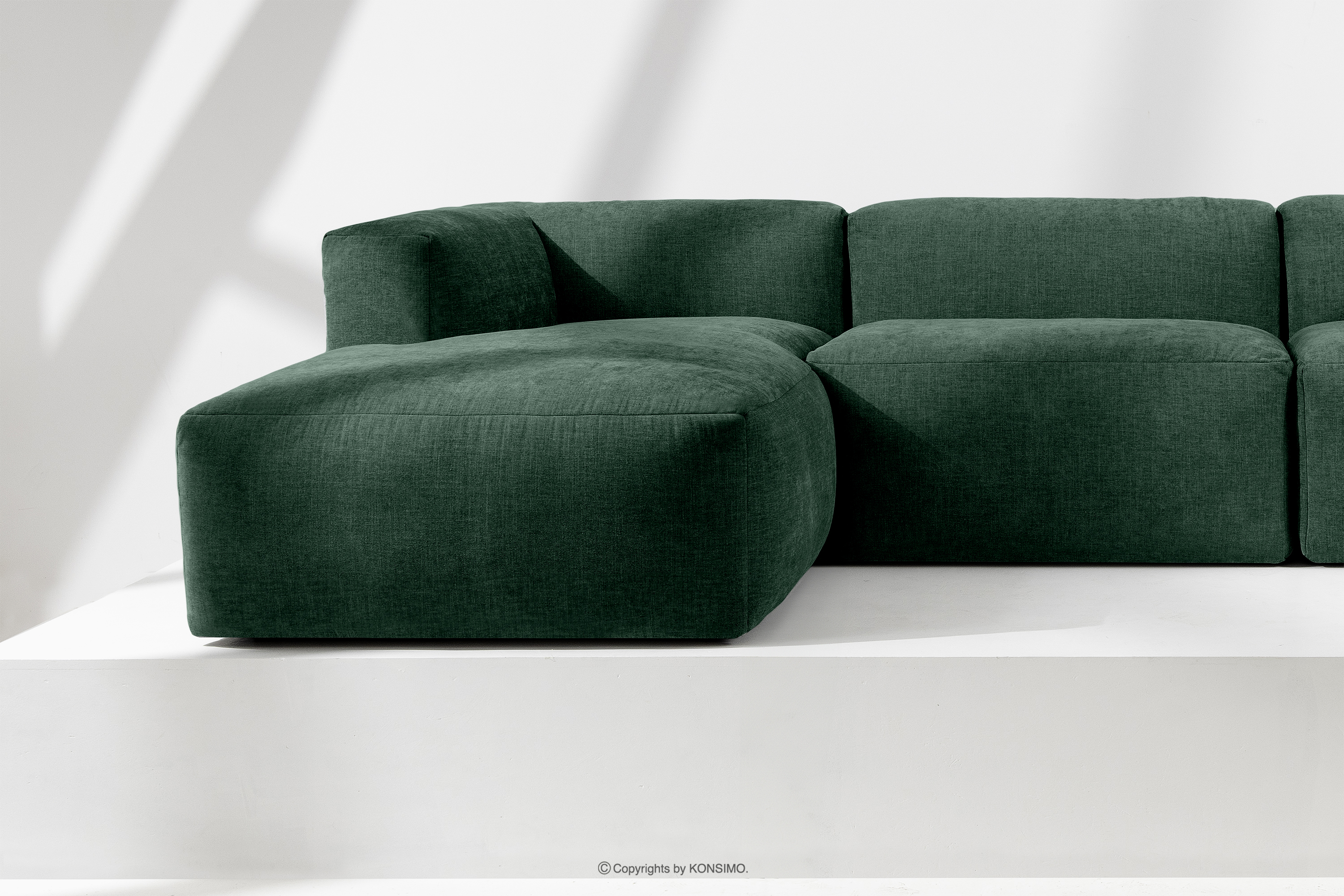 BUFFO Objav celú kolekciu Veľká modulová rohová pohovka do obývacej izby z tkanej látky námorníckej farby vľavo- farba morský