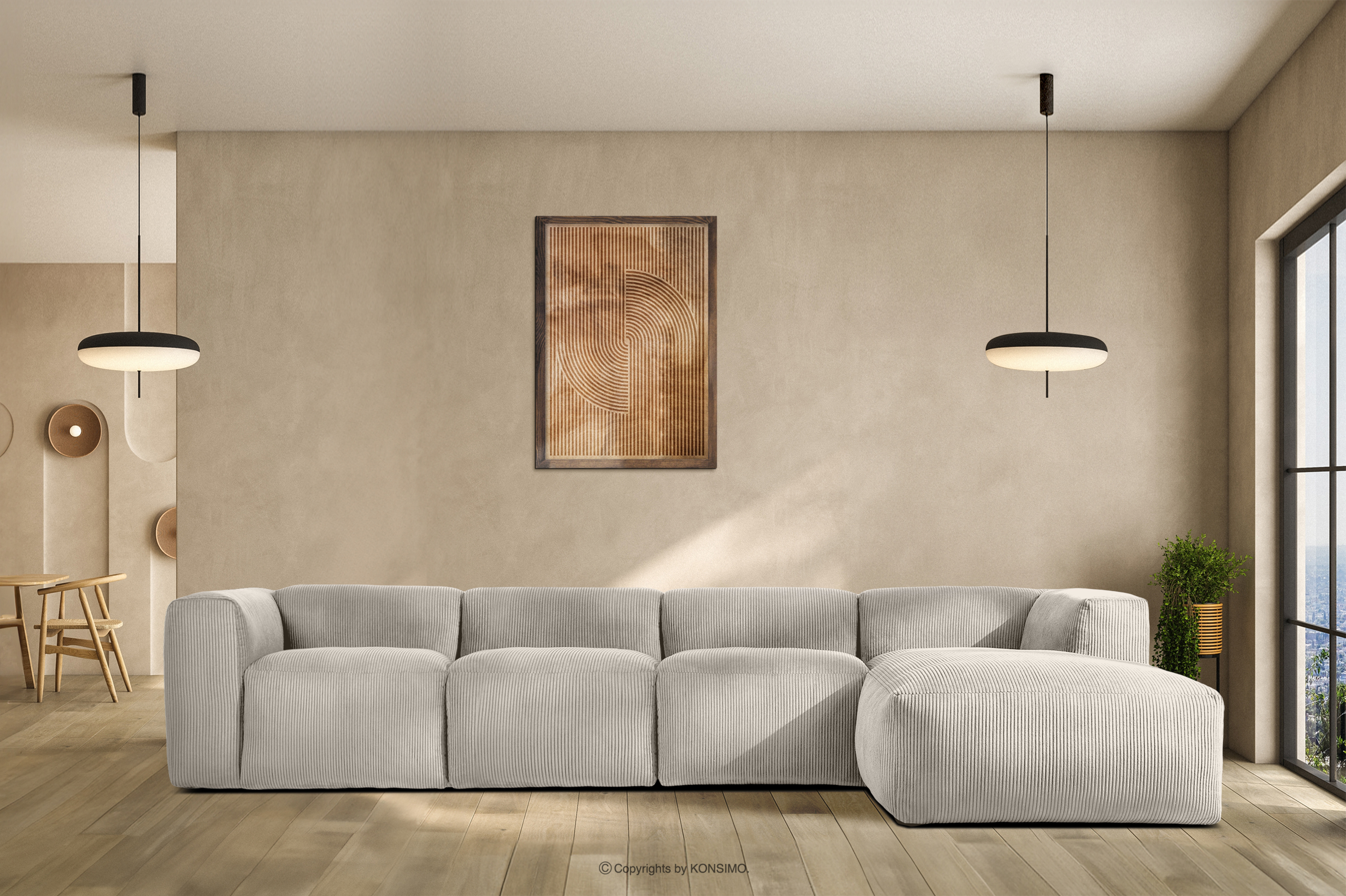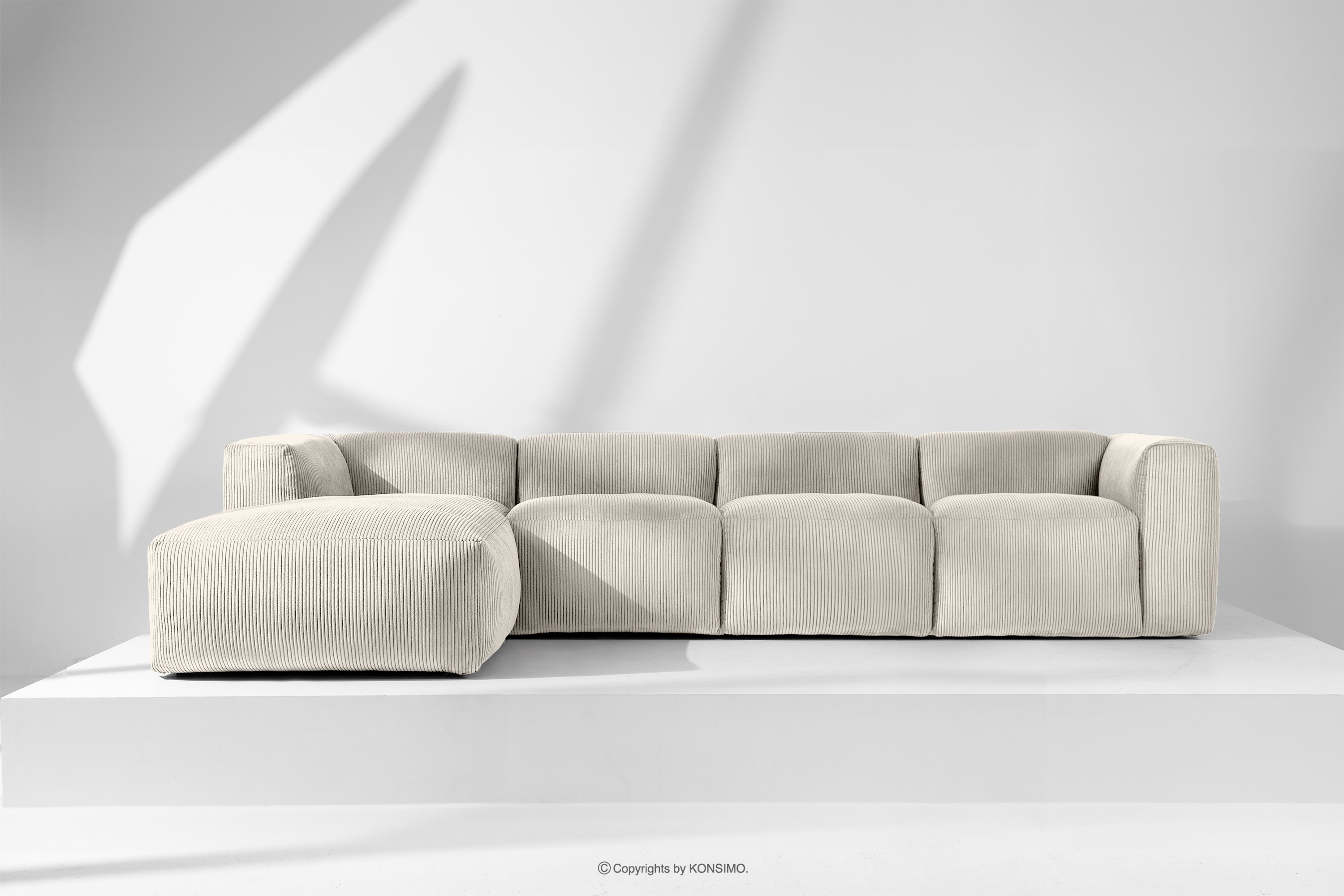 BUFFO Veľká modulárna rohová pohovka do obývačky z manšestrovej tkaniny krémovej farby vľavo