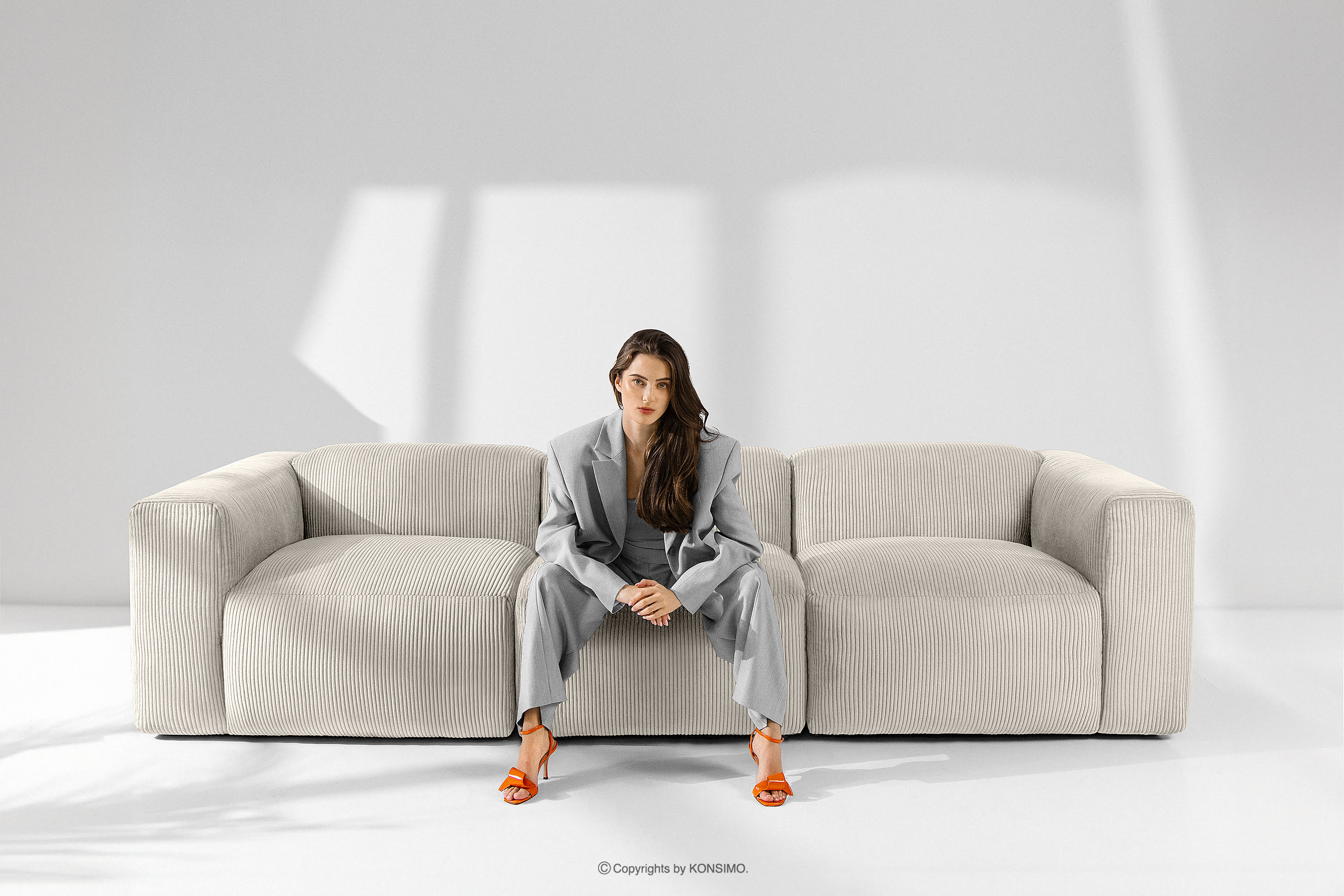 BUFFO Objav celú kolekciu Veľká modulárna rohová pohovka do obývačky z manšestrovej tkaniny krémovej farby vľavo- farba krémová