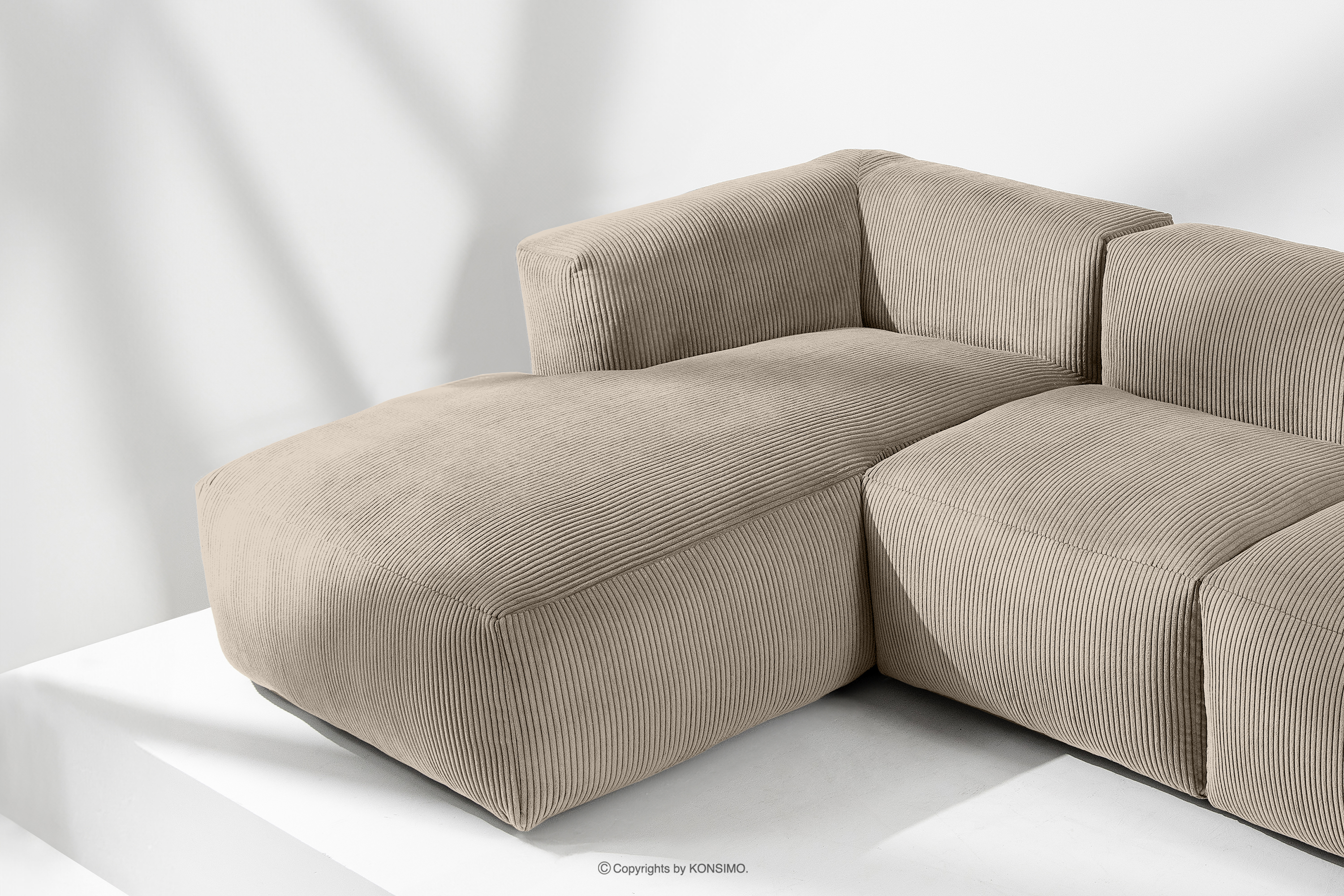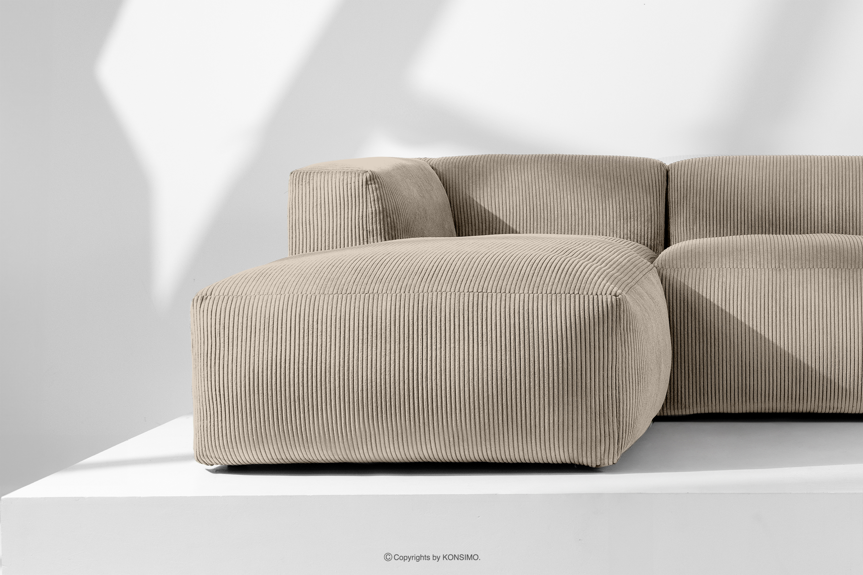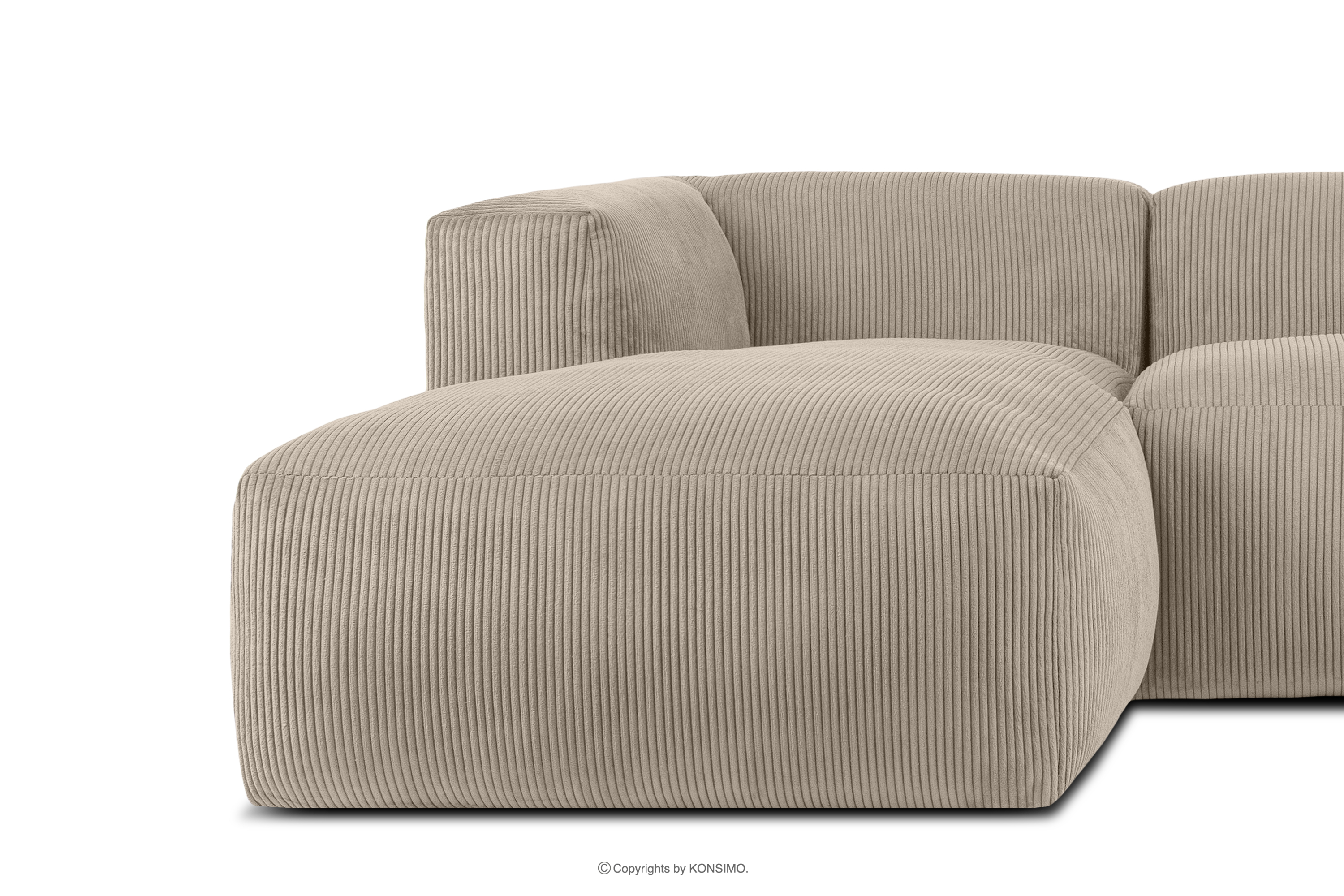 BUFFO Objav celú kolekciu Veľká modulárna rohová pohovka do obývačky z manšestrovej tkaniny béžovej farby vľavo- farba béžová
