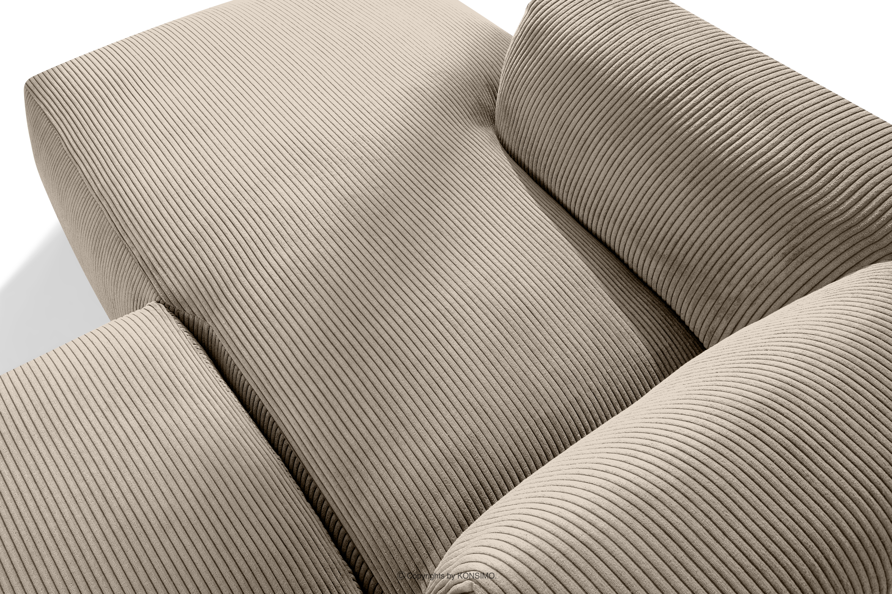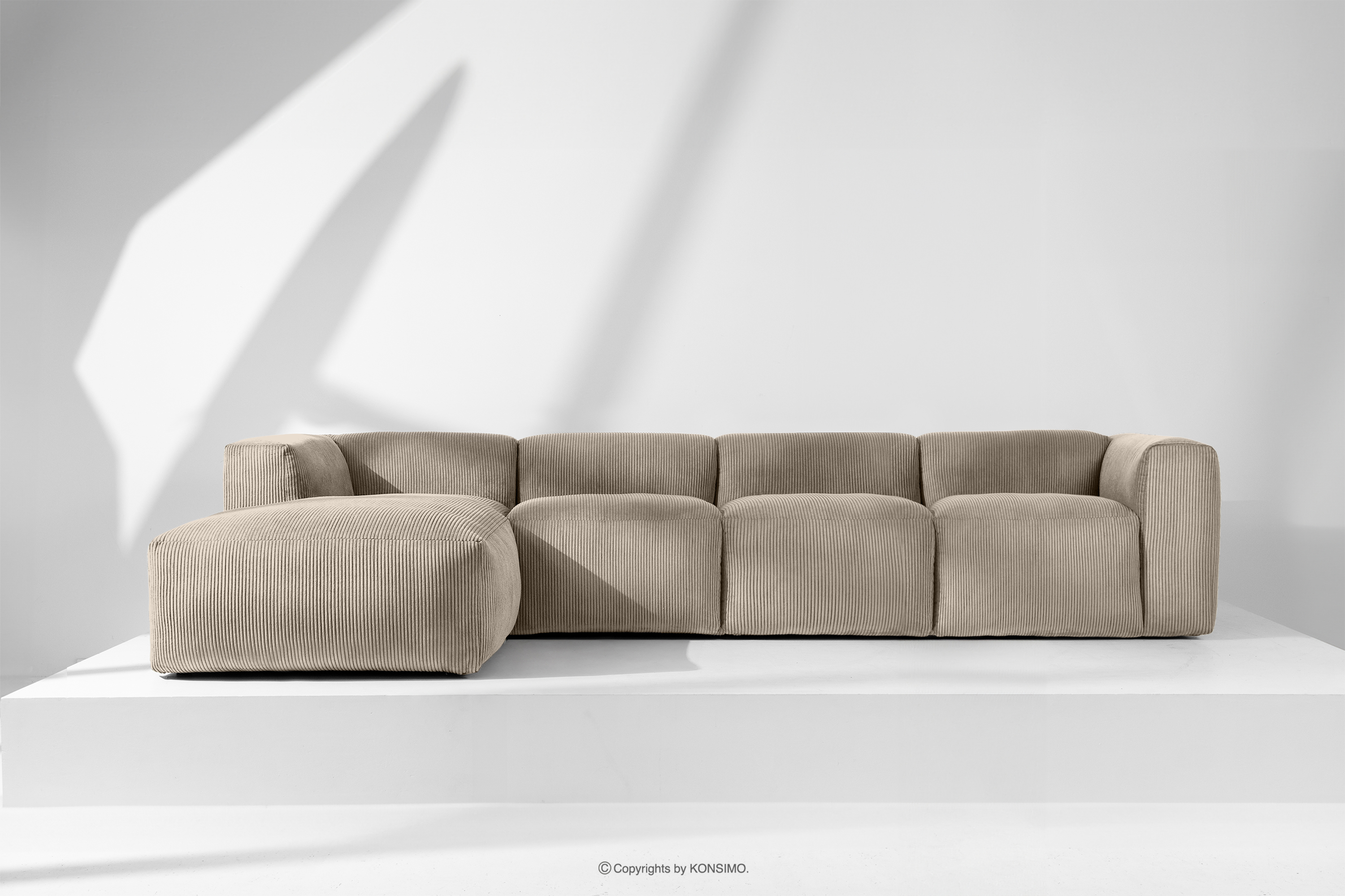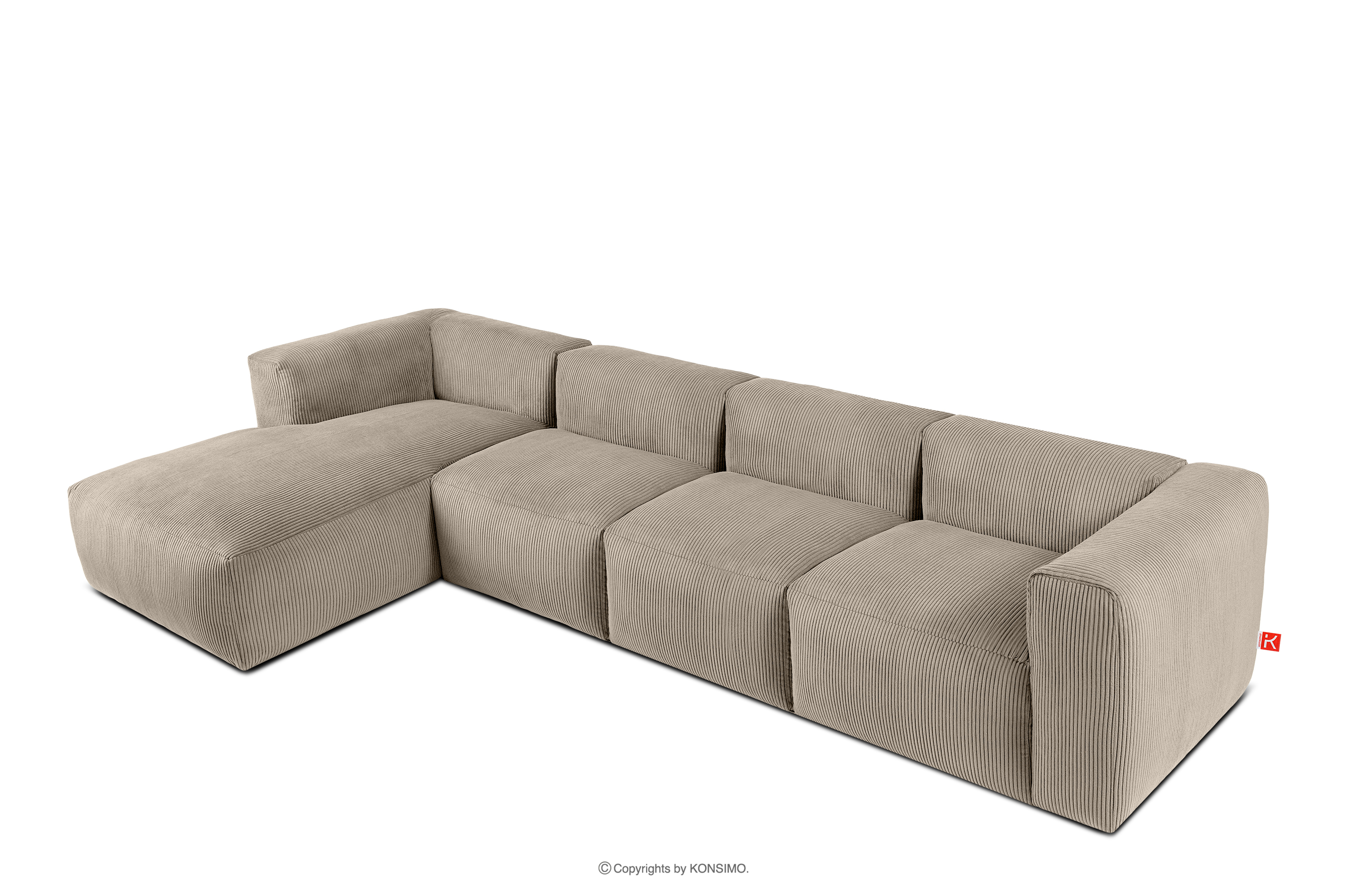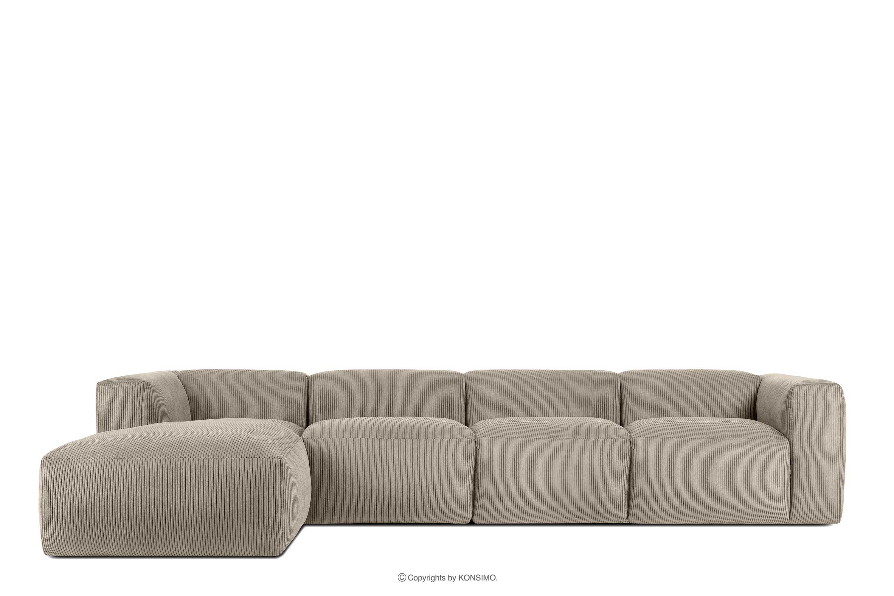 BUFFO Objav celú kolekciu Veľká modulárna rohová pohovka do obývačky z manšestrovej tkaniny béžovej farby vľavo- farba béžová
