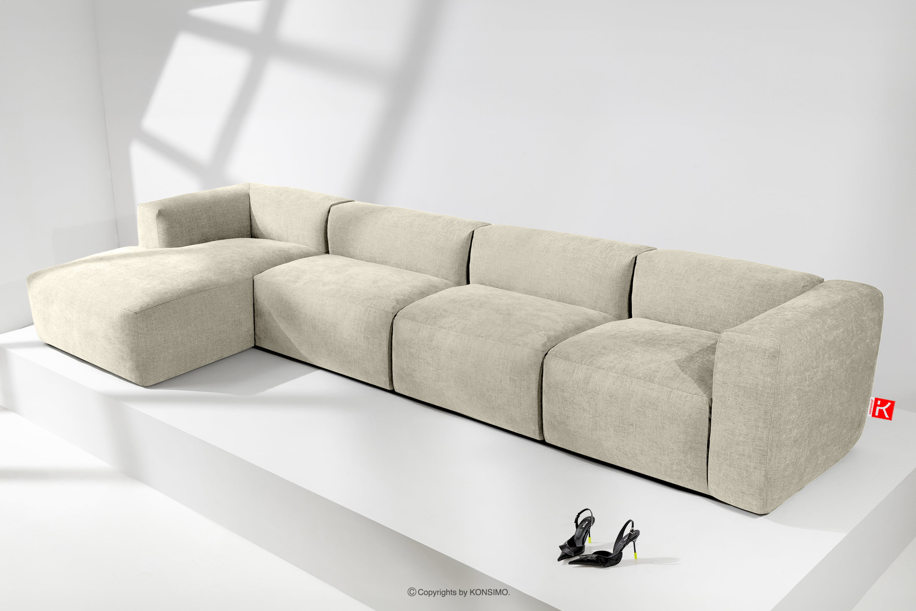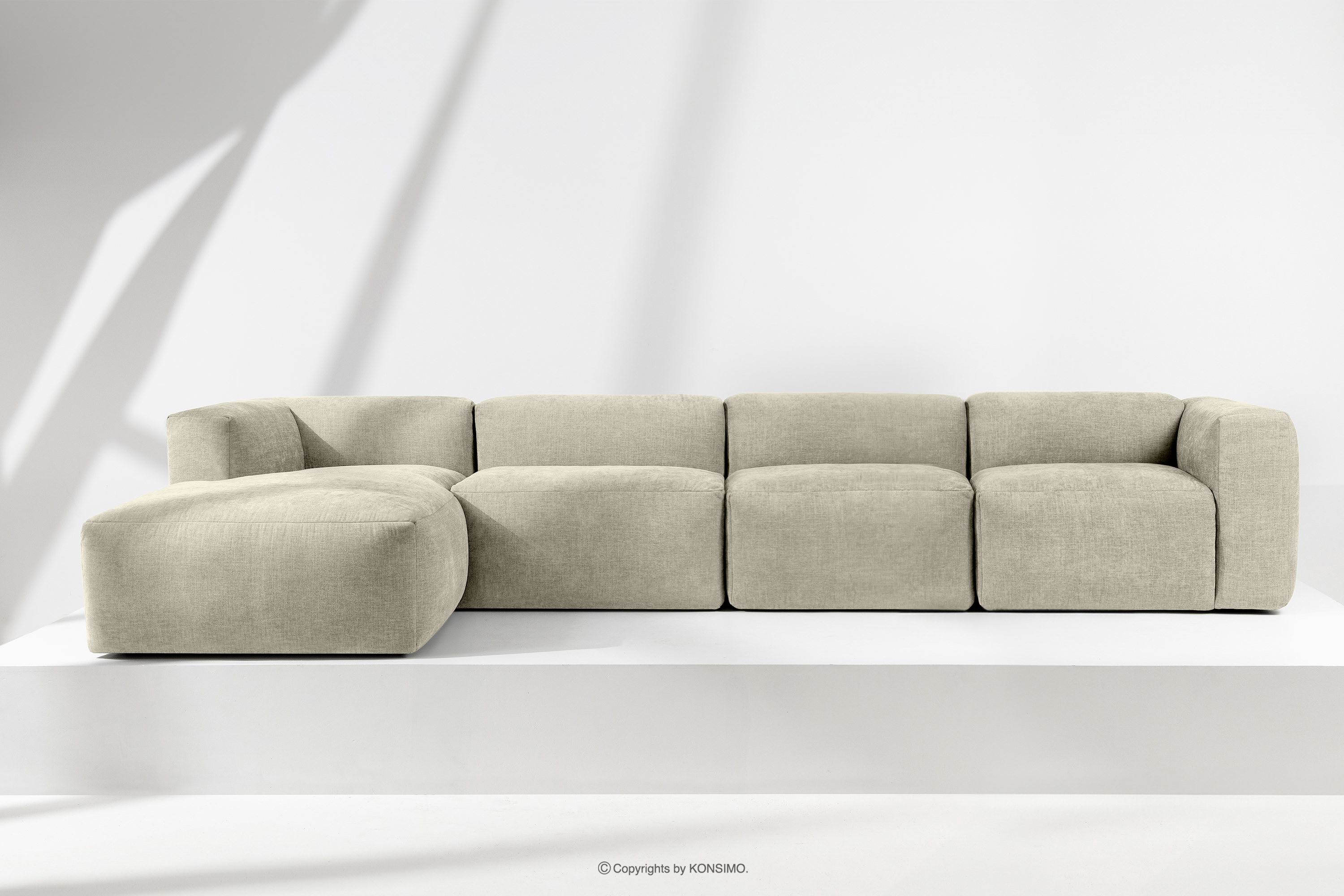 BUFFO Veľká modulová rohová pohovka do obývačky z manšestrovej tkaniny ecru vľavo