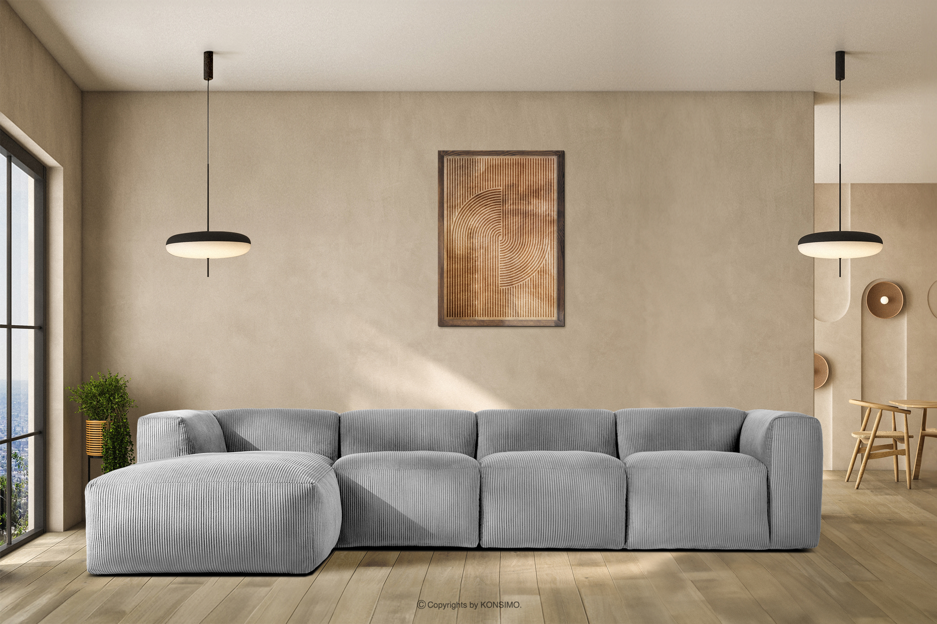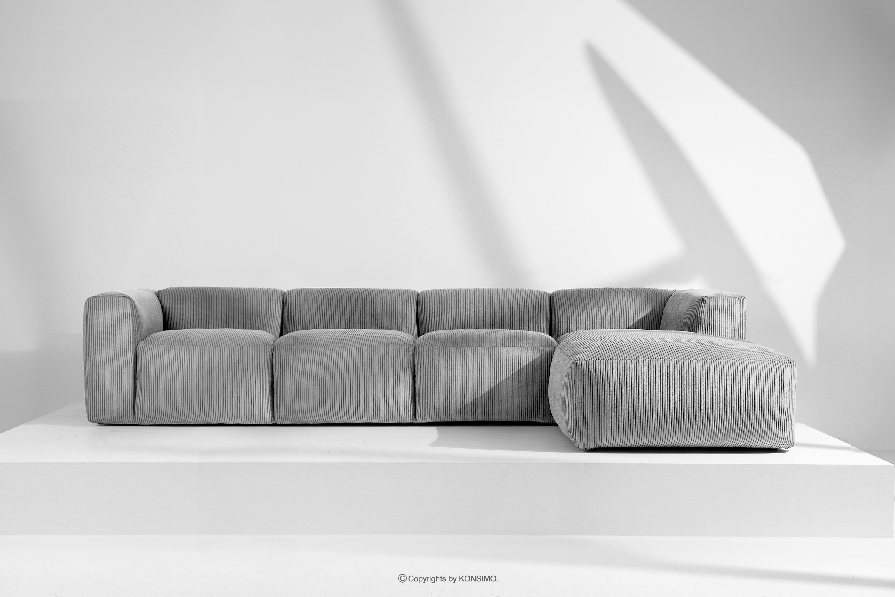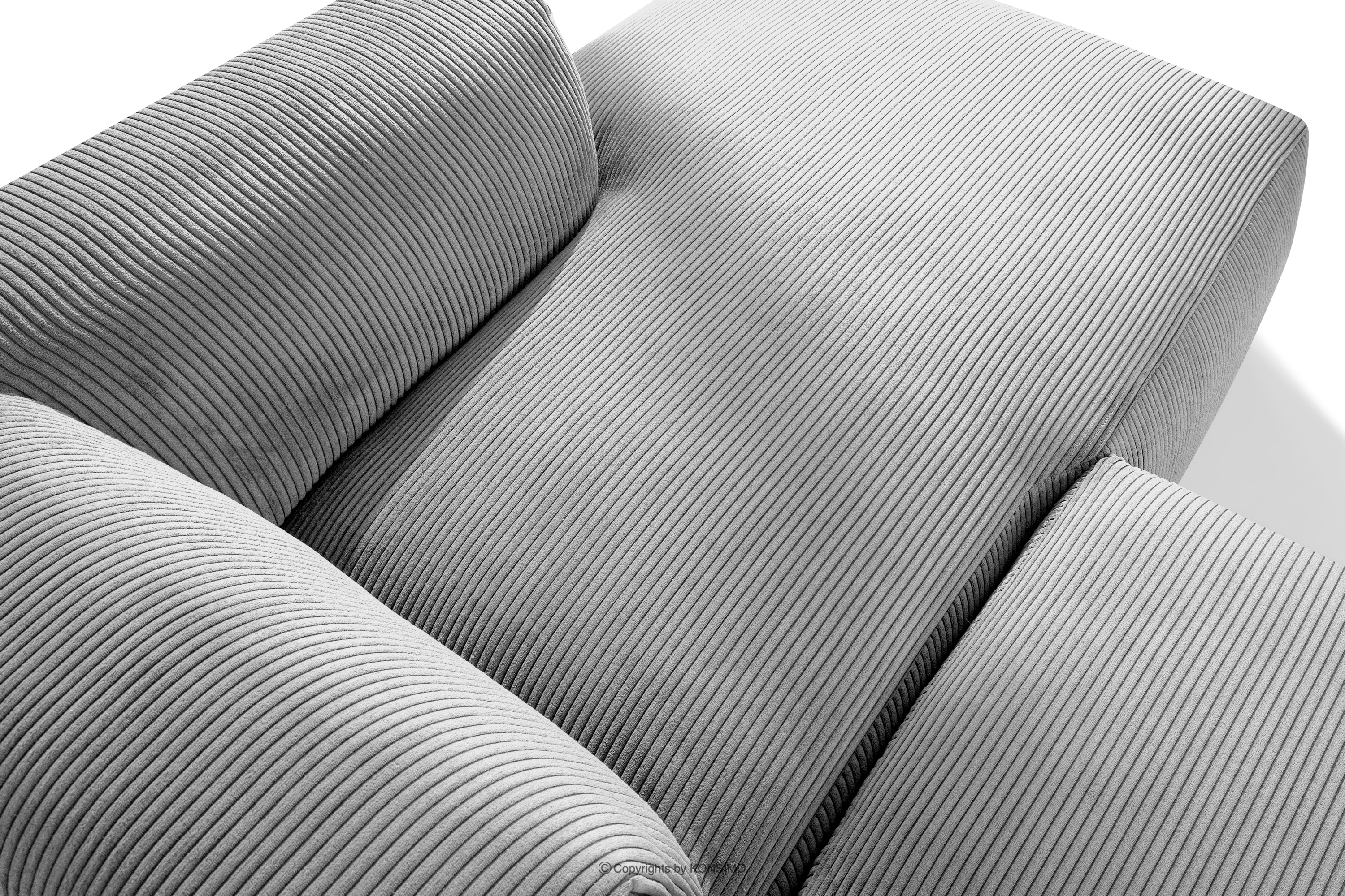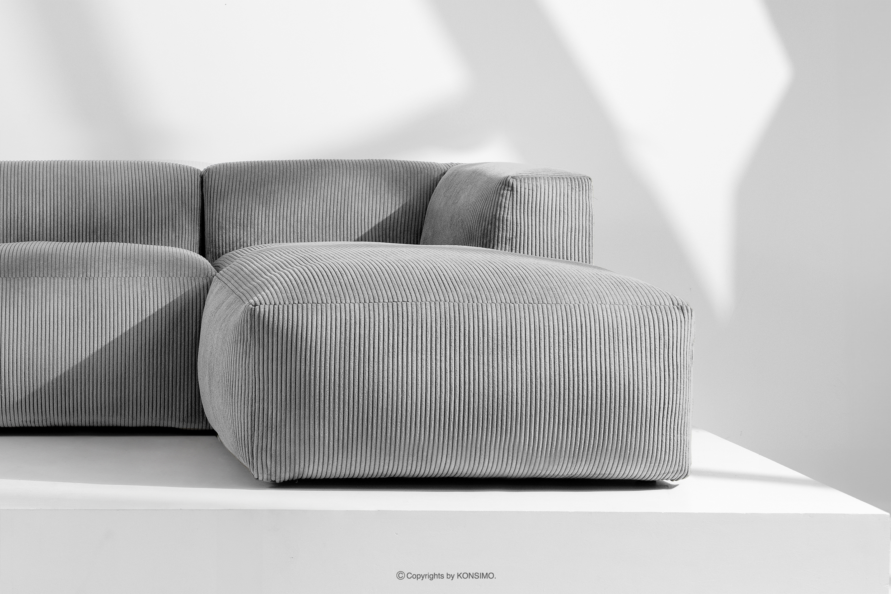 BUFFO Objav celú kolekciu Veľká modulová rohová pohovka do obývačky z manšestrovej látky svetlosivej vpravo- farba svetlosivá