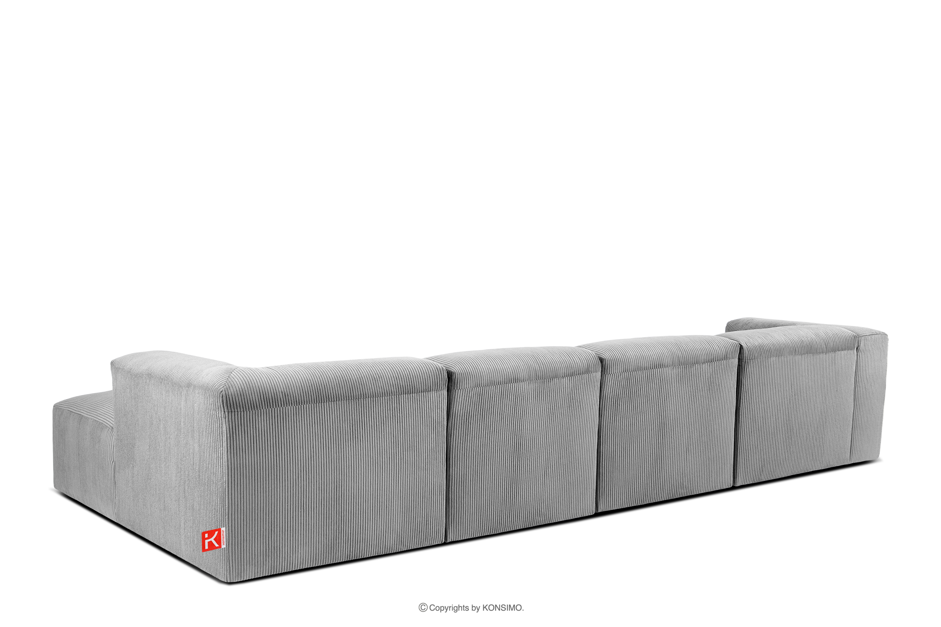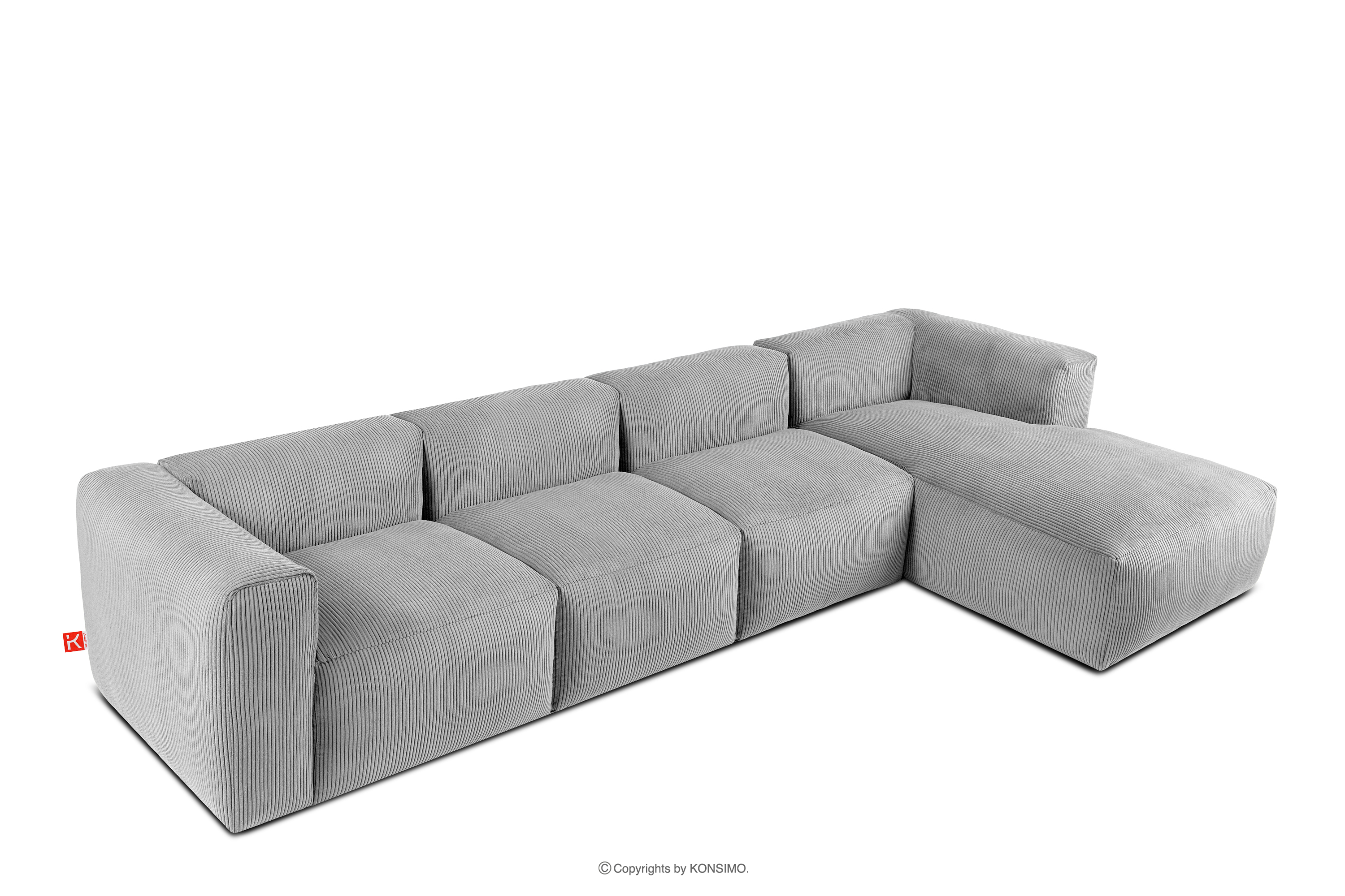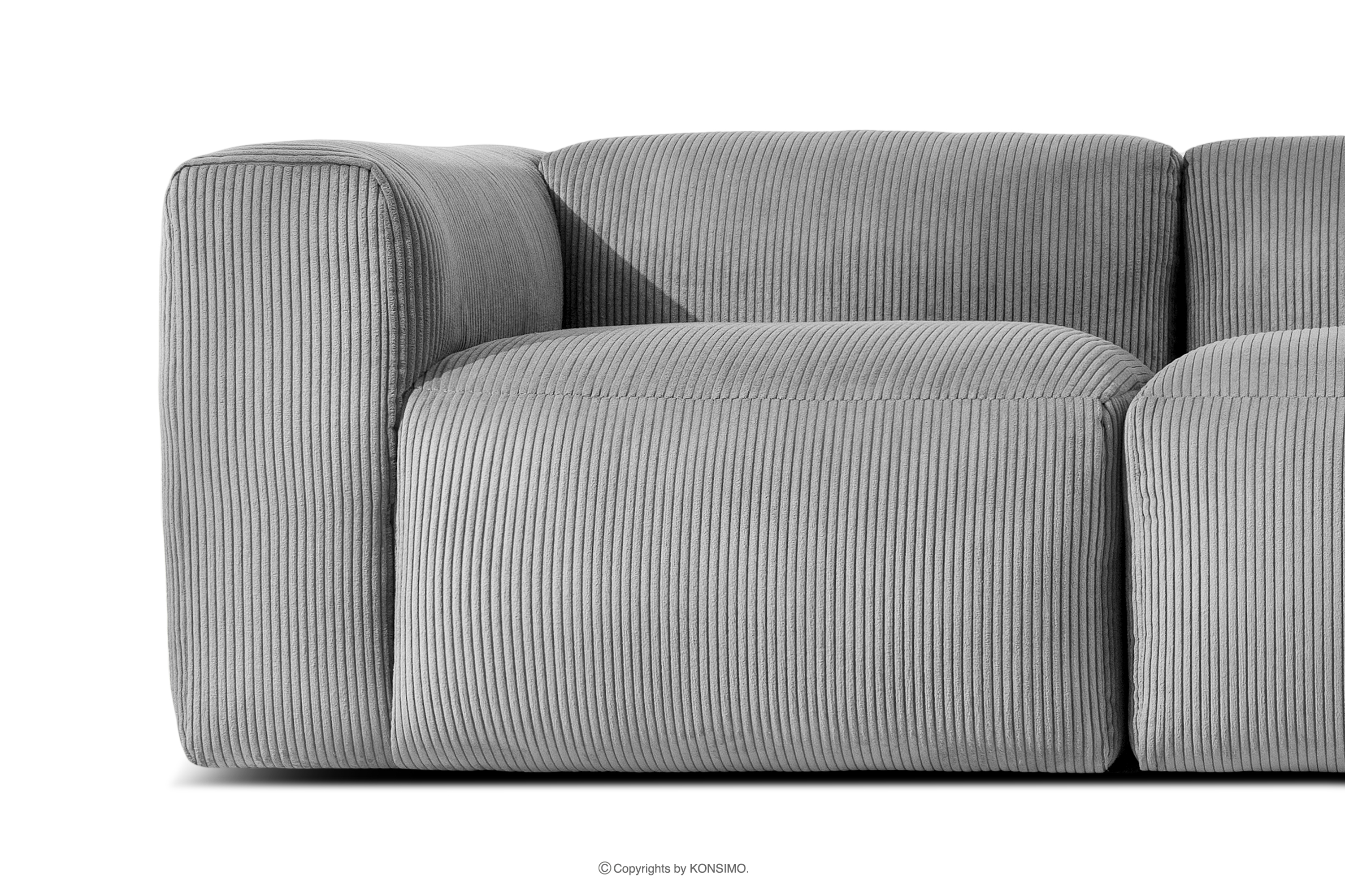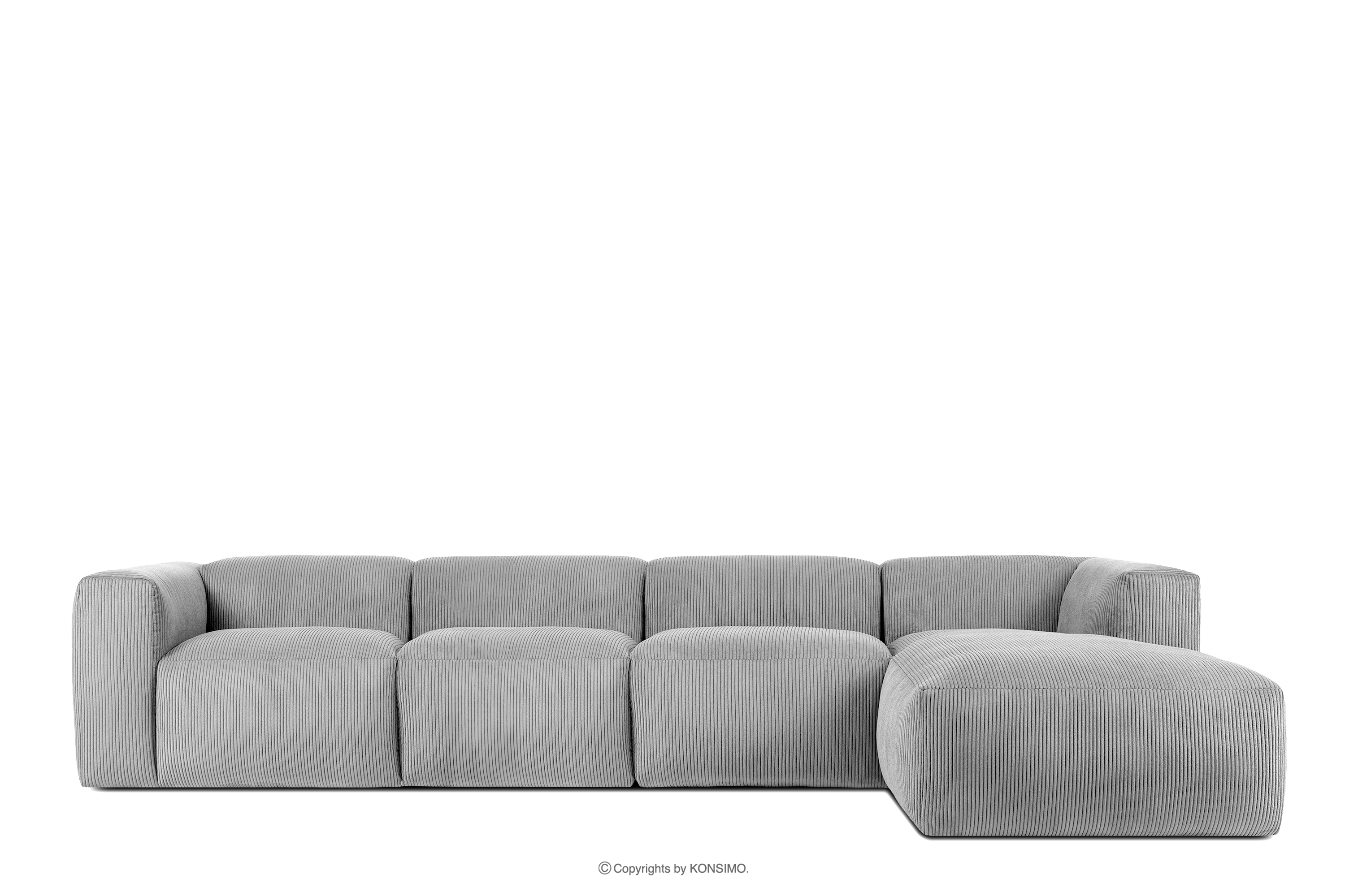 BUFFO Objav celú kolekciu Veľká modulová rohová pohovka do obývačky z manšestrovej látky svetlosivej vpravo- farba svetlosivá