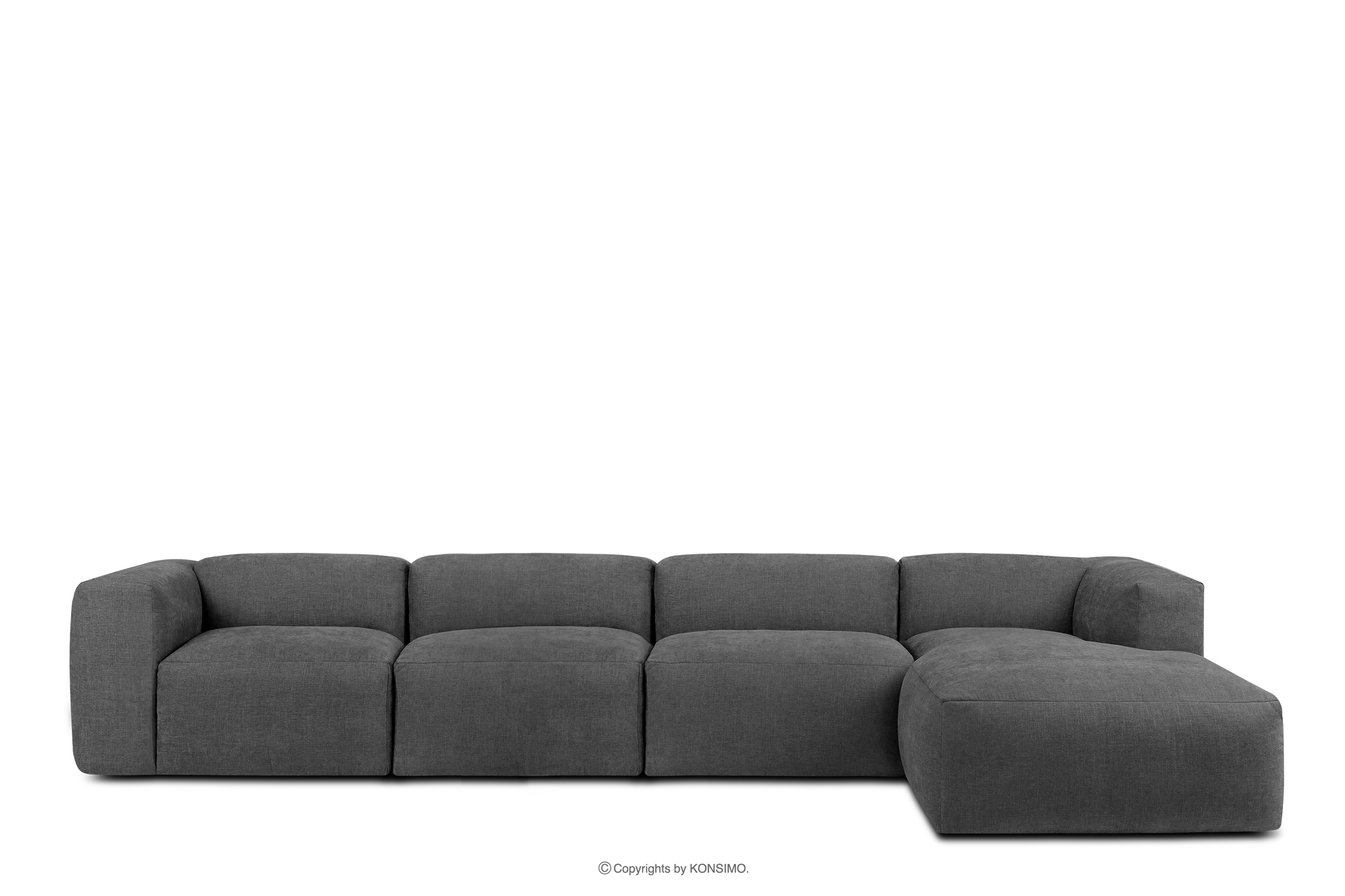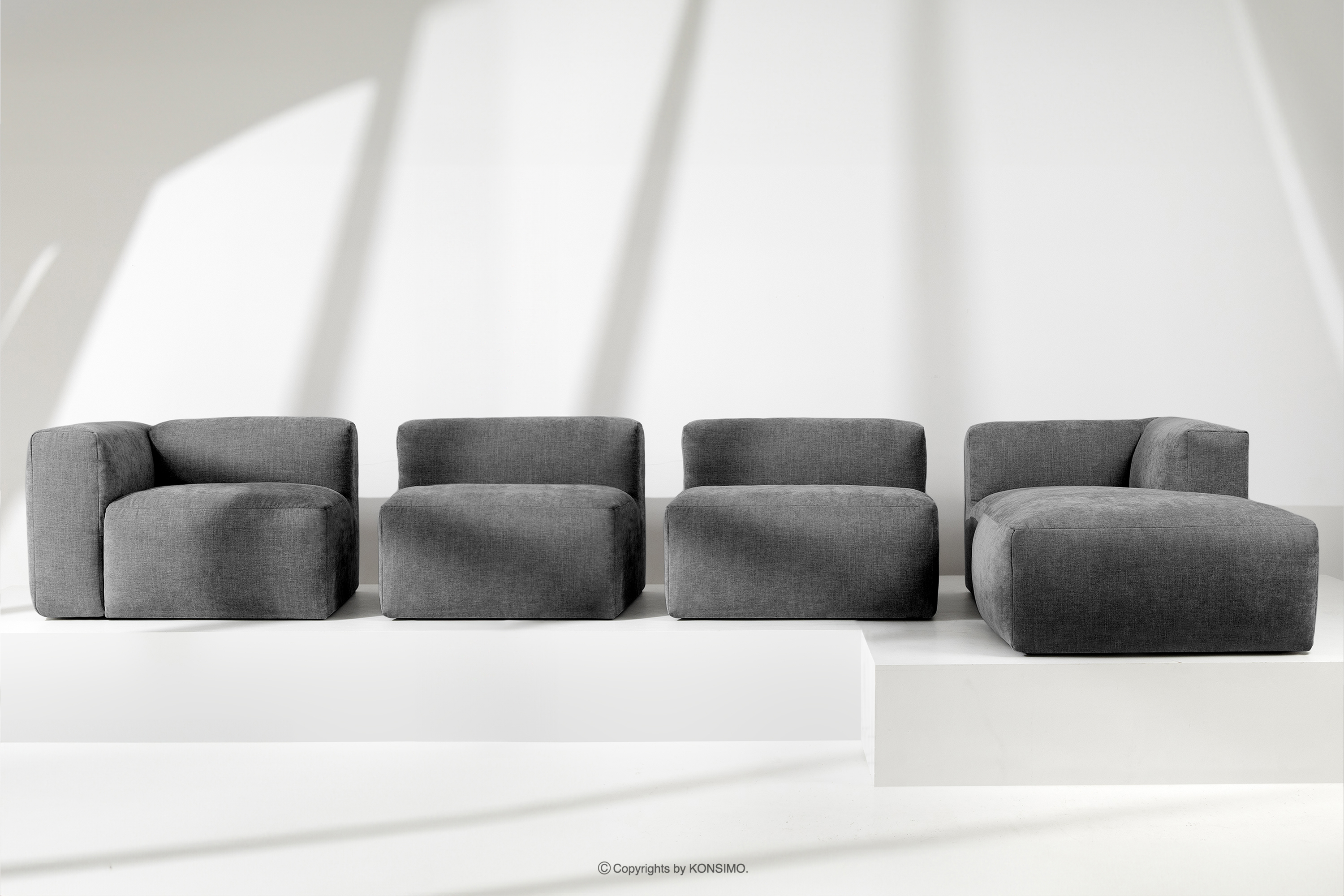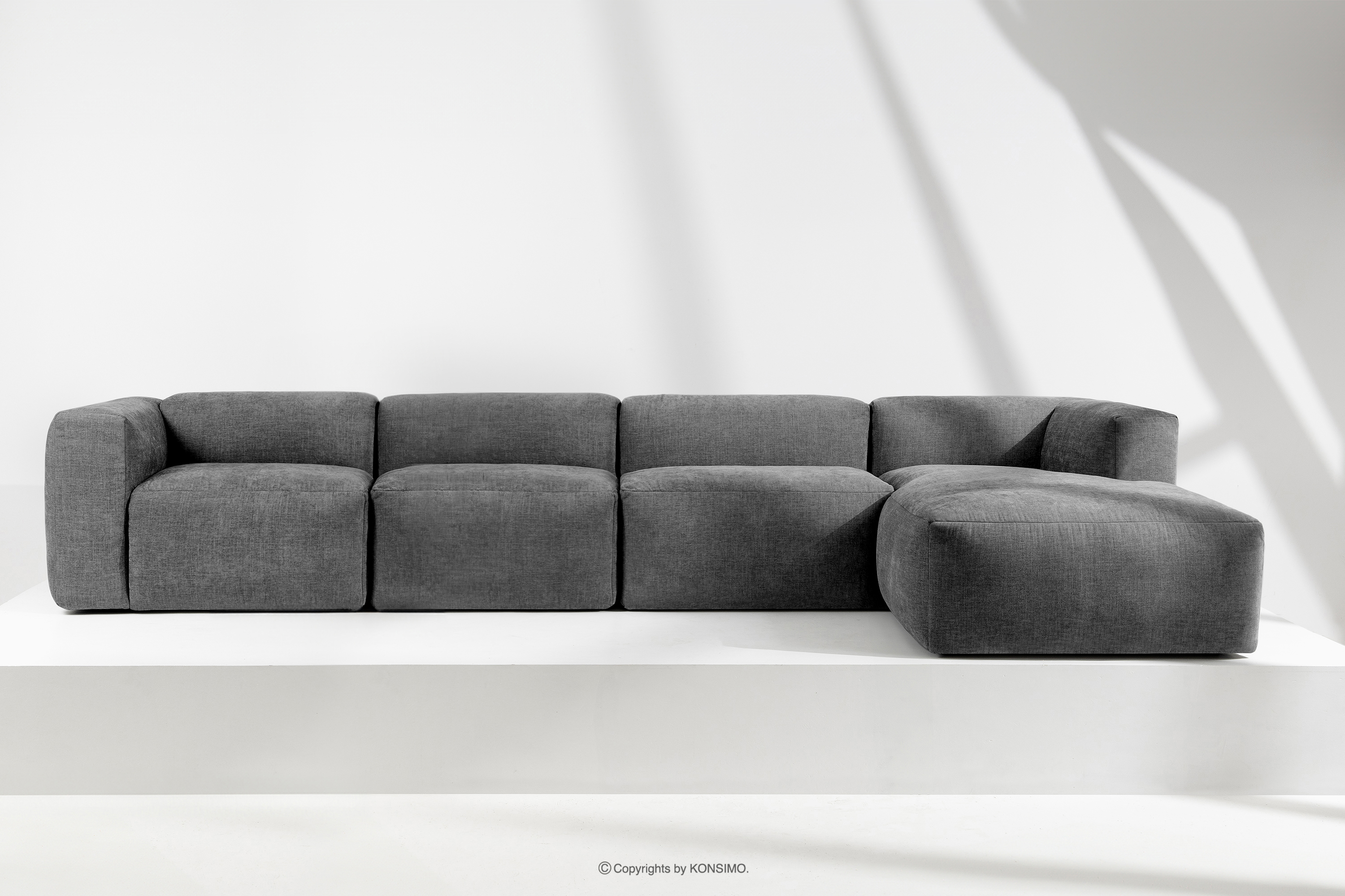 BUFFO Objav celú kolekciu Veľká modulová rohová pohovka do obývačky z tkanej látky popolavo sivá vpravo- farba popolavá
