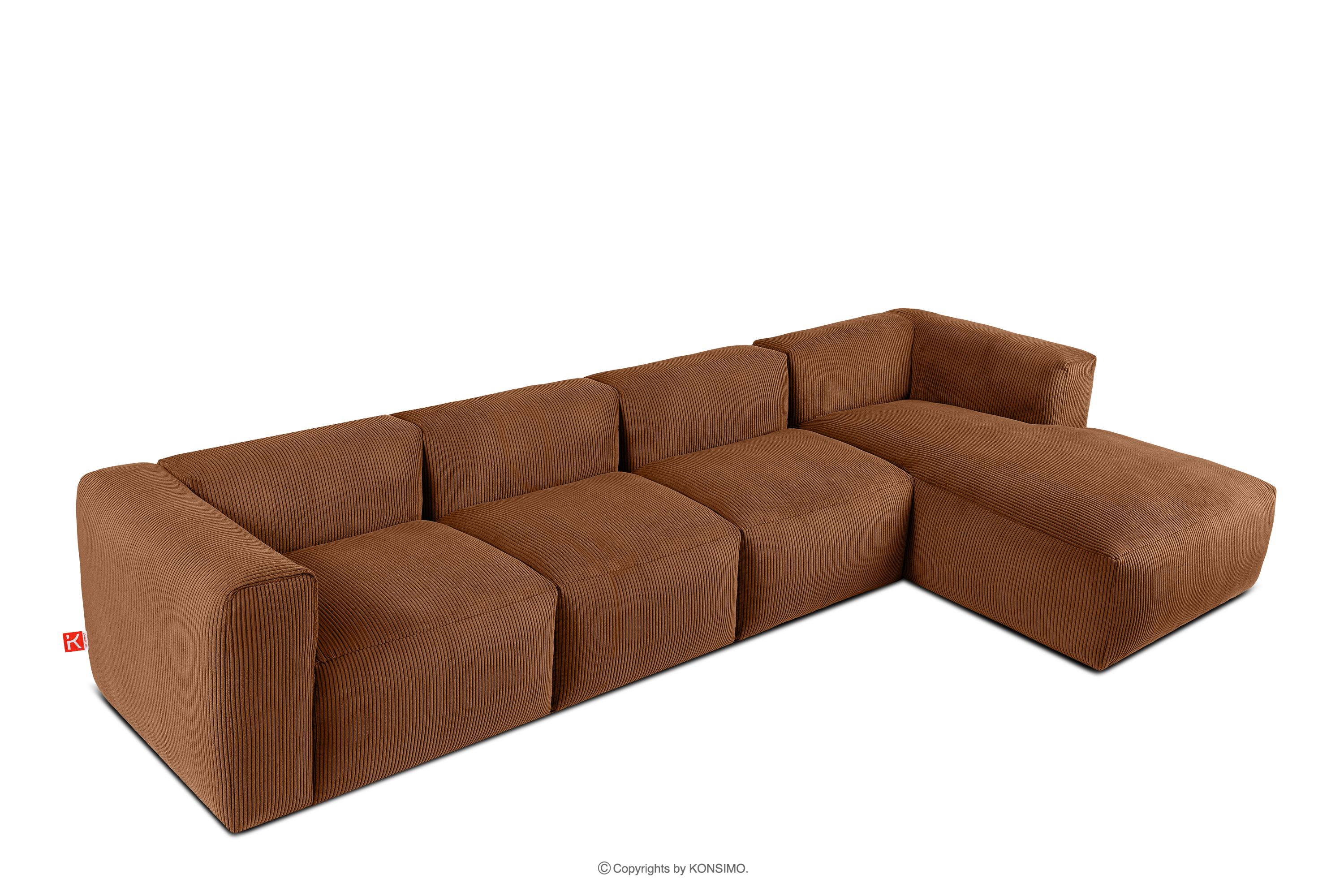 produktu Veľká modulová rohová pohovka do obývačky z manšestrovej látky červenej farby vpravo
