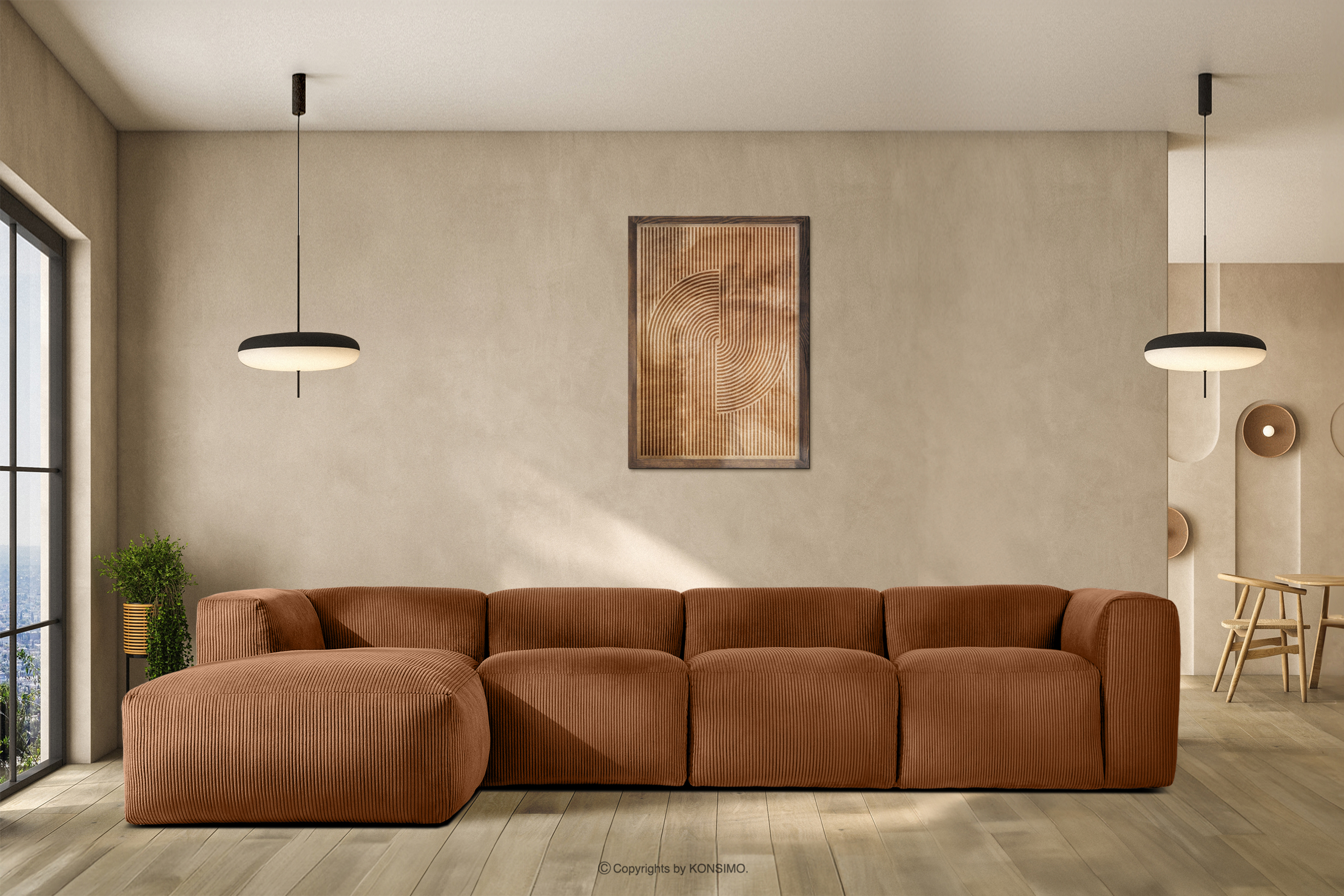 BUFFO Veľká modulová rohová pohovka do obývačky z manšestrovej látky červenej farby vpravo