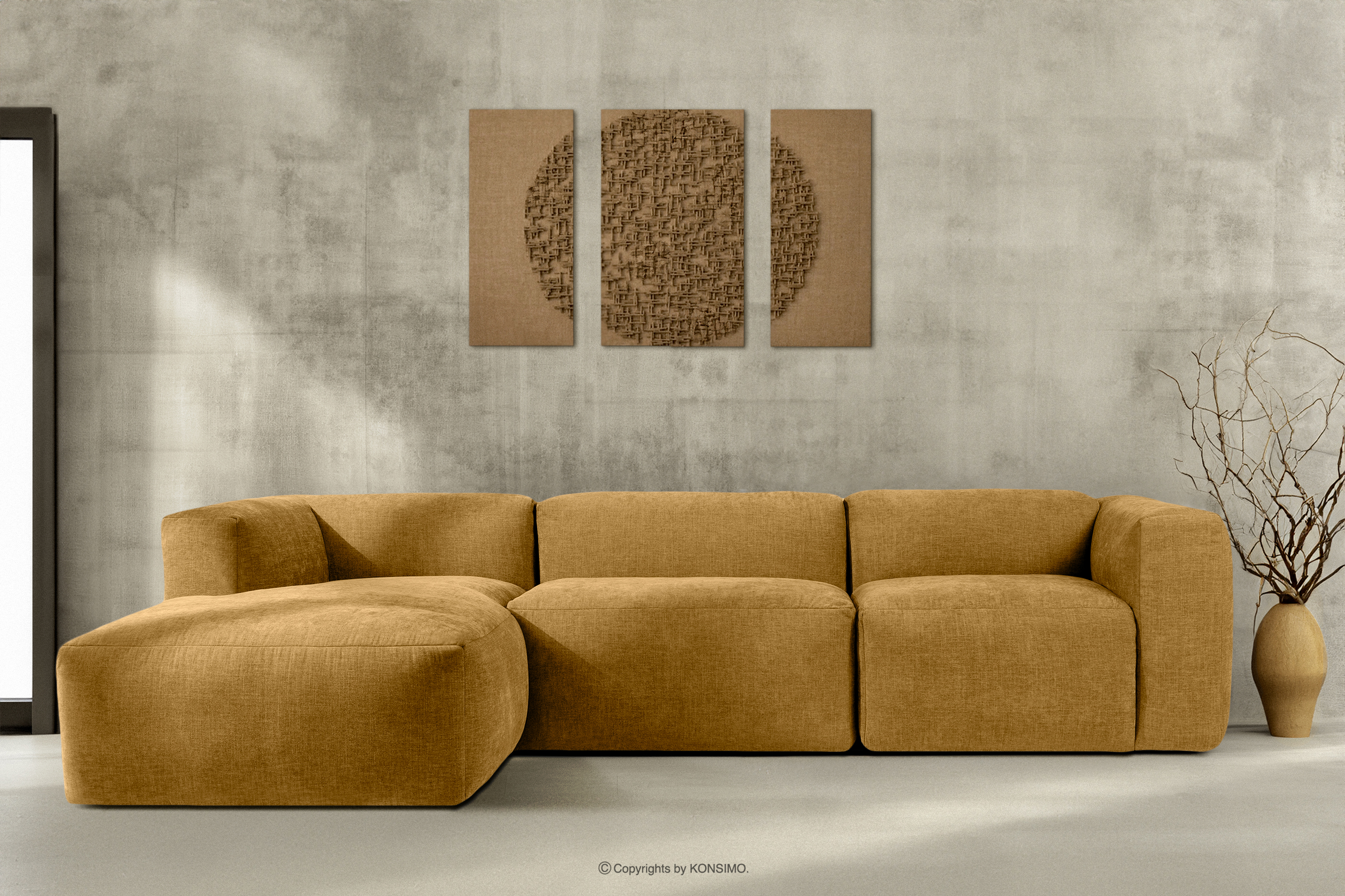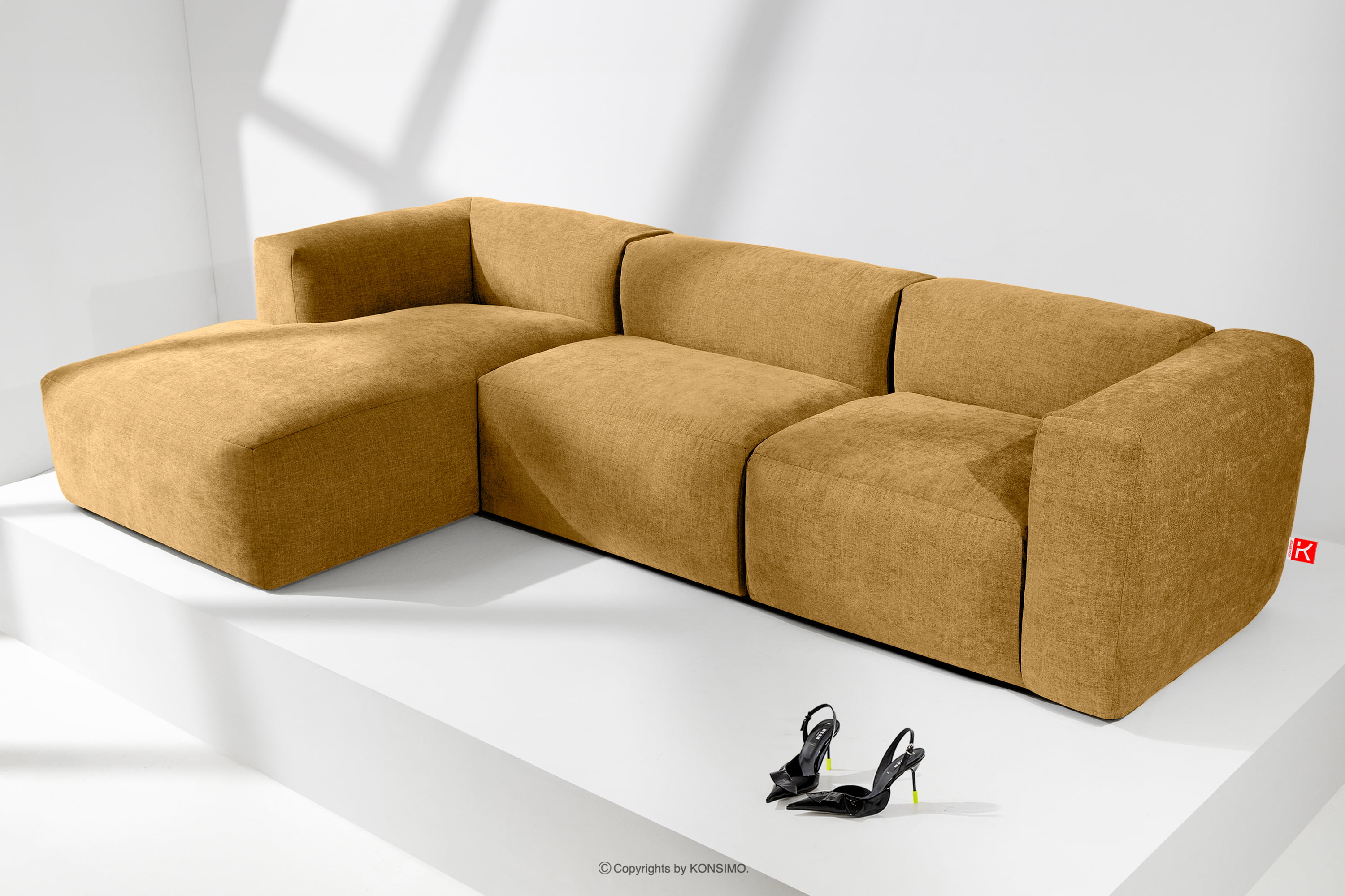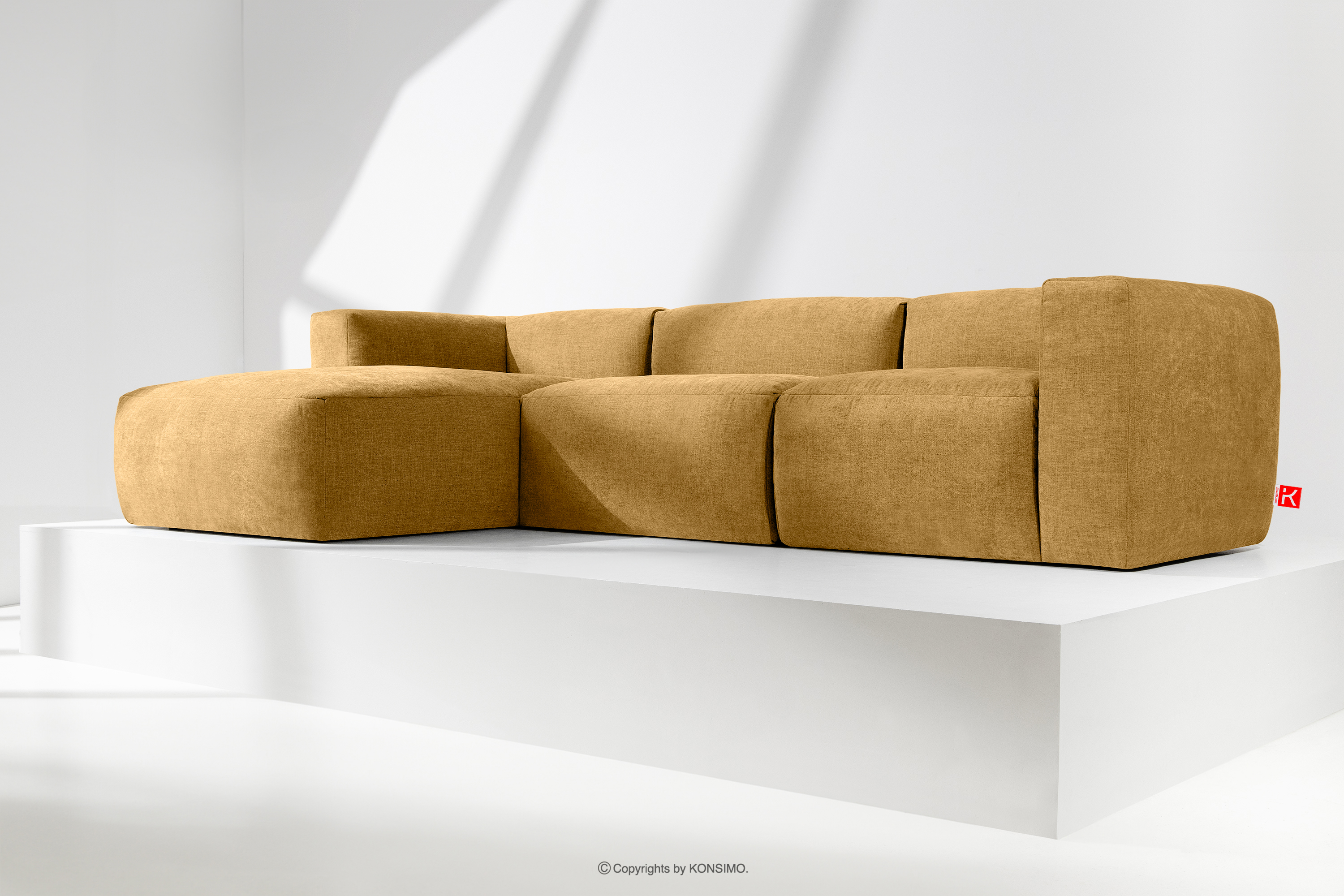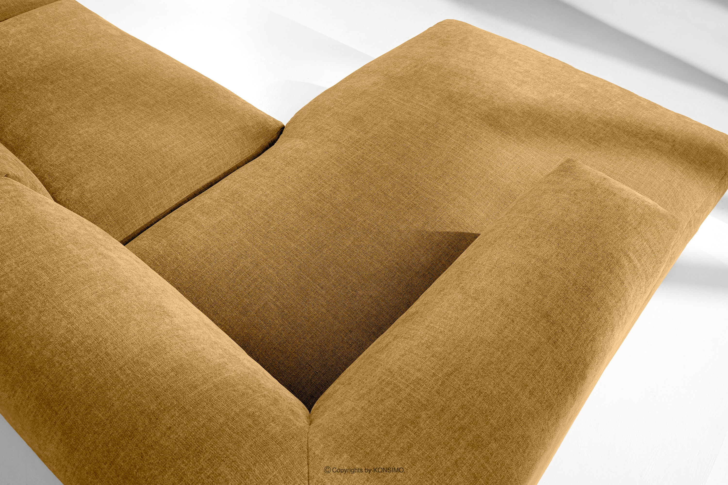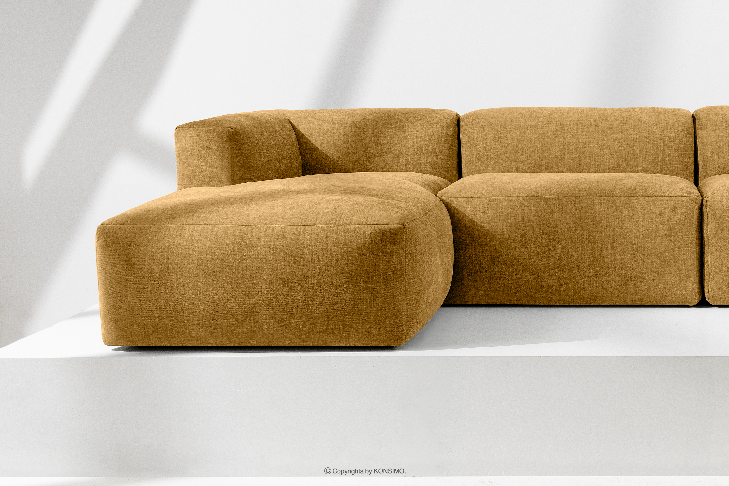 BUFFO Objav celú kolekciu Modulárna rohová pohovka, tkaná v tkanej látke medová vľavo- farba medová