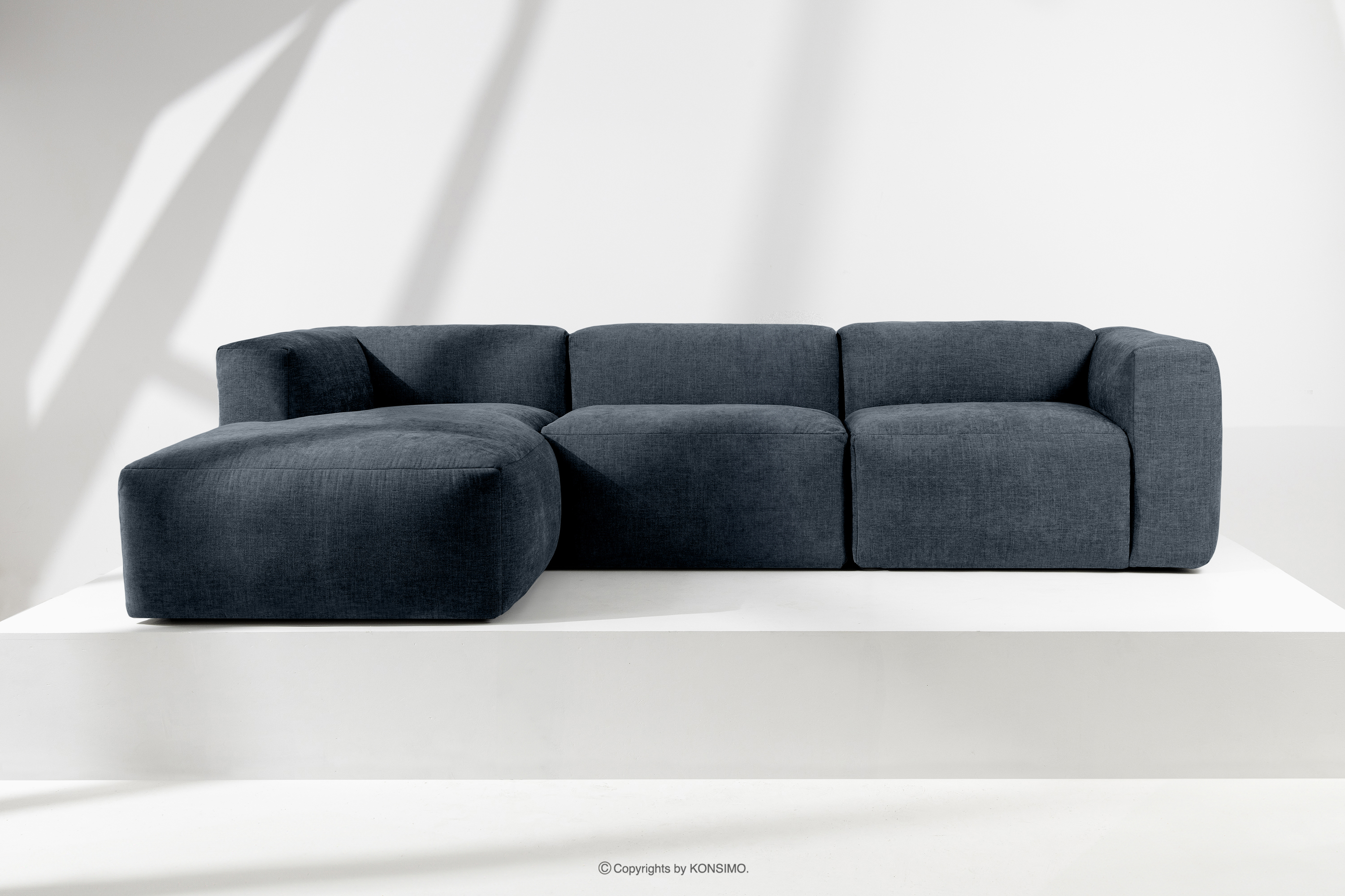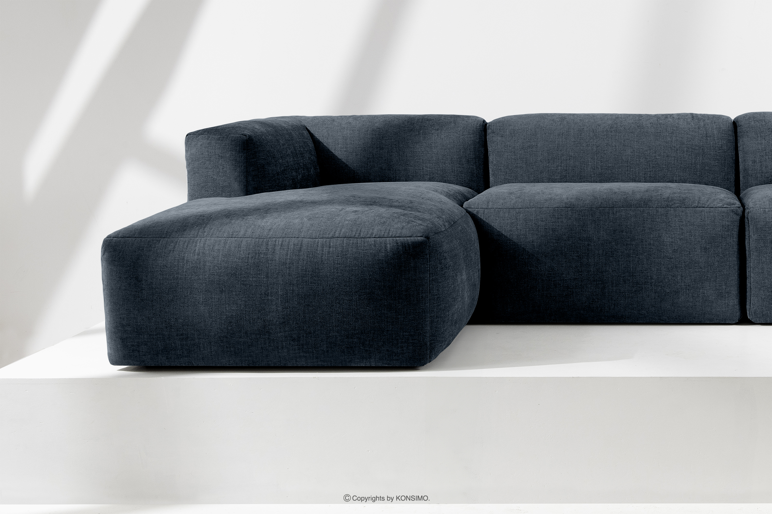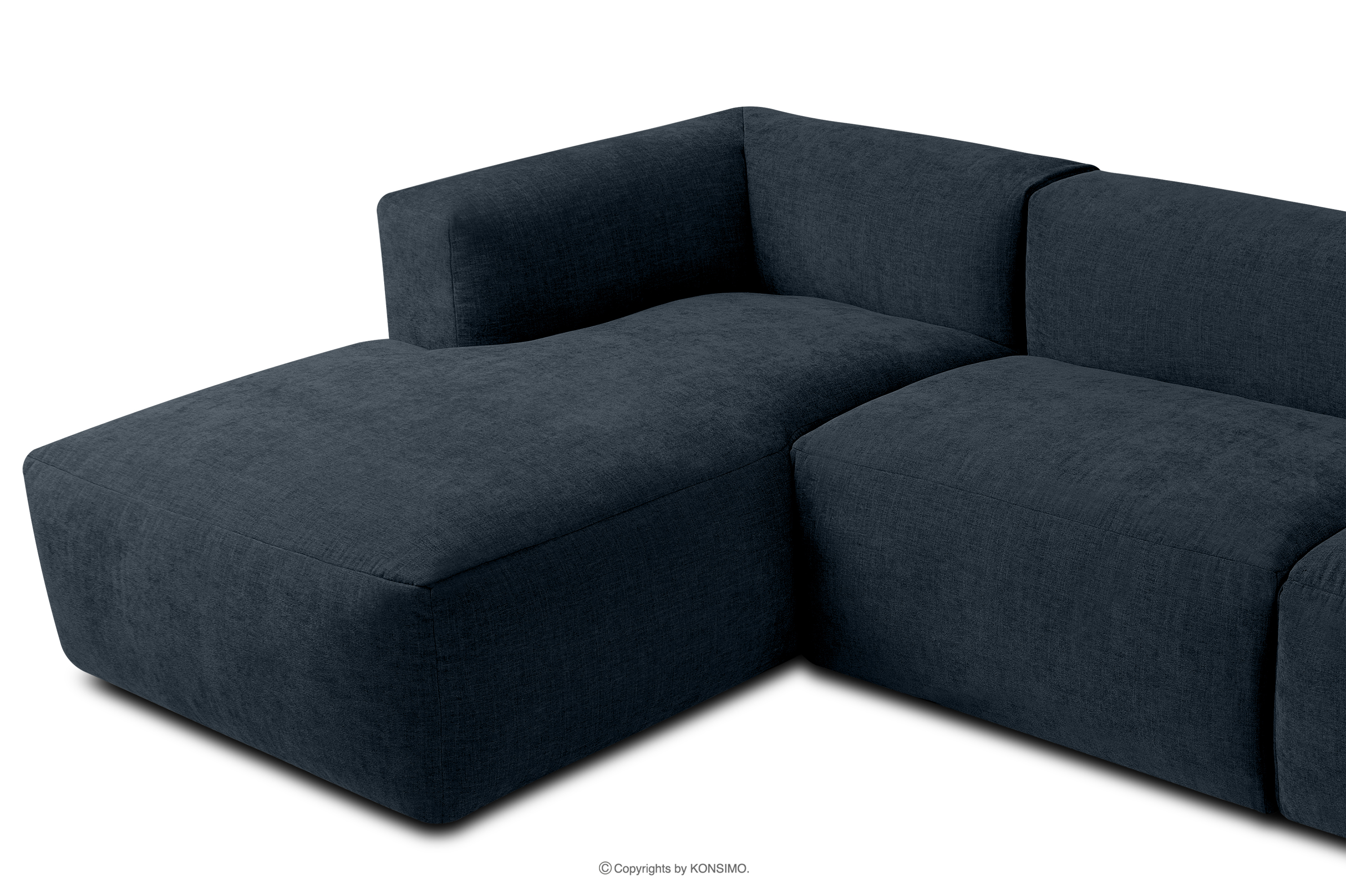 BUFFO Objav celú kolekciu Modulárna rohová pohovka, tkaná v tkanej látke tmavomodrá vľavo- farba tmavomodrá