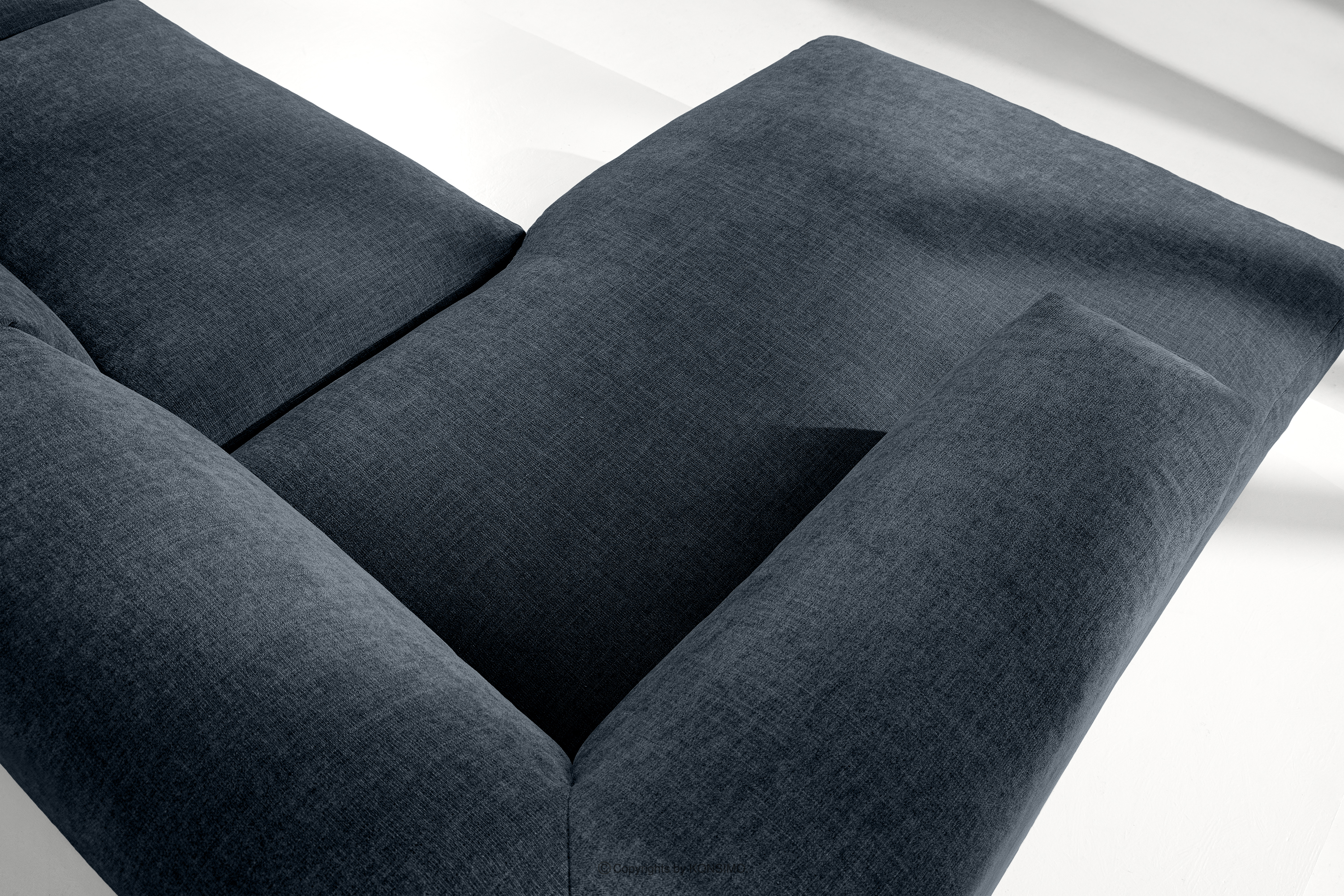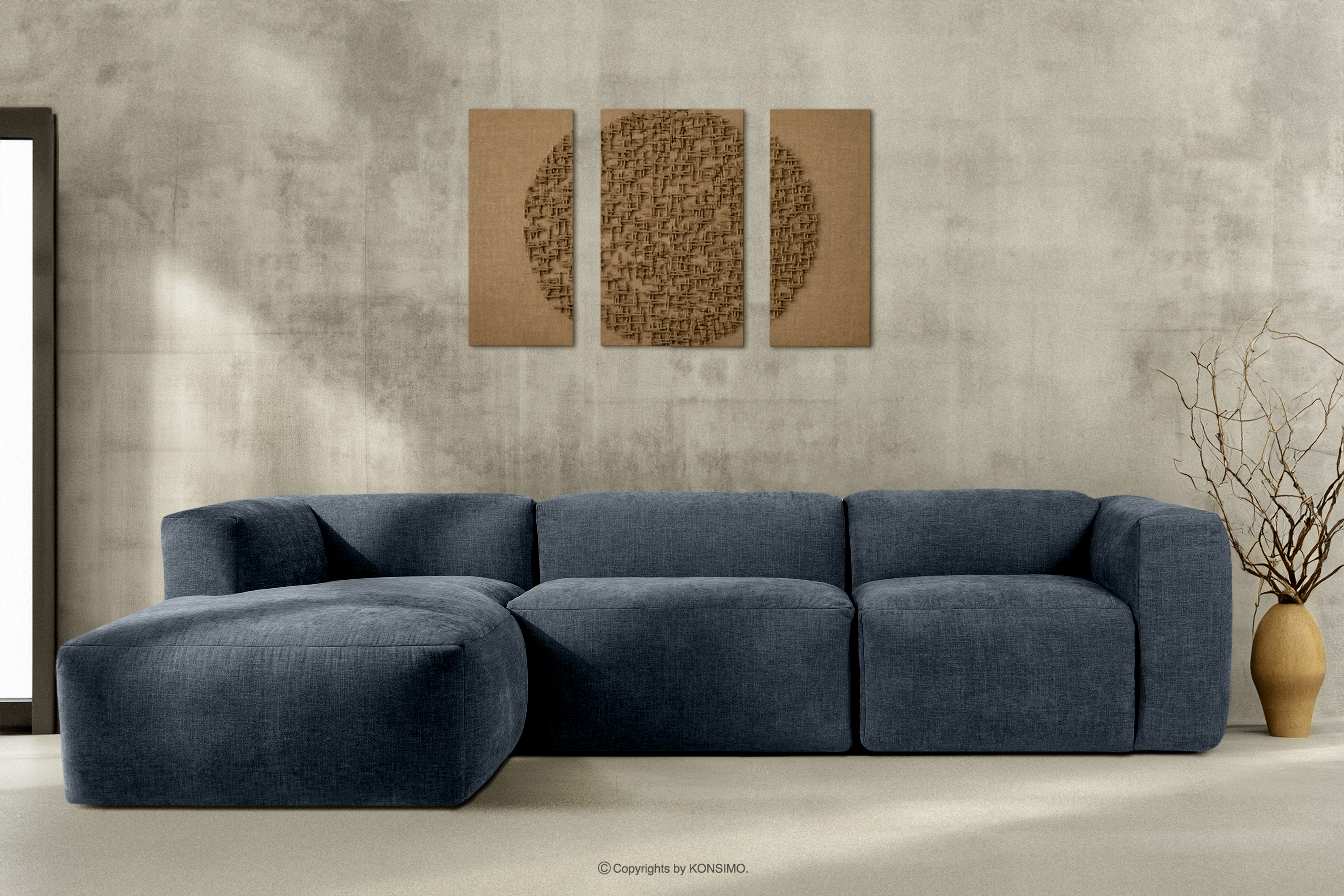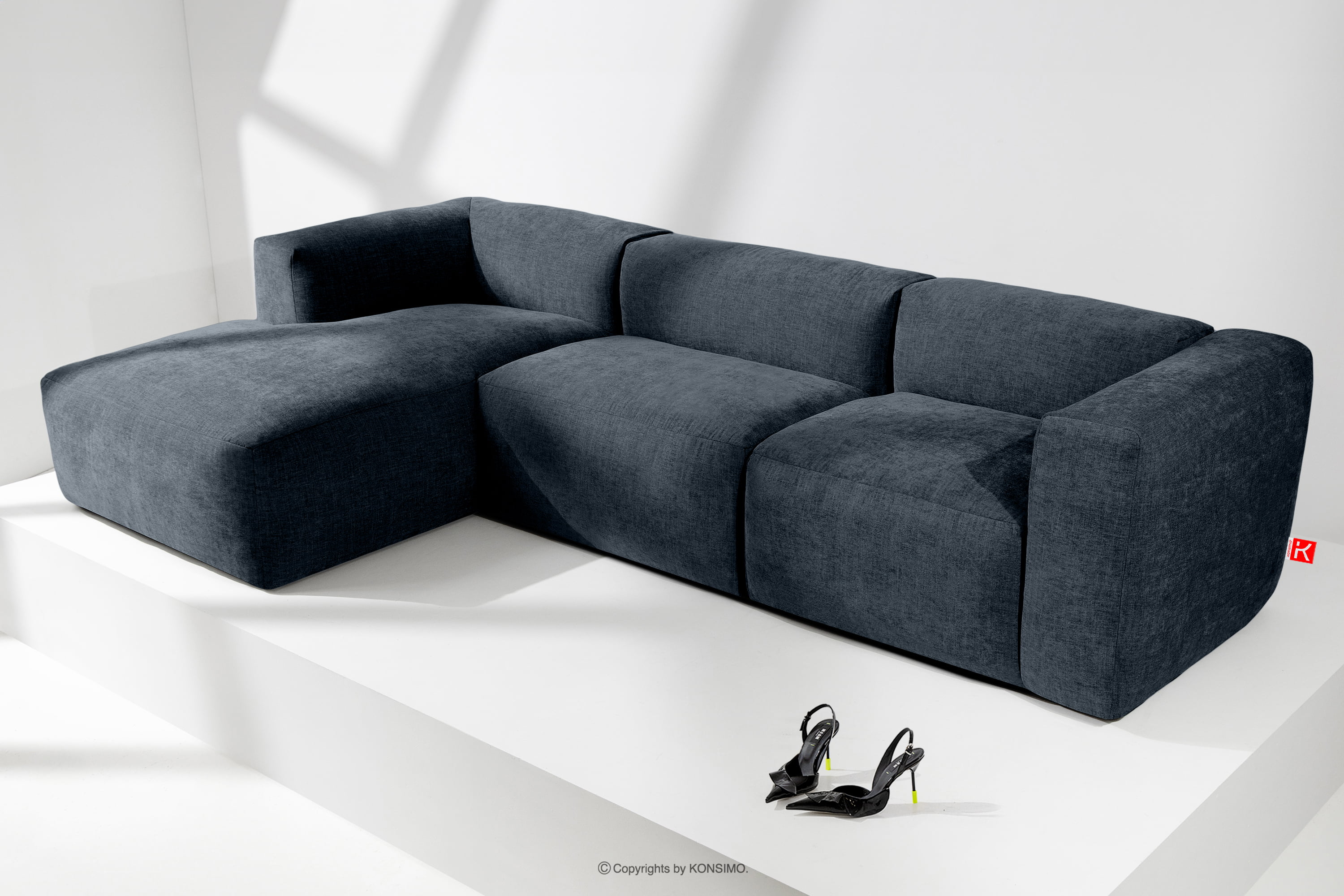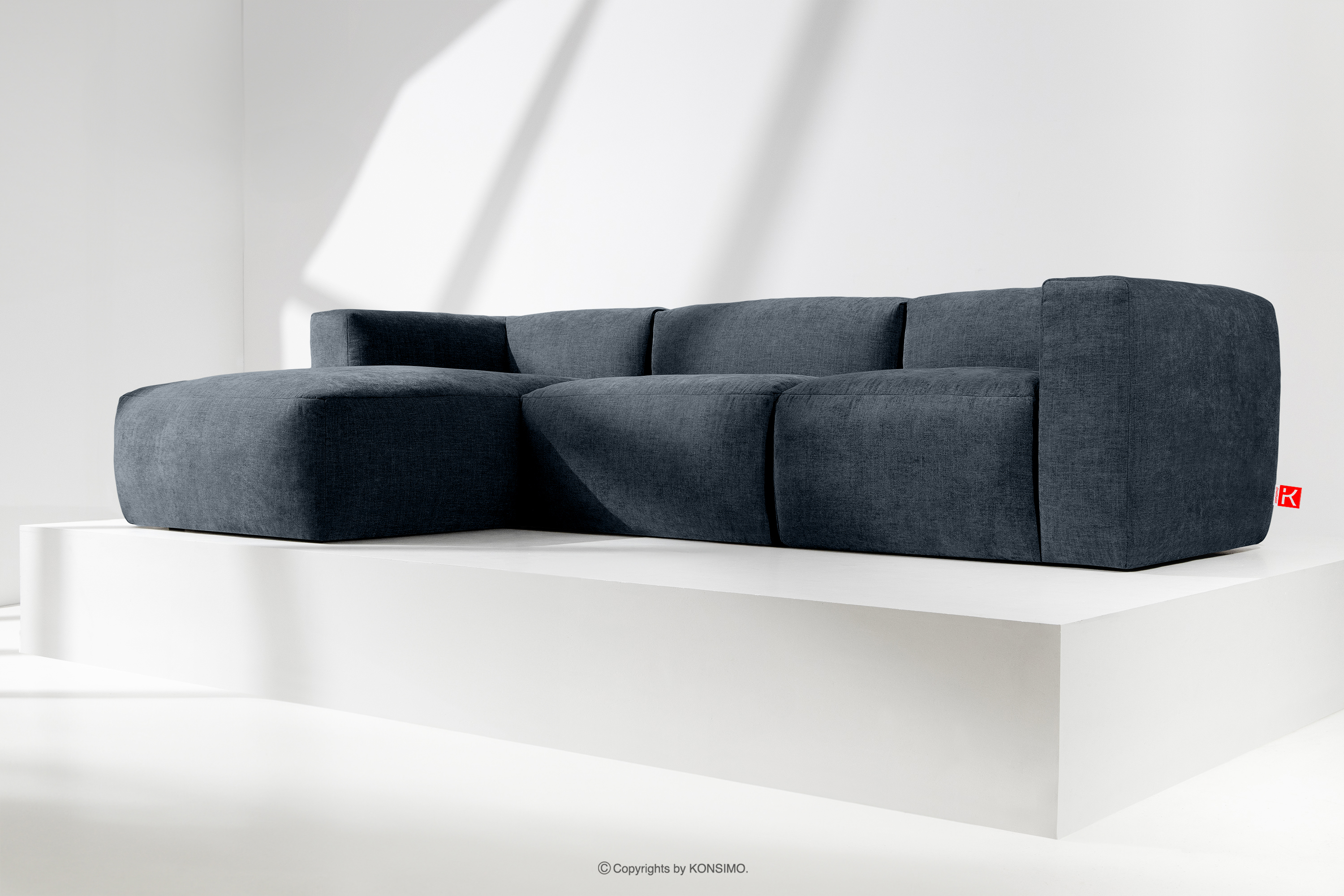 BUFFO Objav celú kolekciu Modulárna rohová pohovka, tkaná v tkanej látke tmavomodrá vľavo- farba tmavomodrá