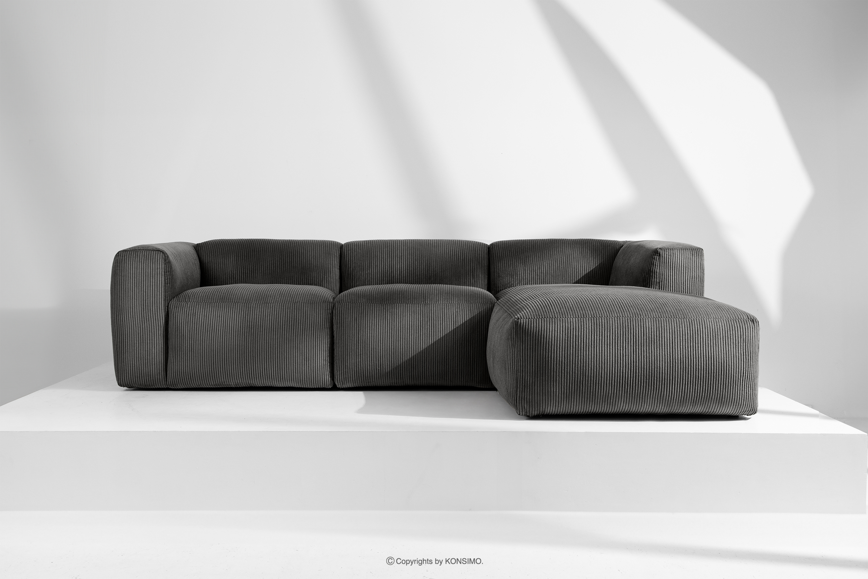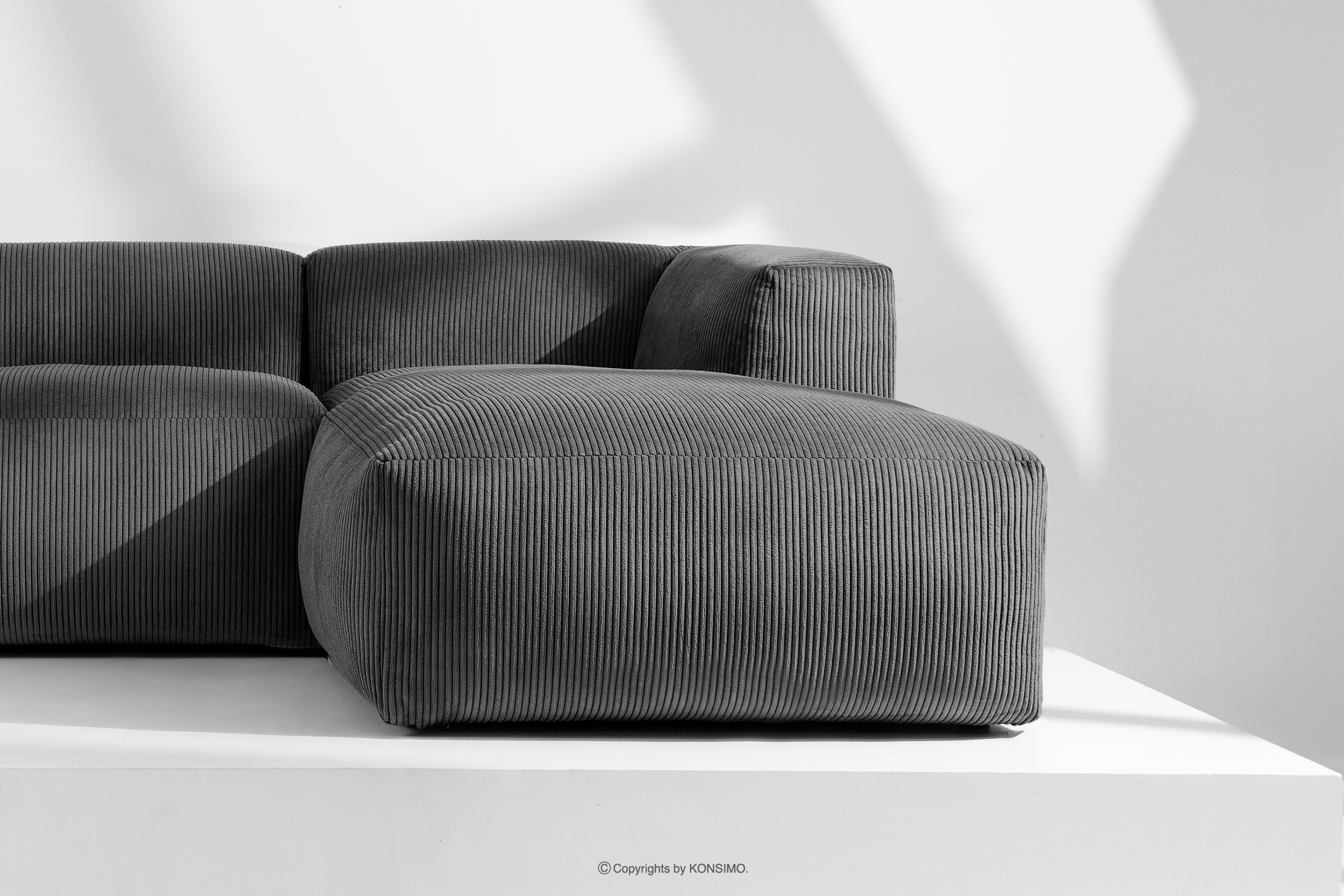 BUFFO Objav celú kolekciu Modulárna rohová pohovka s manšestrovou látkou sivá vpravo- farba sivá