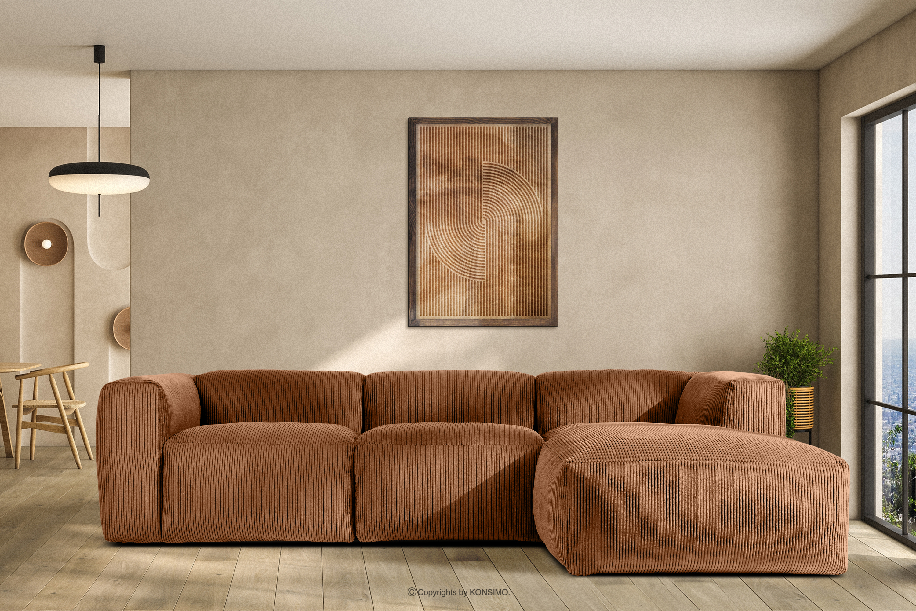 BUFFO Objav celú kolekciu Modulárna rohová pohovka s manšestrovou látkou červená vpravo- farba červená