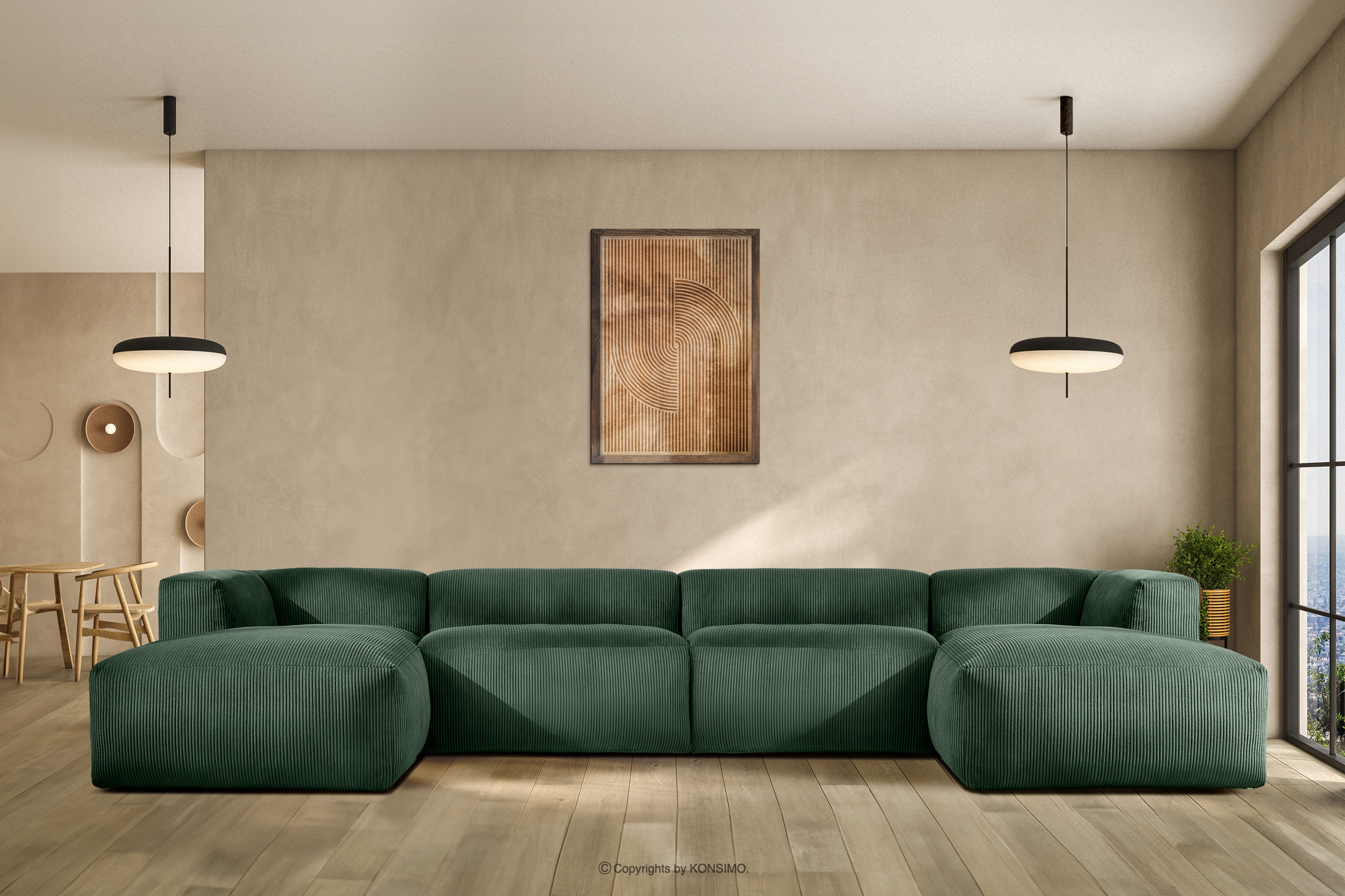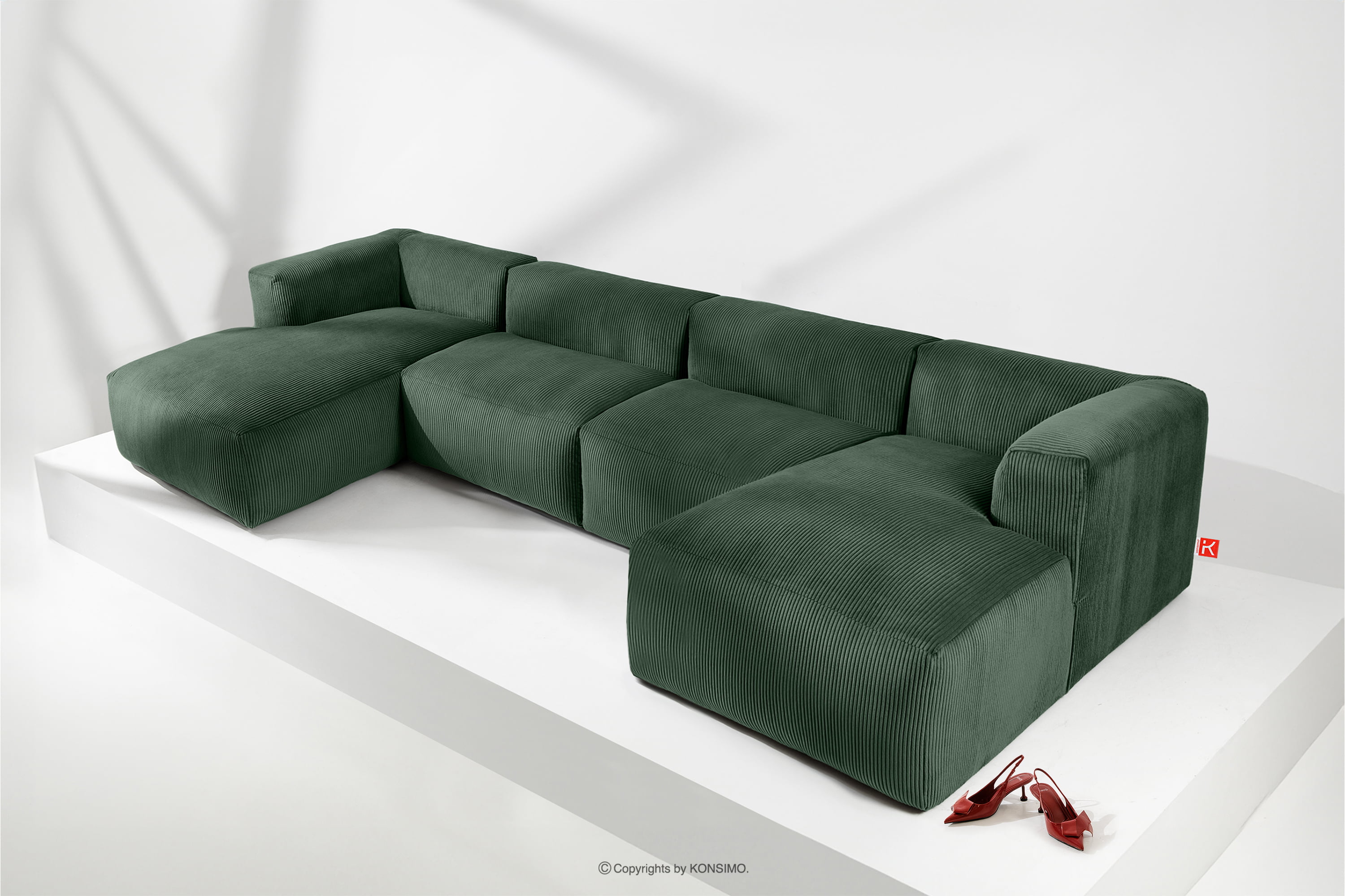 BUFFO Veľká rohová sedacia súprava v tvare U modulový manšestr tmavozelená