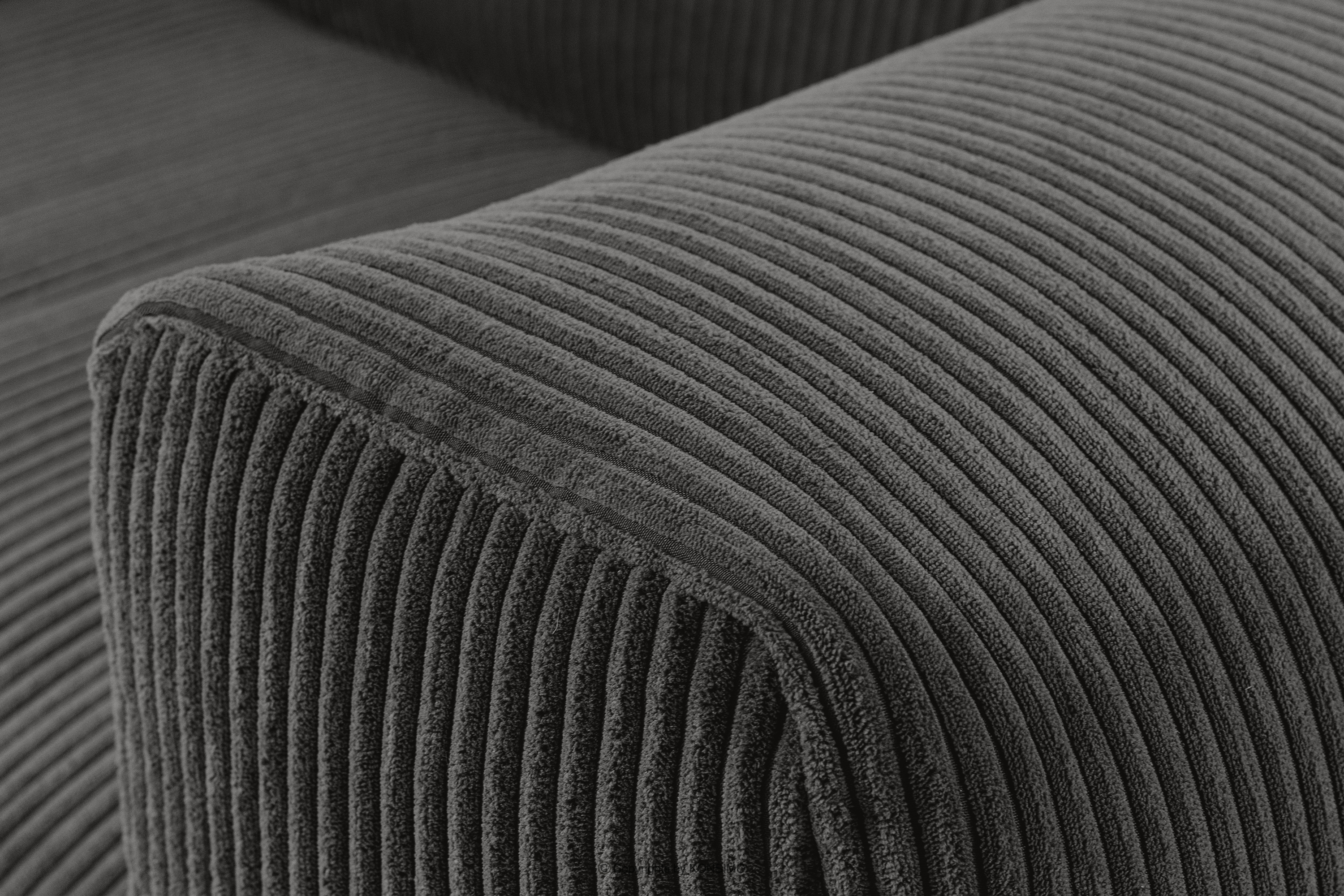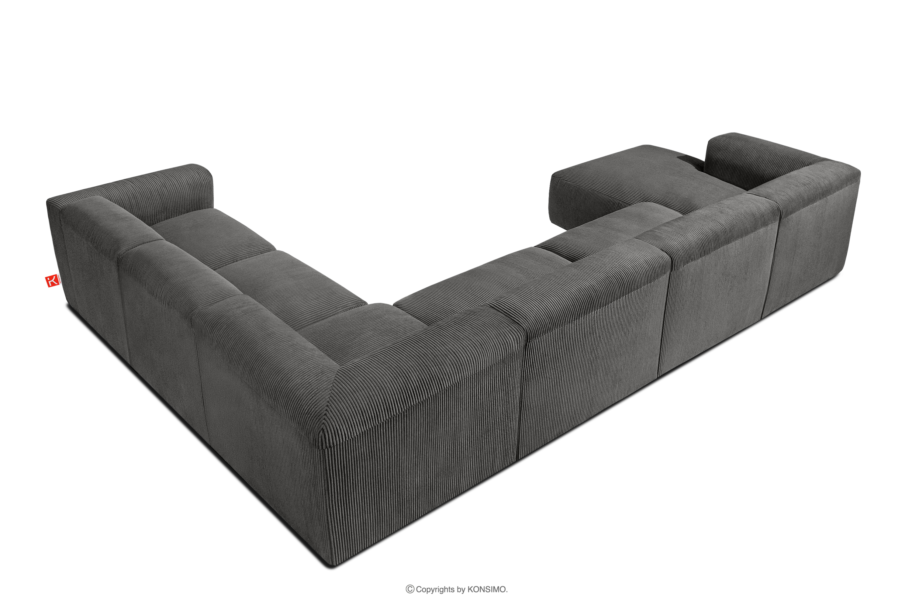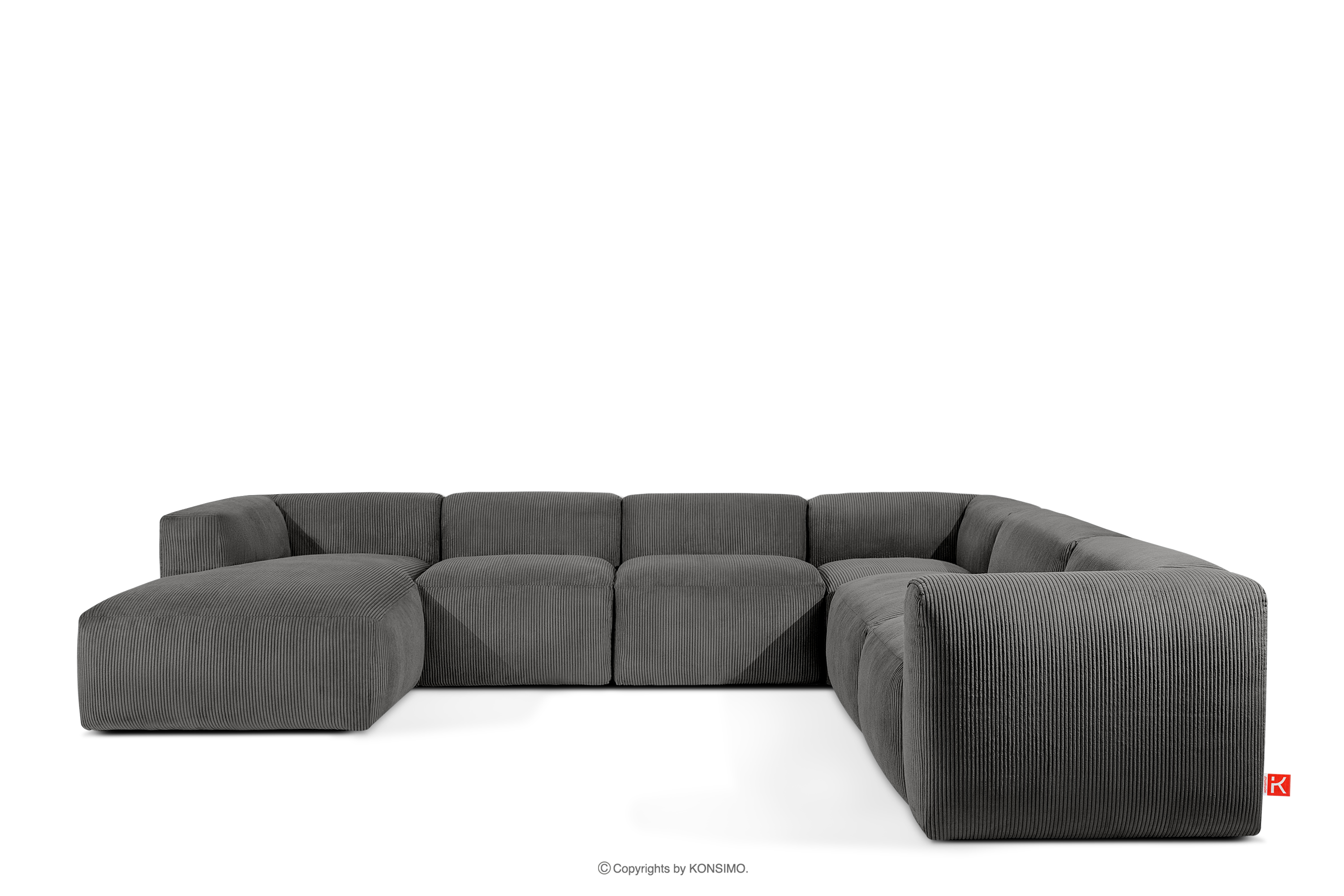 Rohová sedačka do "U" do obývačky látka manšestrová sivá sa určite stane ústredným bodom každej obývačky. Rám je vyrobený z odolného borovicového a bukového dreva, čo zaručuje nielen pevnosť, ale aj estetiku. Okrem toho použitie odolných drevotrieskových a drevovláknitých dosiek zvyšuje úroveň stability a odolnosti nábytku. Vďaka tomu si zachováva svoju formu aj pri intenzívnom používaní, takže je mimoriadne odolný voči všetkým nástrahám každodenného života.