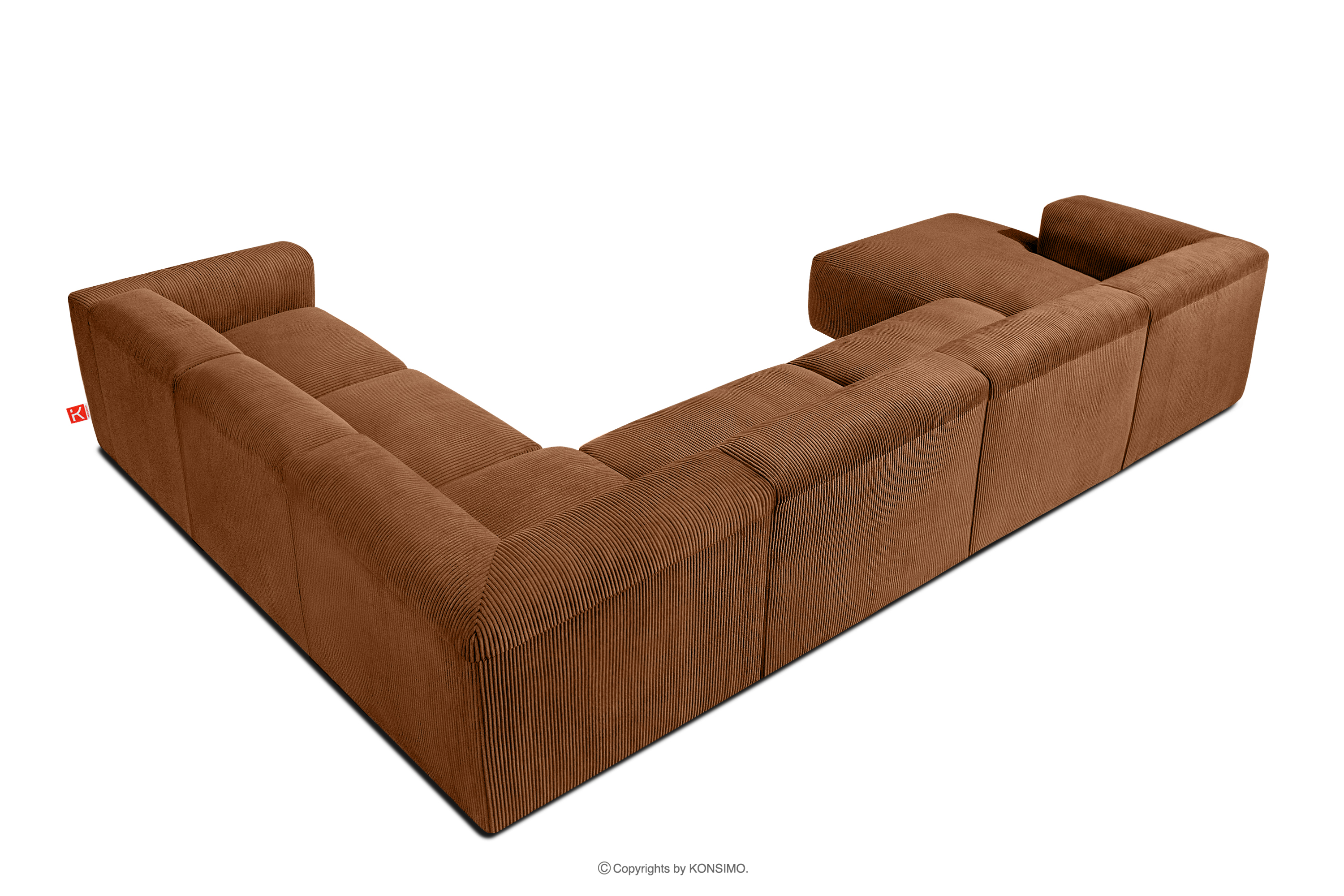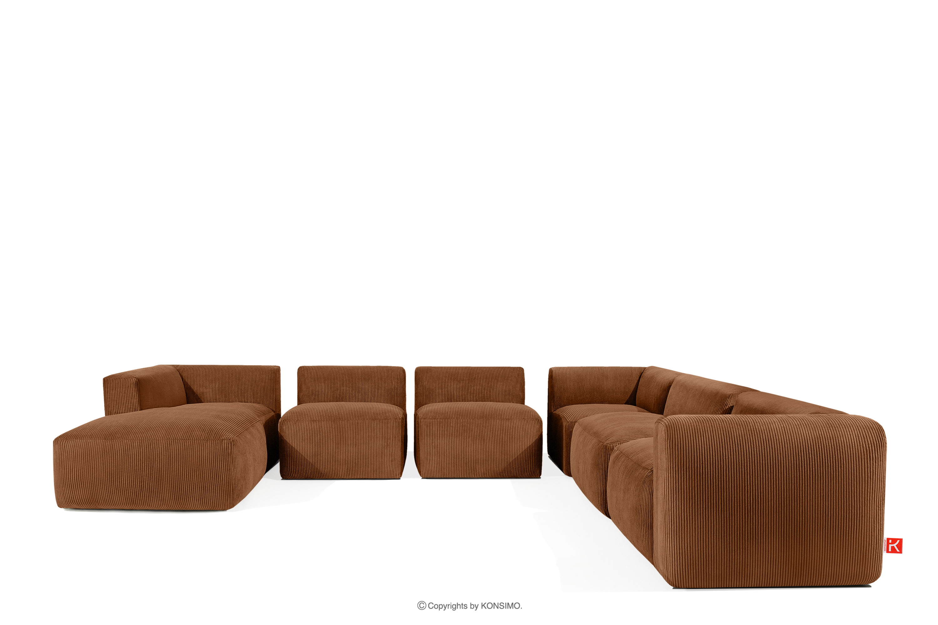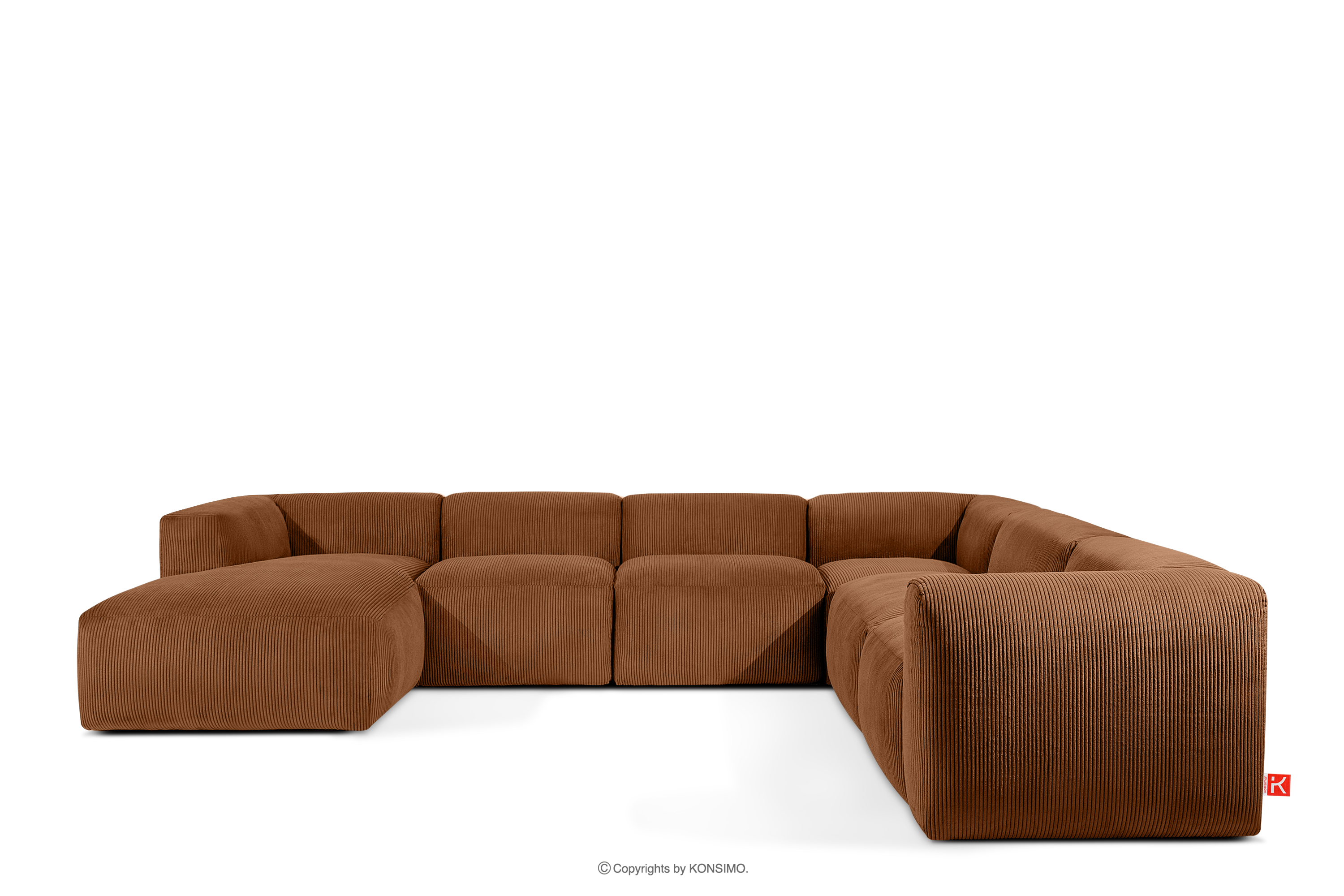 Rohová sedacia súprava do "U" do obývačky látka manšestr ruda sa určite stane ústredným bodom každej obývačky. Rám je vyrobený z odolného borovicového a bukového dreva, čo zaručuje nielen pevnosť, ale aj estetiku. Okrem toho použitie odolných drevotrieskových a drevovláknitých dosiek zvyšuje úroveň stability a odolnosti nábytku. Vďaka tomu si zachováva svoju formu aj pri intenzívnom používaní, takže je mimoriadne odolný voči všetkým nástrahám každodenného života.