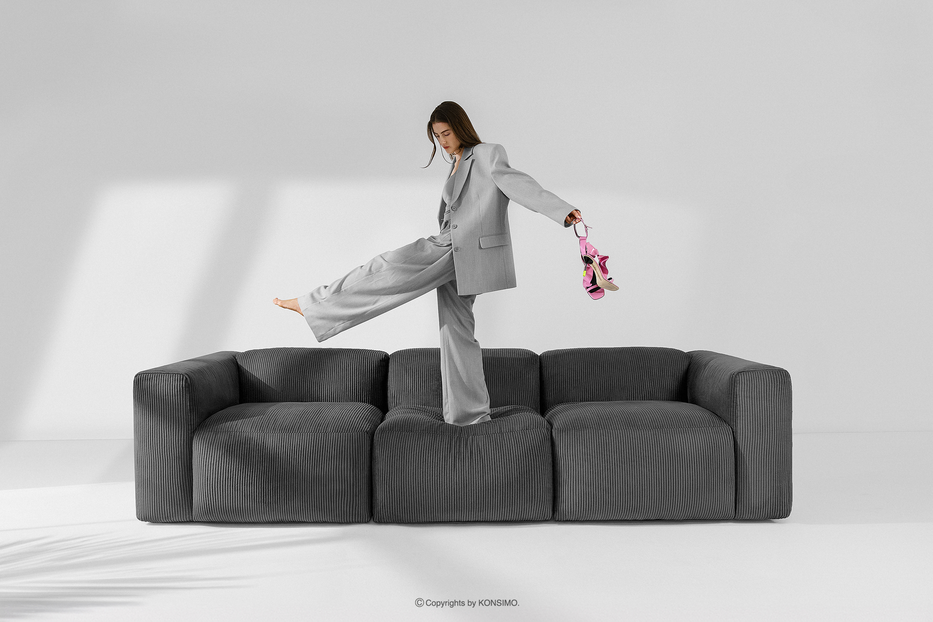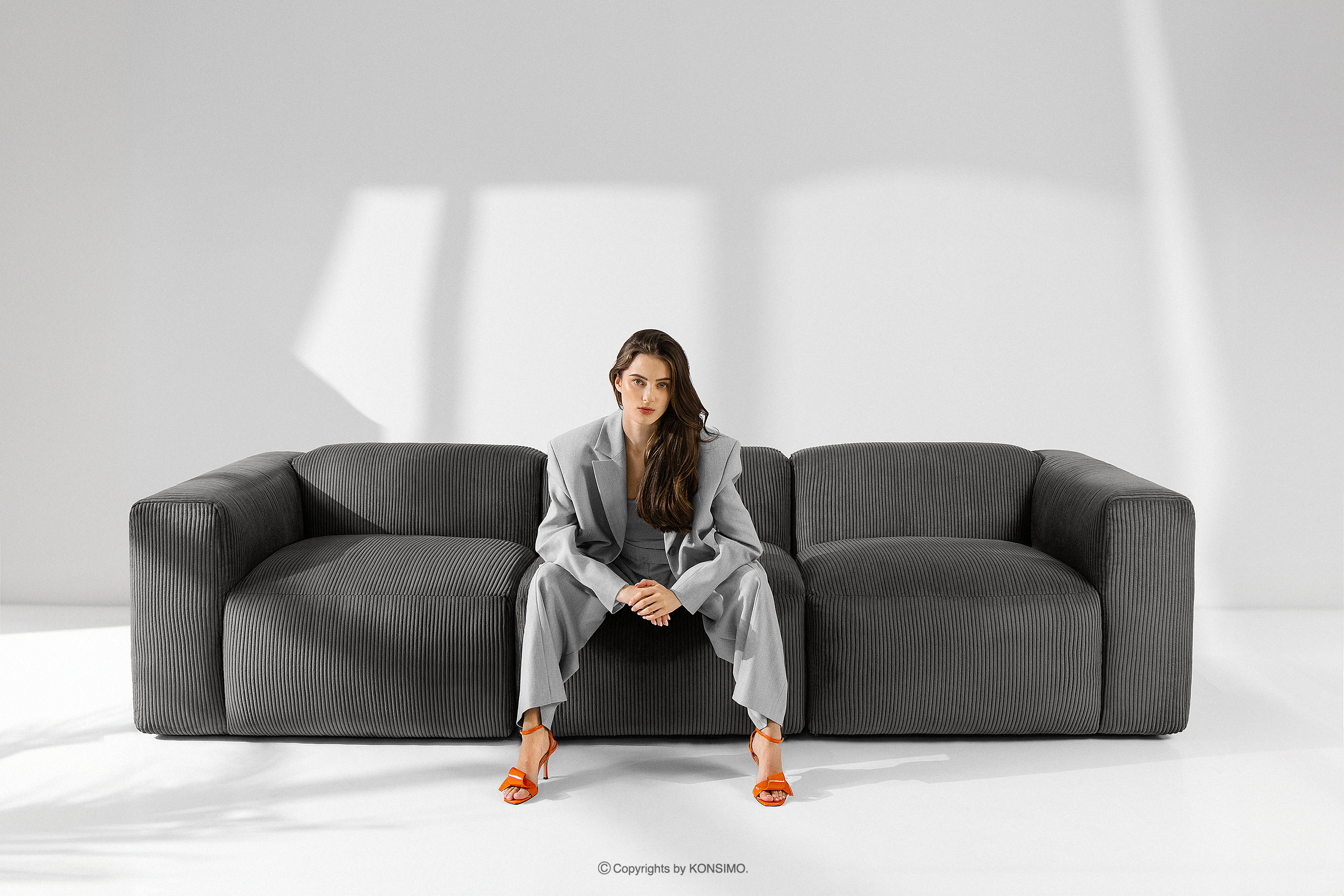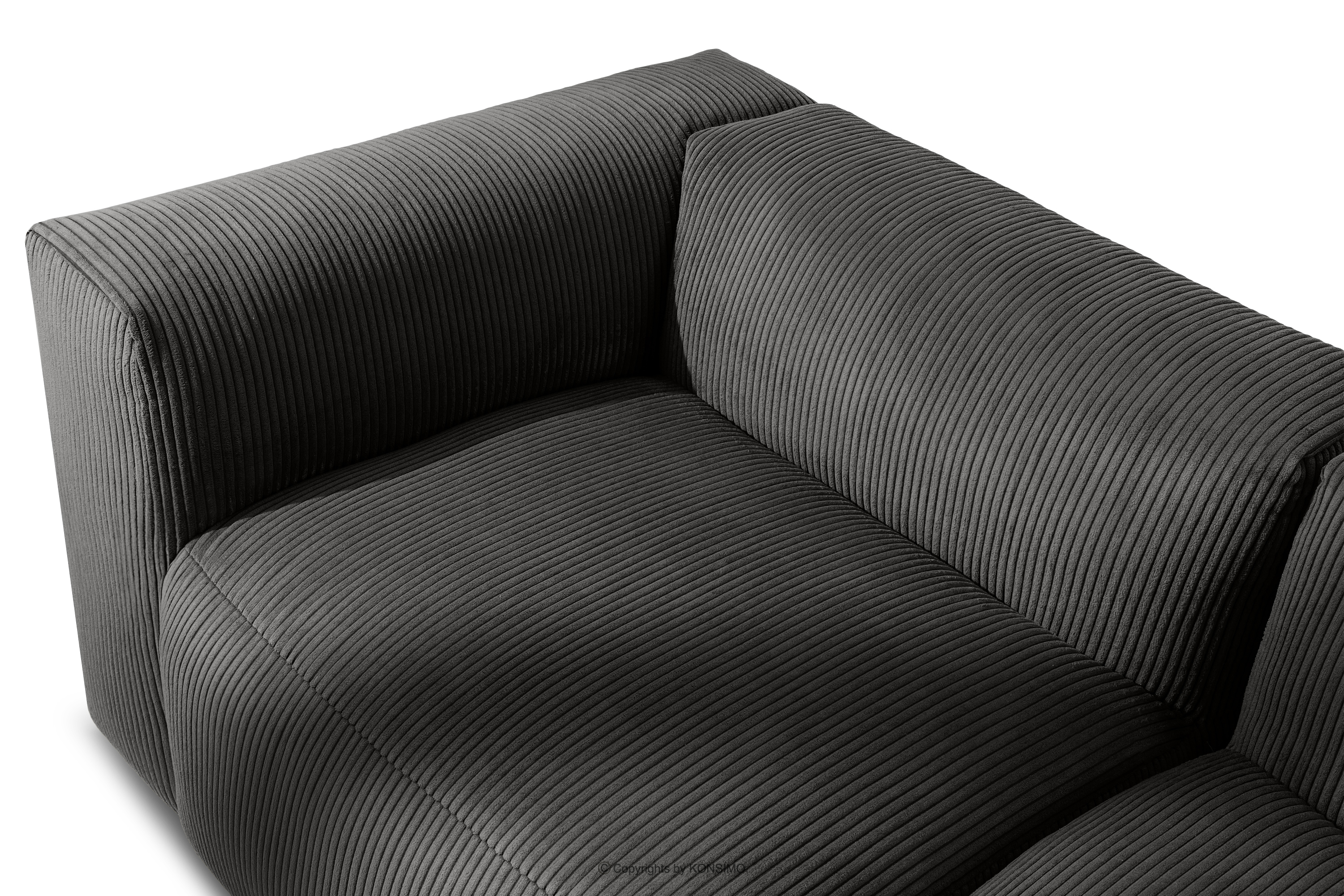 Veľká rohová pohovka v manšestrovej sivej látke sa určite stane ústredným bodom každej obývačky. Rám je vyrobený z odolného borovicového a bukového dreva, čo zaručuje nielen pevnosť, ale aj estetiku. Okrem toho použitie odolných drevotrieskových a drevovláknitých dosiek zvyšuje úroveň stability a odolnosti nábytku. Vďaka tomu si zachováva svoju formu aj pri intenzívnom používaní, takže je mimoriadne odolný voči všetkým nástrahám každodenného života.