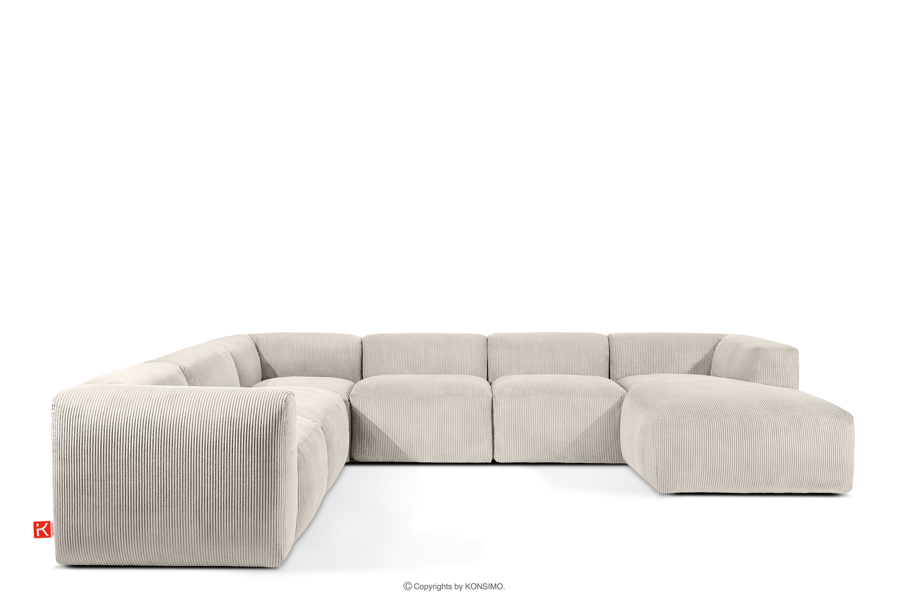 BUFFO Objav celú kolekciu Veľká rohová pohovka v manšestrovej krémovej látke- farba krémová
