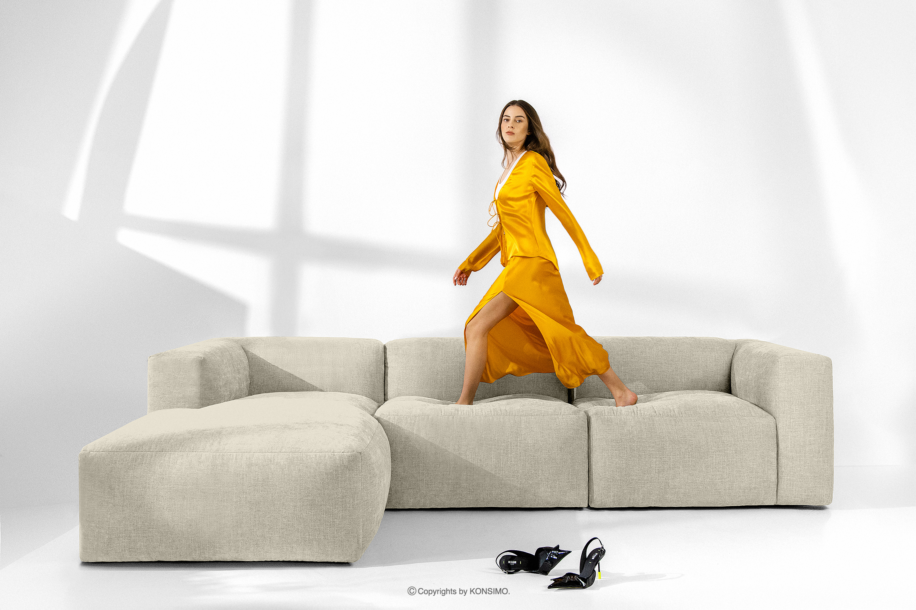 BUFFO Objav celú kolekciu Veľká rohová pohovka tkanej látky ecru- farba ecru
