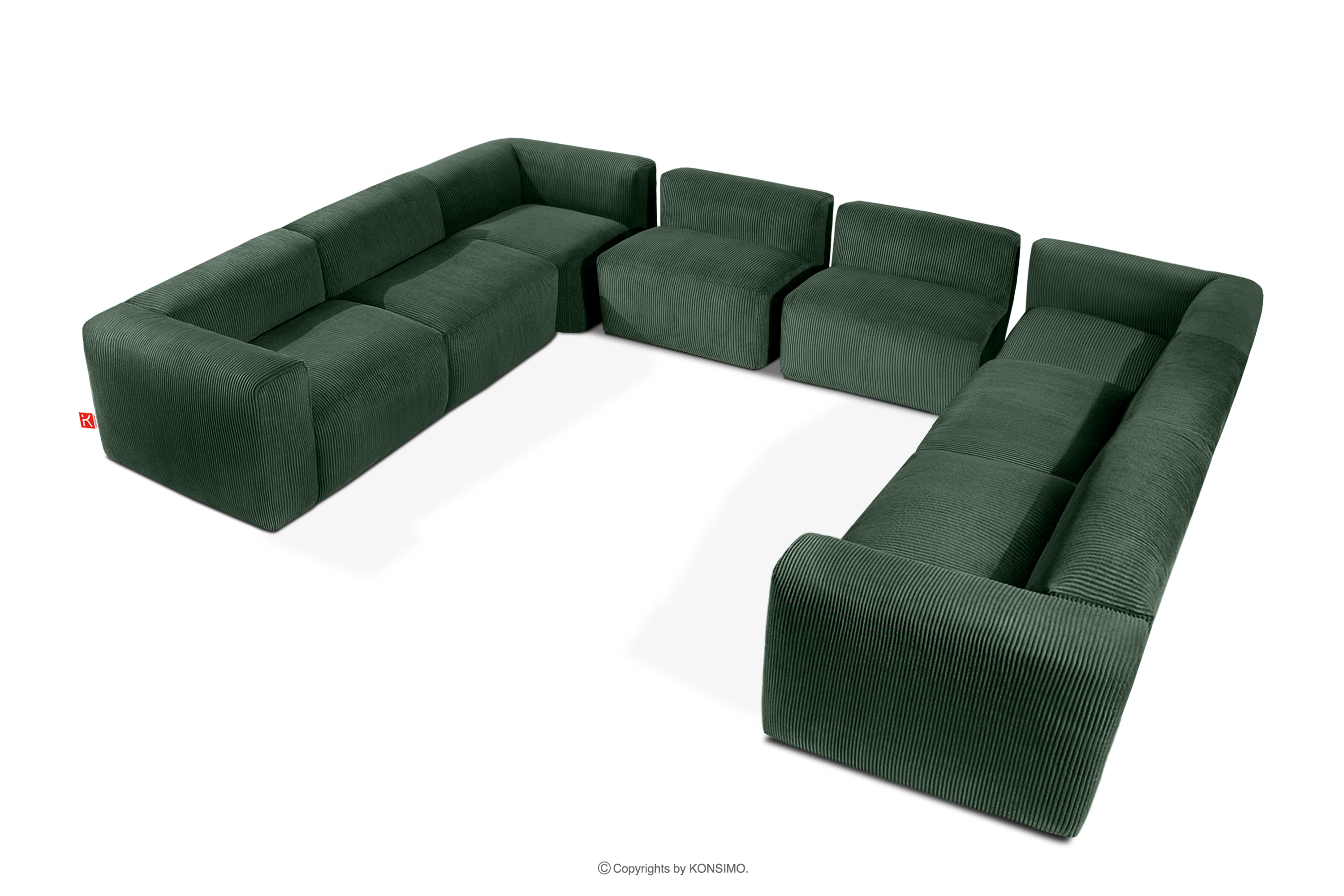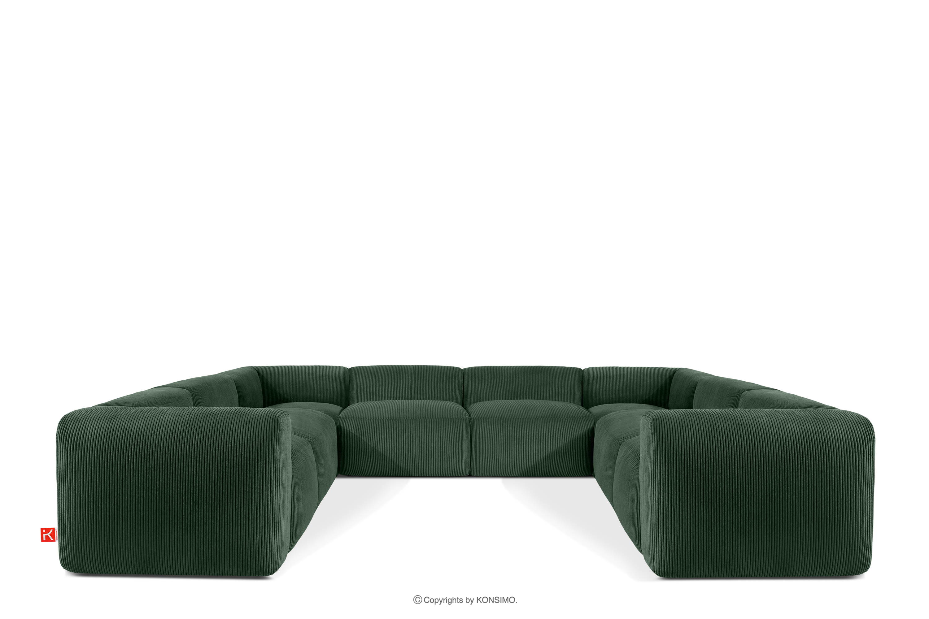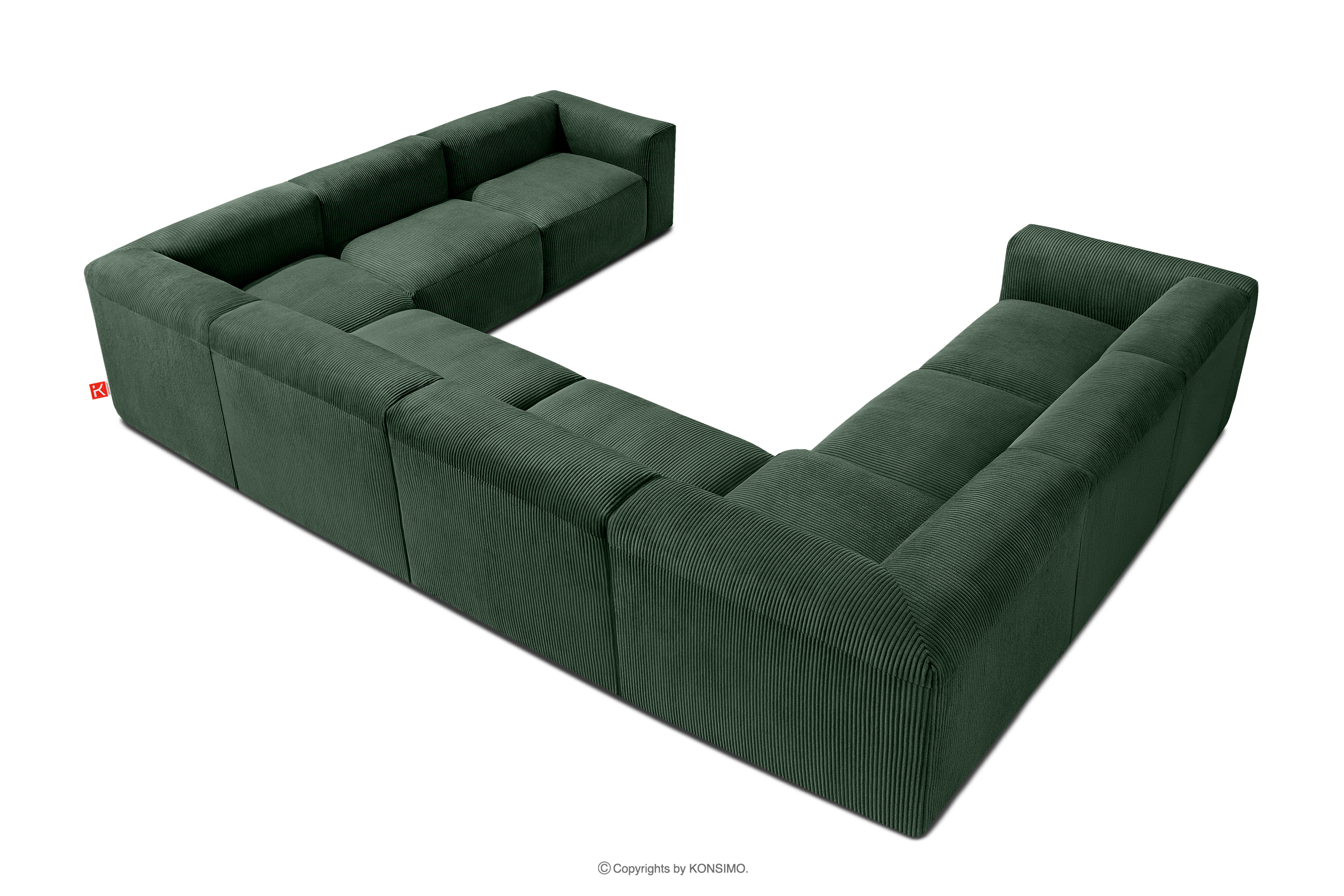 Veľký boho rohové „U“ z tmavozelenej manšestrovej látky BUFFO - farba tmavozelená