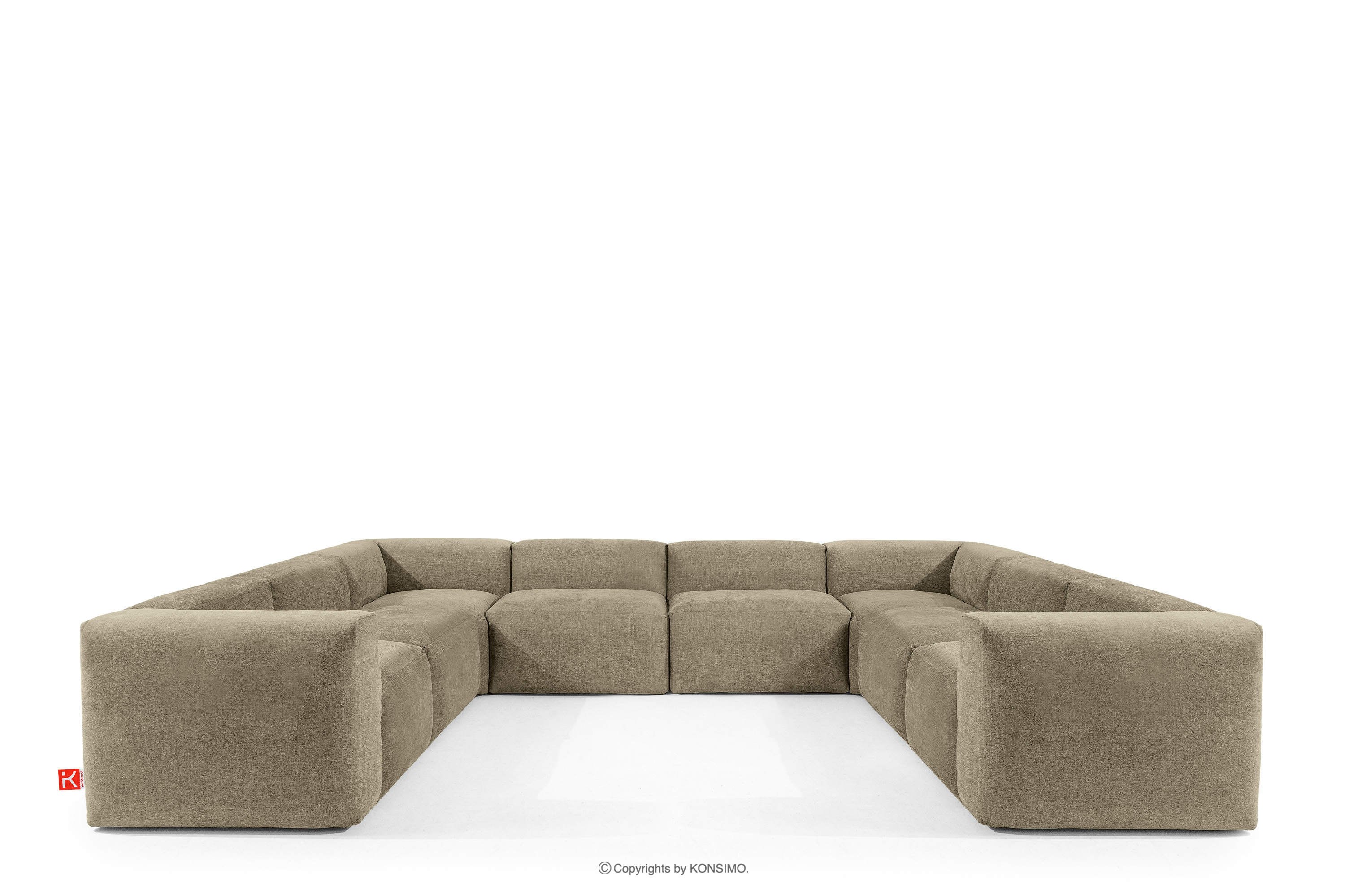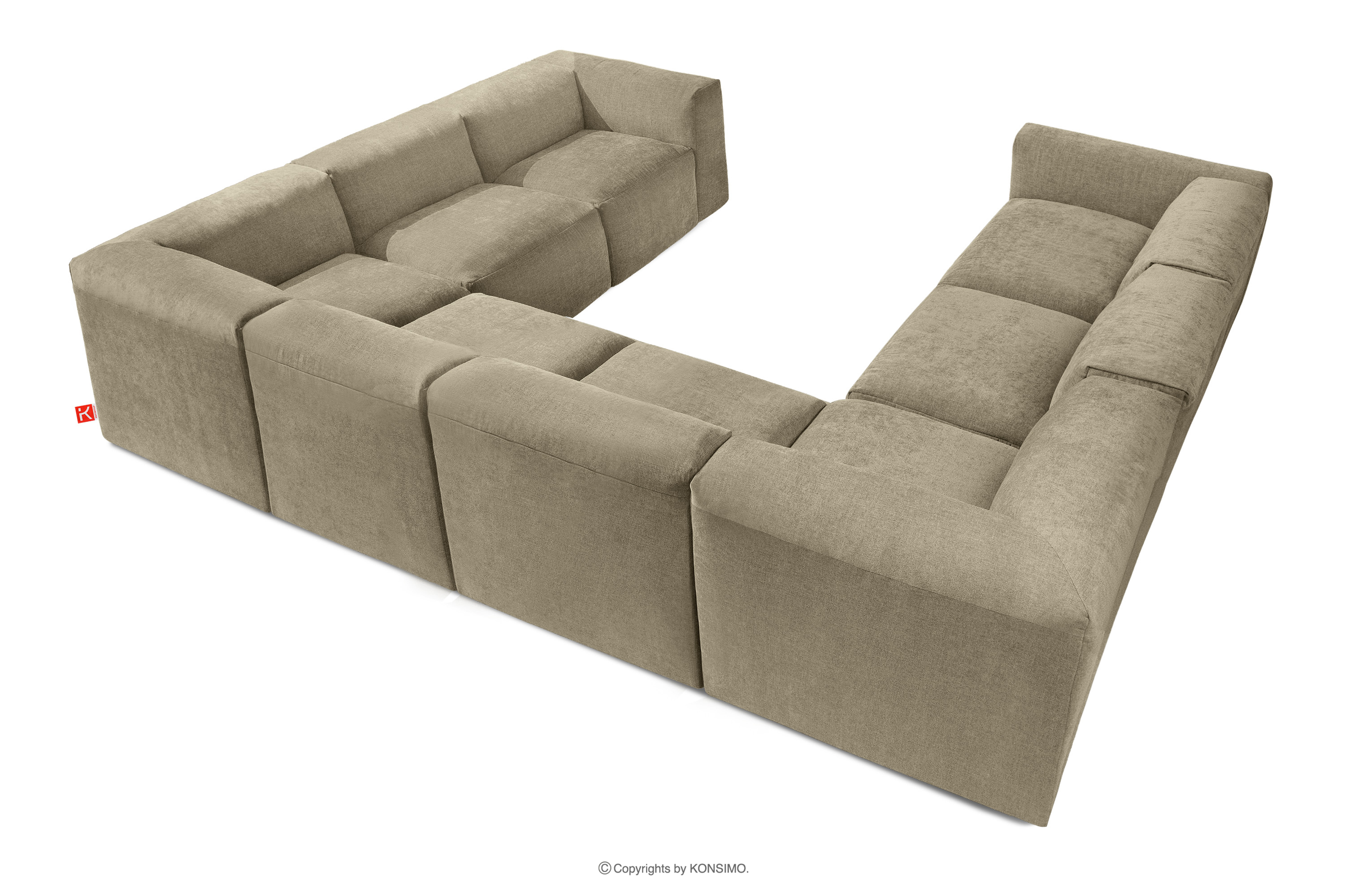 Veľká rohová pohovka do "U" v kockovanej pieskovej látke sa určite stane stredobodom každej obývačky. Rám je vyrobený z odolného borovicového a bukového dreva, čo zaručuje nielen robustnosť, ale aj estetiku. Okrem toho použitie odolných drevotrieskových a drevovláknitých dosiek zvyšuje úroveň stability a odolnosti nábytku. Vďaka tomu si zachováva svoju formu aj pri intenzívnom používaní, takže je mimoriadne odolný voči všetkým nástrahám každodenného života.