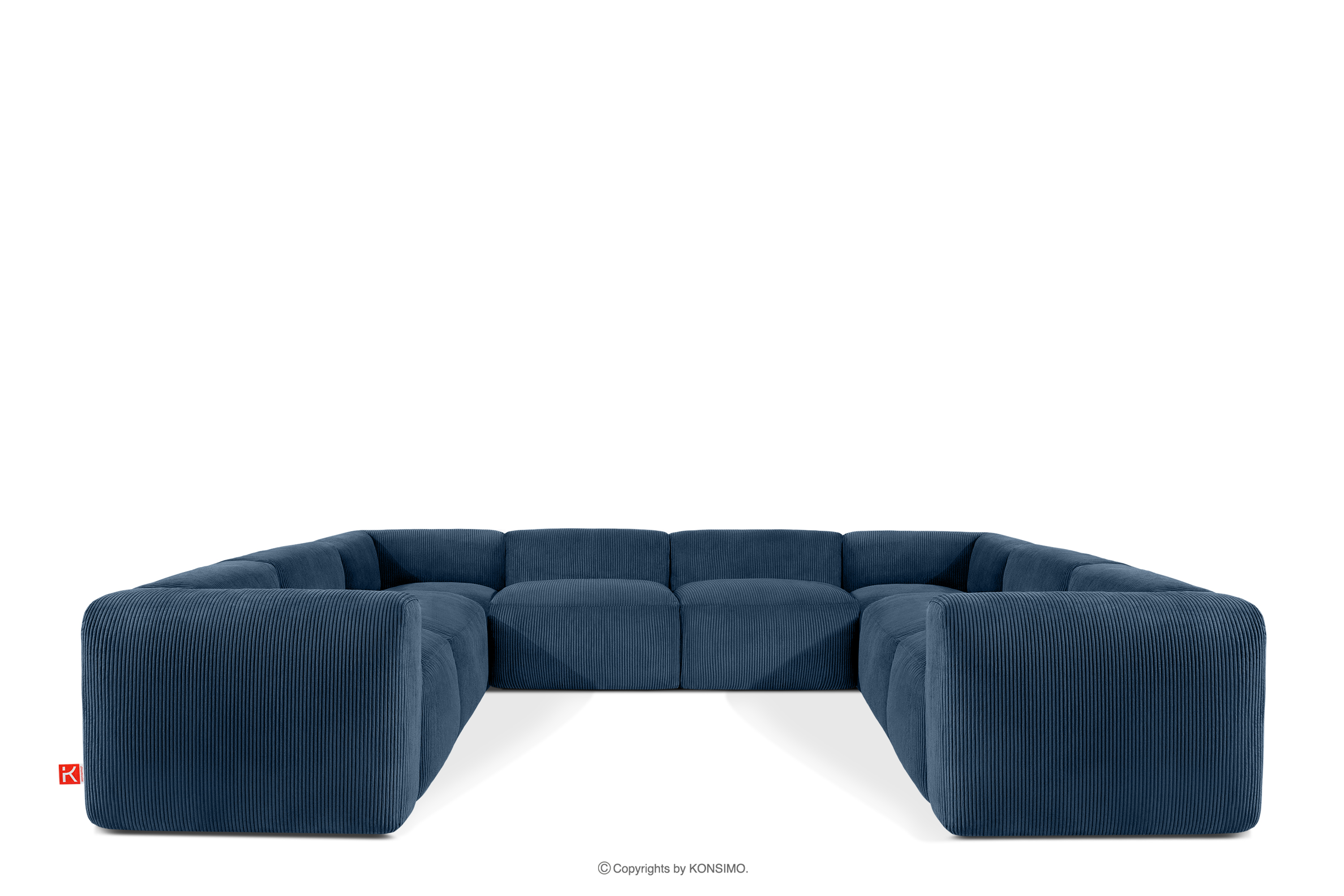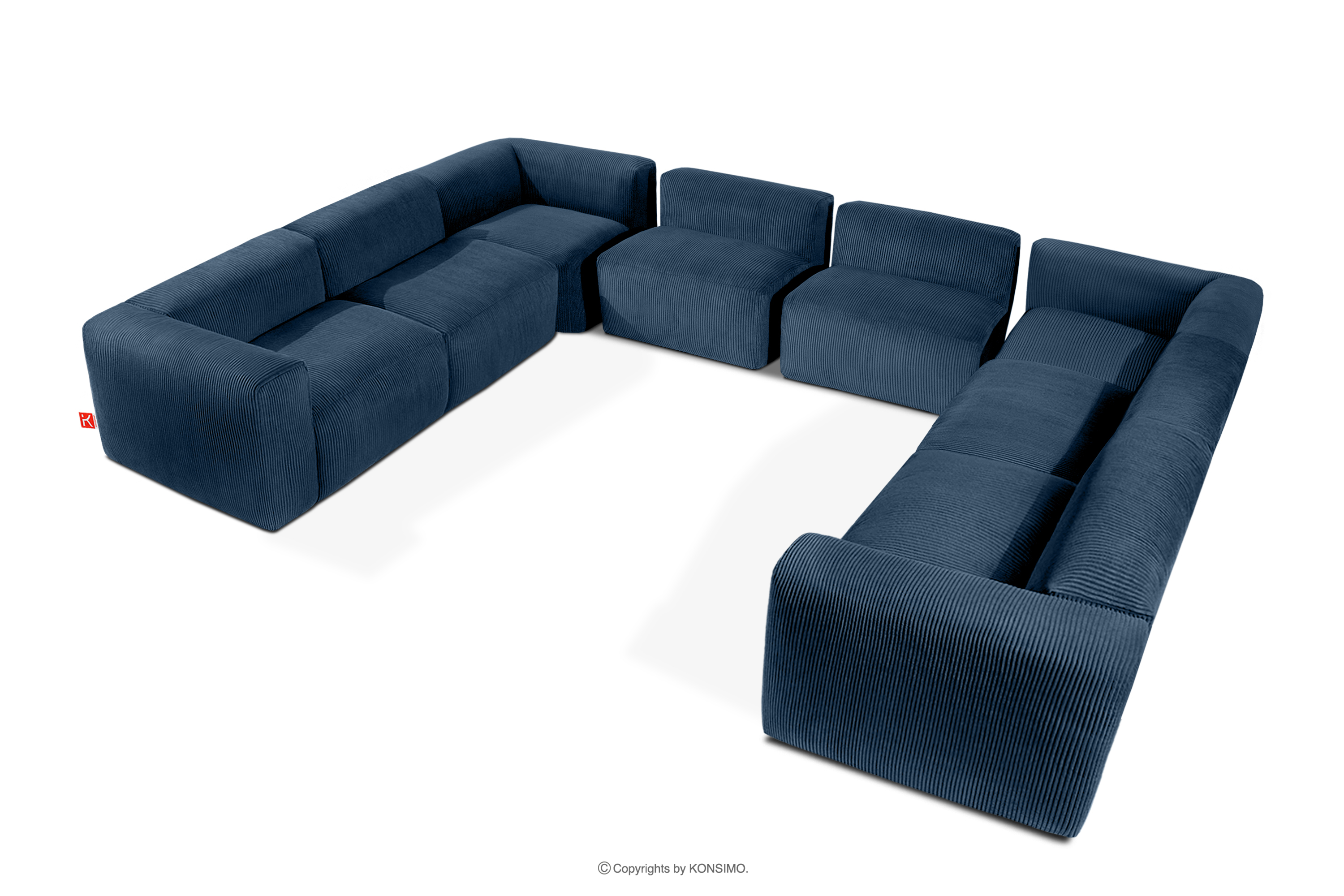 Veľký boho rohové „U“ z modrej manšestrovej látky BUFFO - farba námornícka modrá