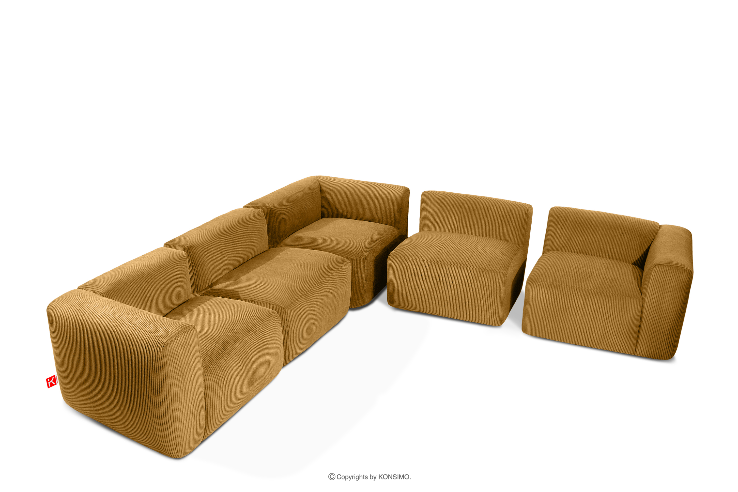 BUFFO Objav celú kolekciu Veľká rohová sedacia súprava modulová z manšestrovej látky žltej farby- farba žltá