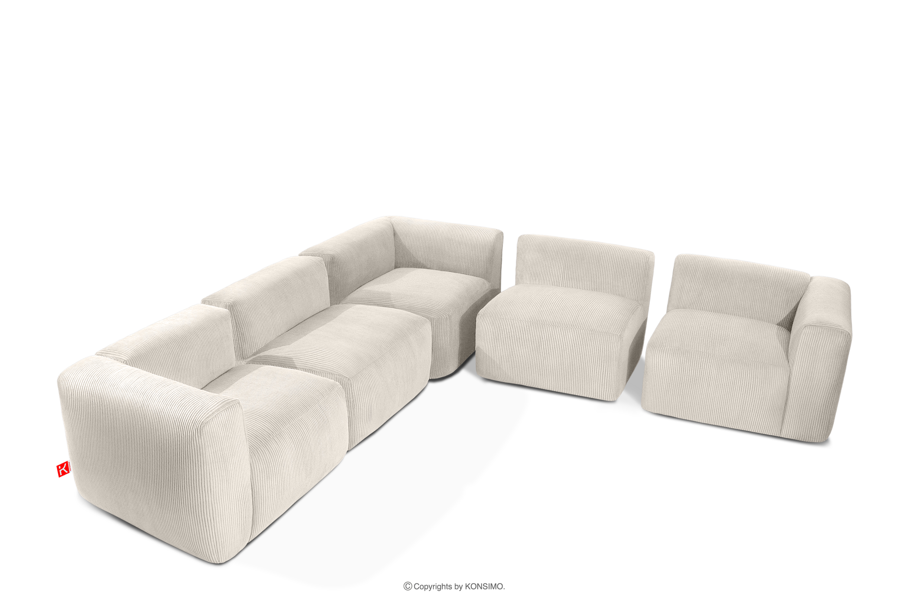 BUFFO Objav celú kolekciu Veľká rohová sedačka modulárna z manšestrovej krémovej tkaniny- farba krémová