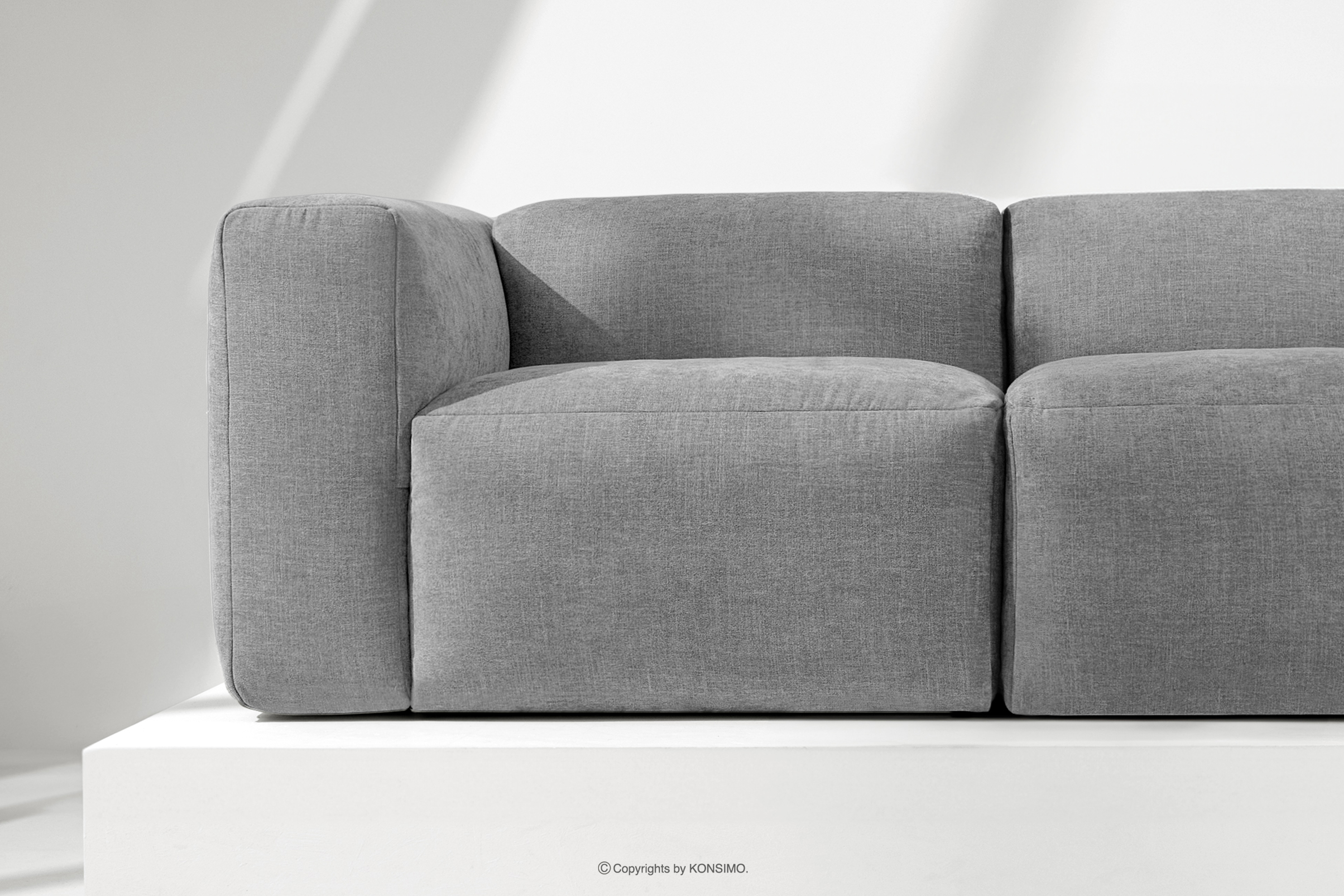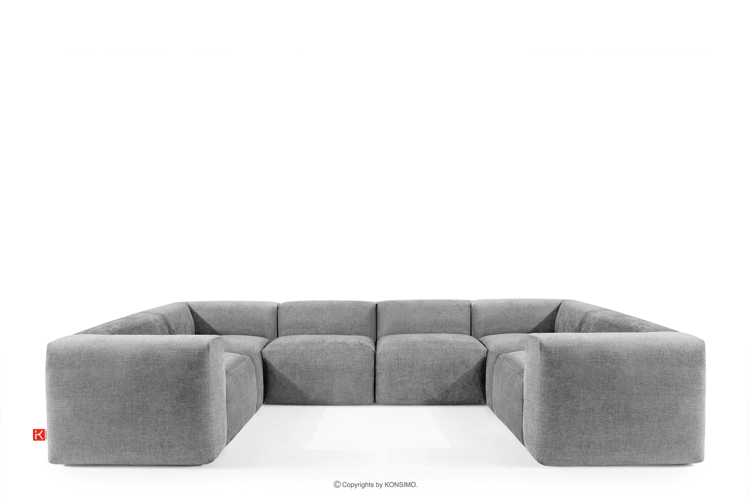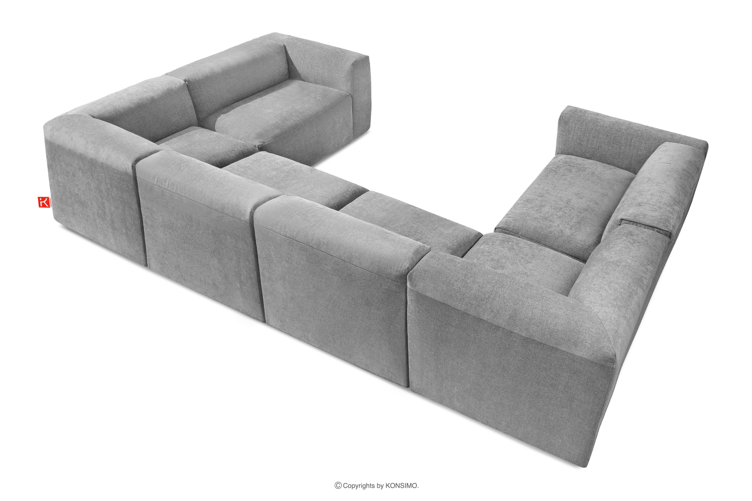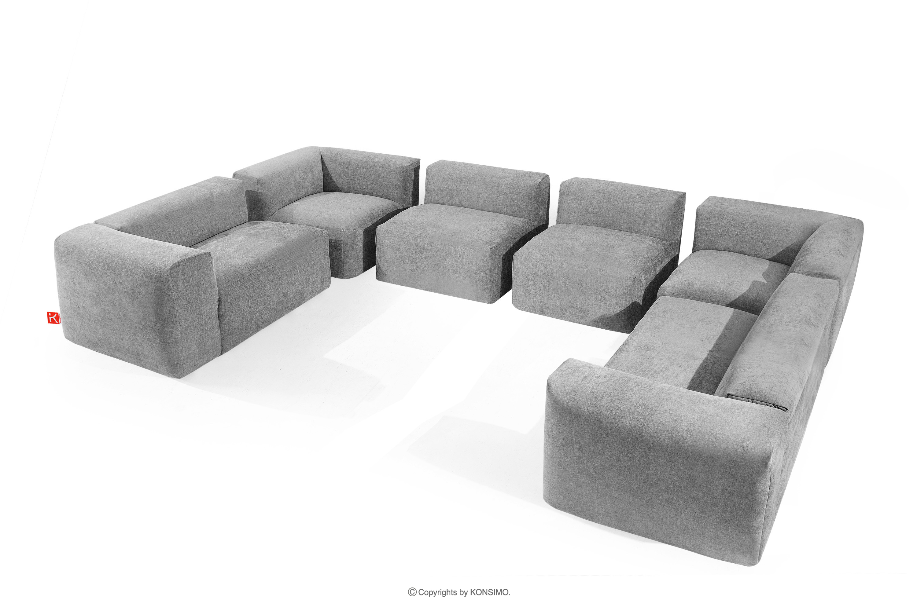 BUFFO Objav celú kolekciu Veľká rohová modulárna pohovka „U“ v tkanej látke- farba svetlo popolavá