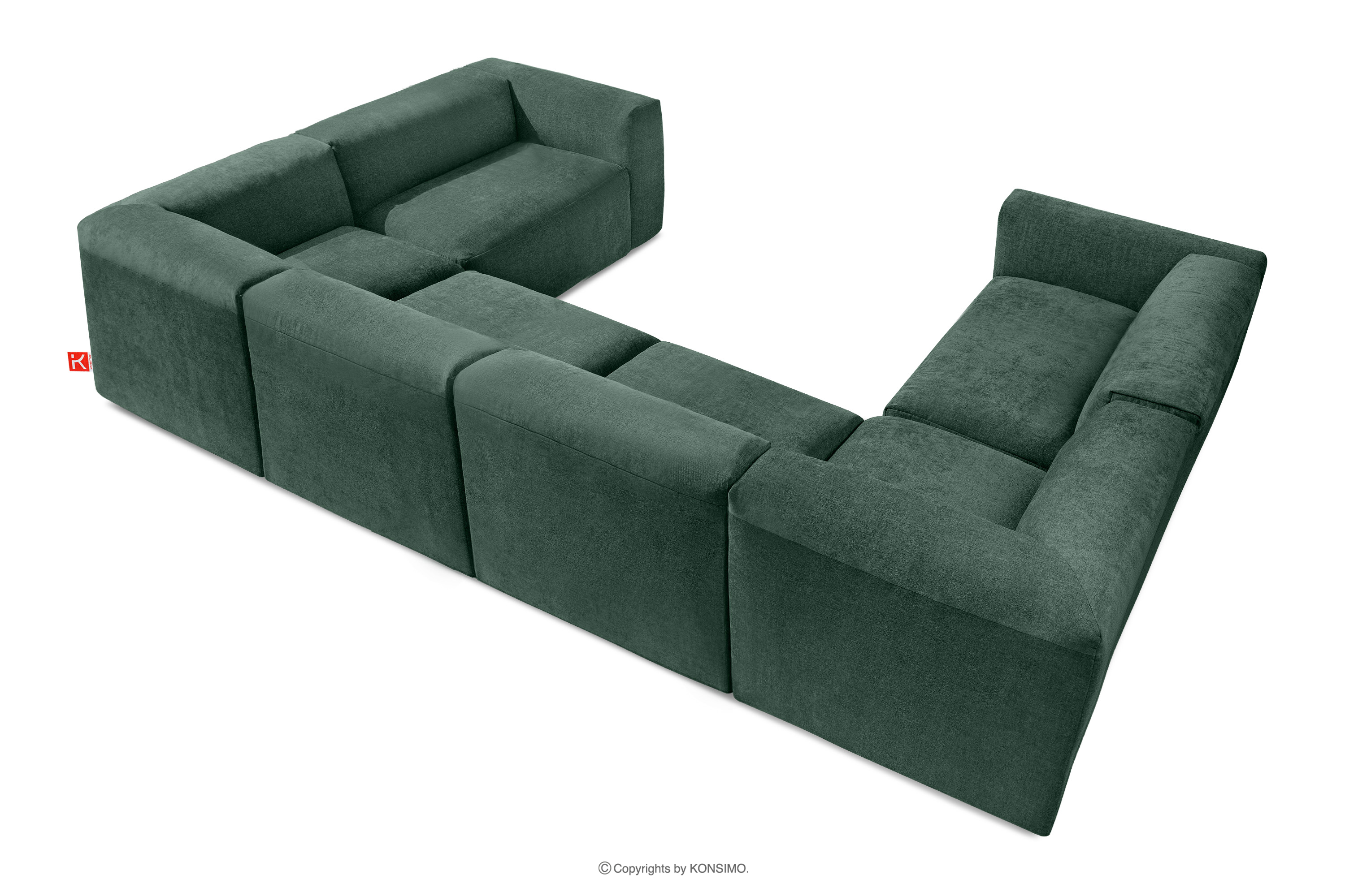 BUFFO Objav celú kolekciu Veľká rohová modulová pohovka „U“ v tkanej látke- farba morský