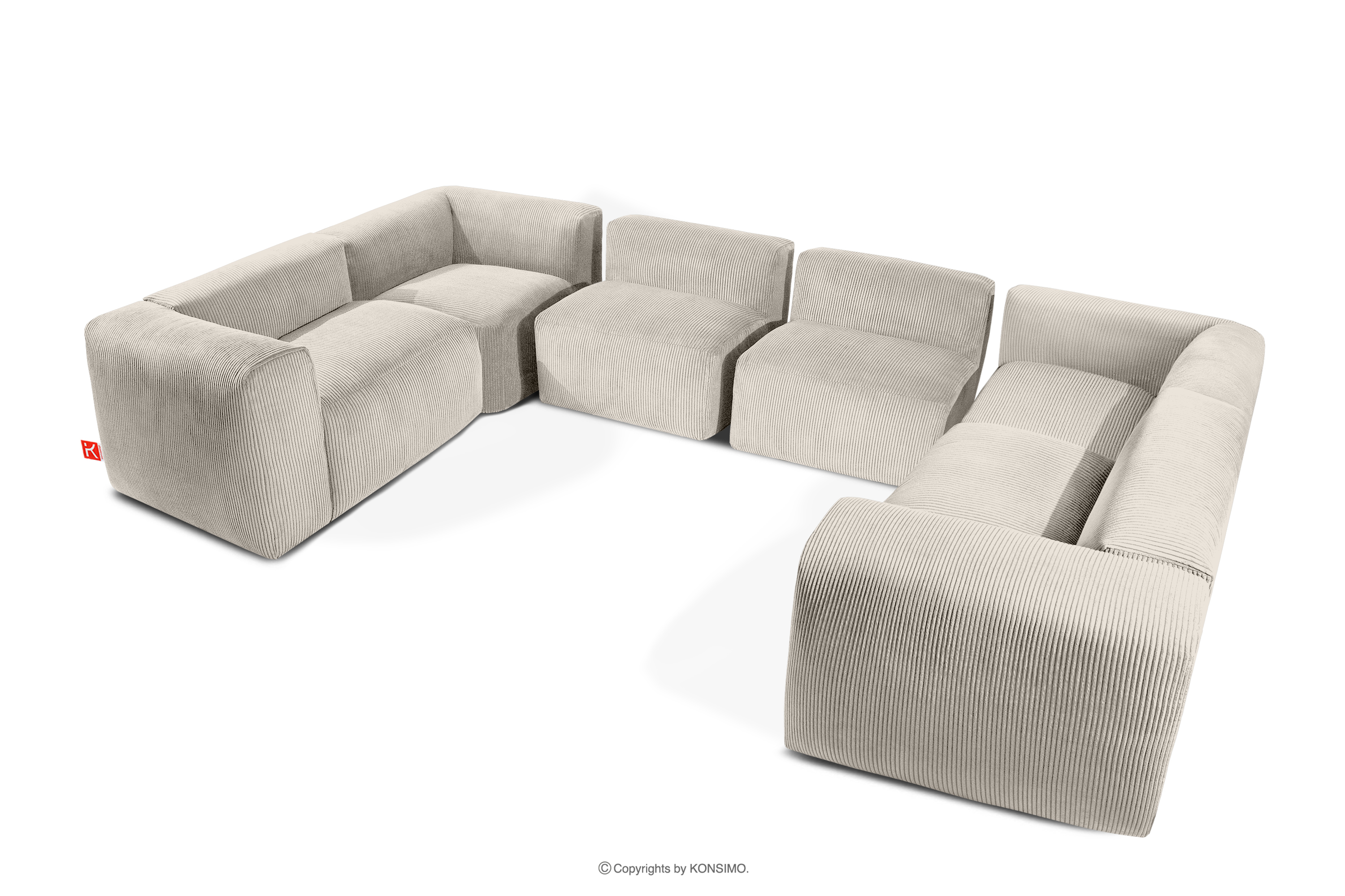 BUFFO Veľká rohová sedacia súprava modulárna „U“ v manšestrovej látke krémovej farby