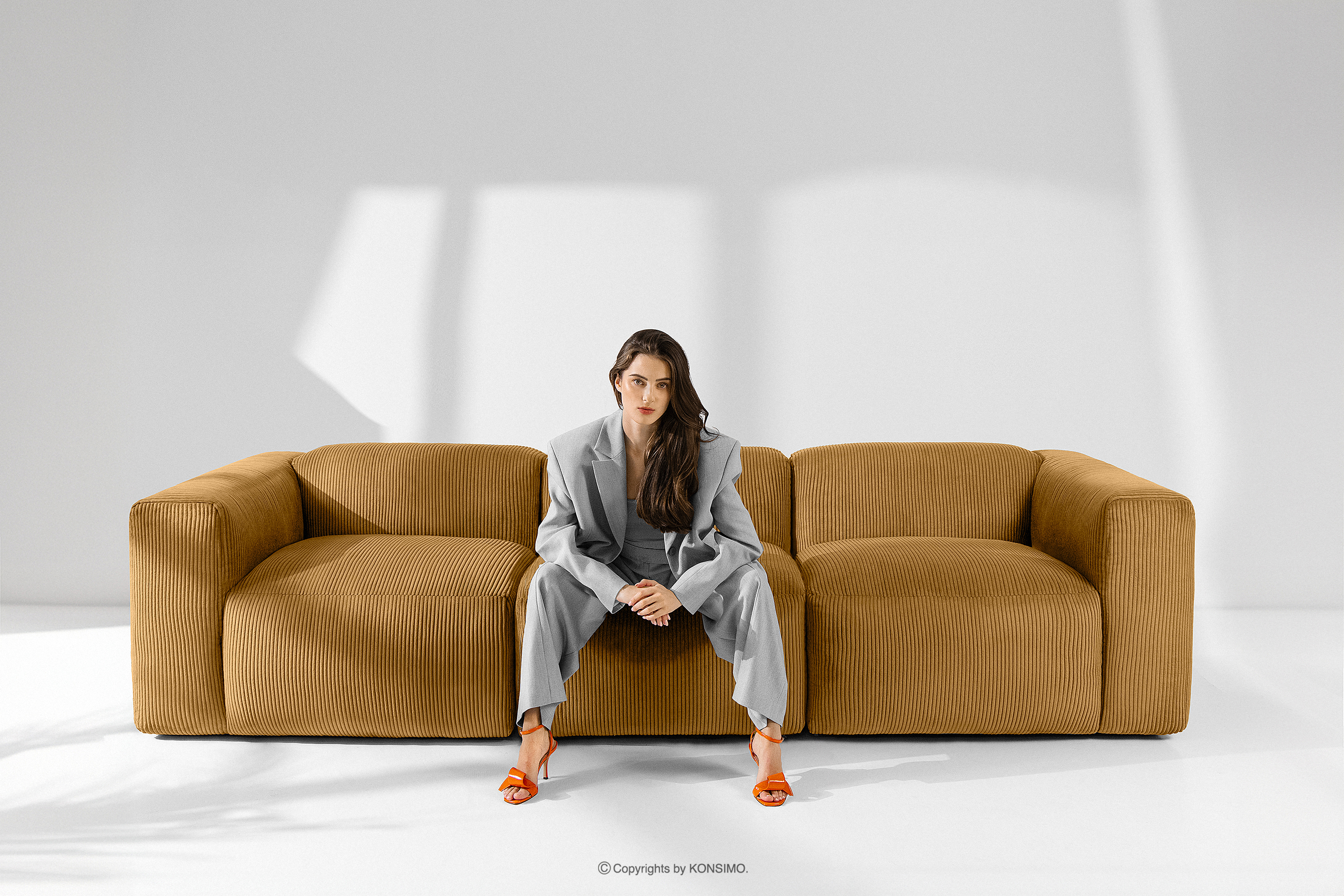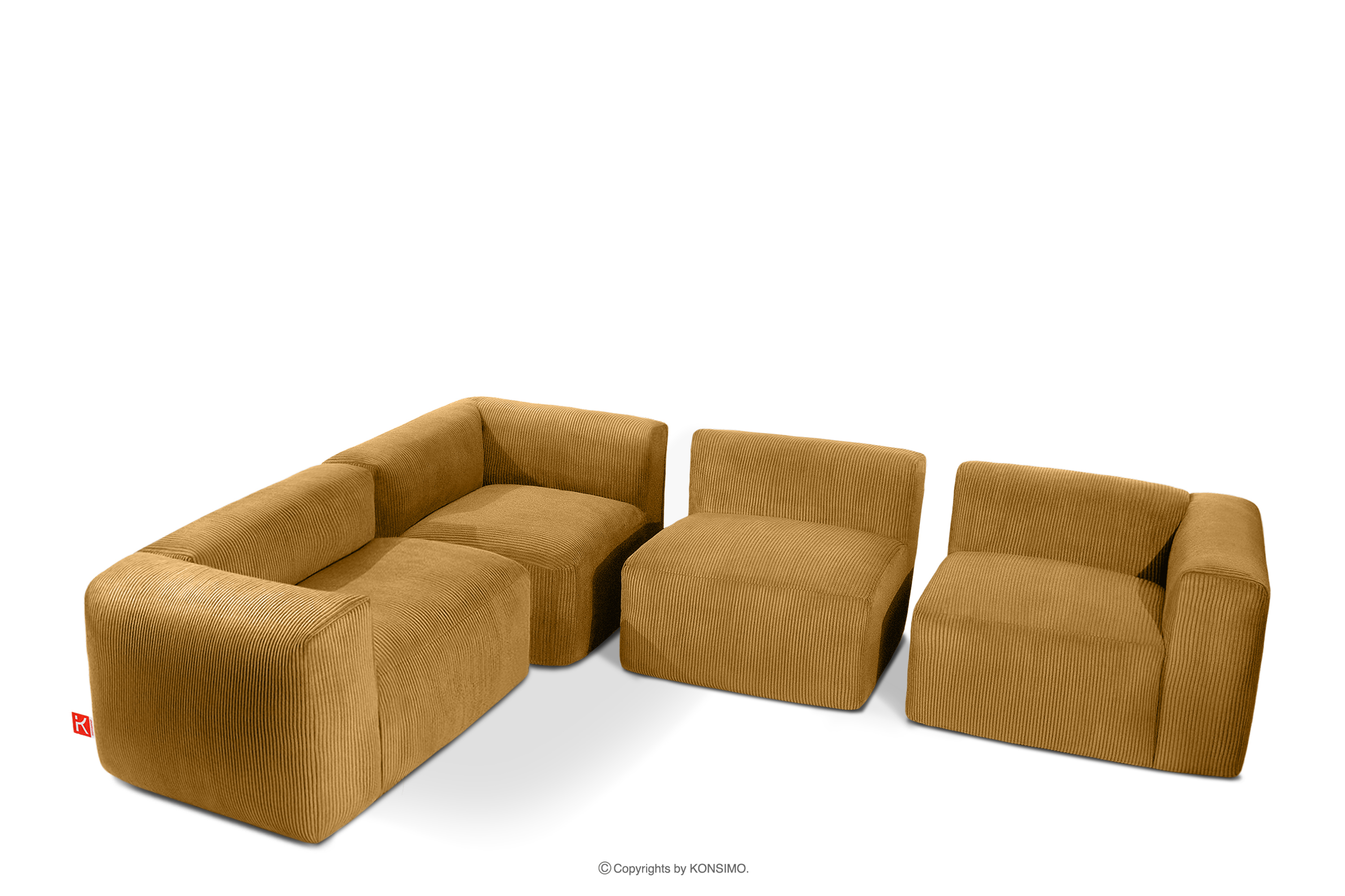 BUFFO Objav celú kolekciu Pohodlná rohová sedačka modulárna manšestrová látka žltá ľavá- farba žltá