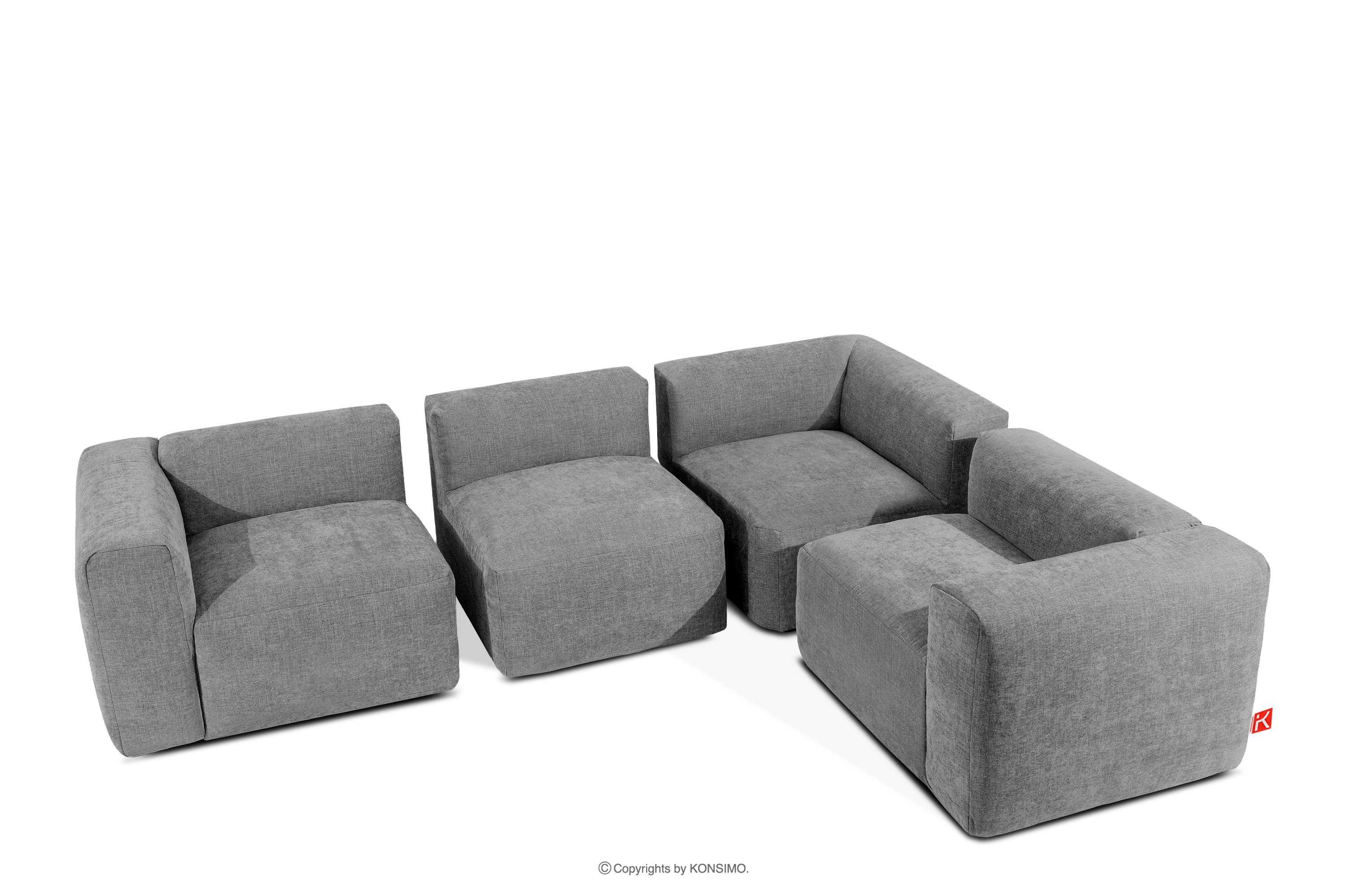 BUFFO Objav celú kolekciu Pohodlná sedacia súprava rohová modulová tkaná látka svetlá popolavá sivá pravá- farba svetlo popolavá
