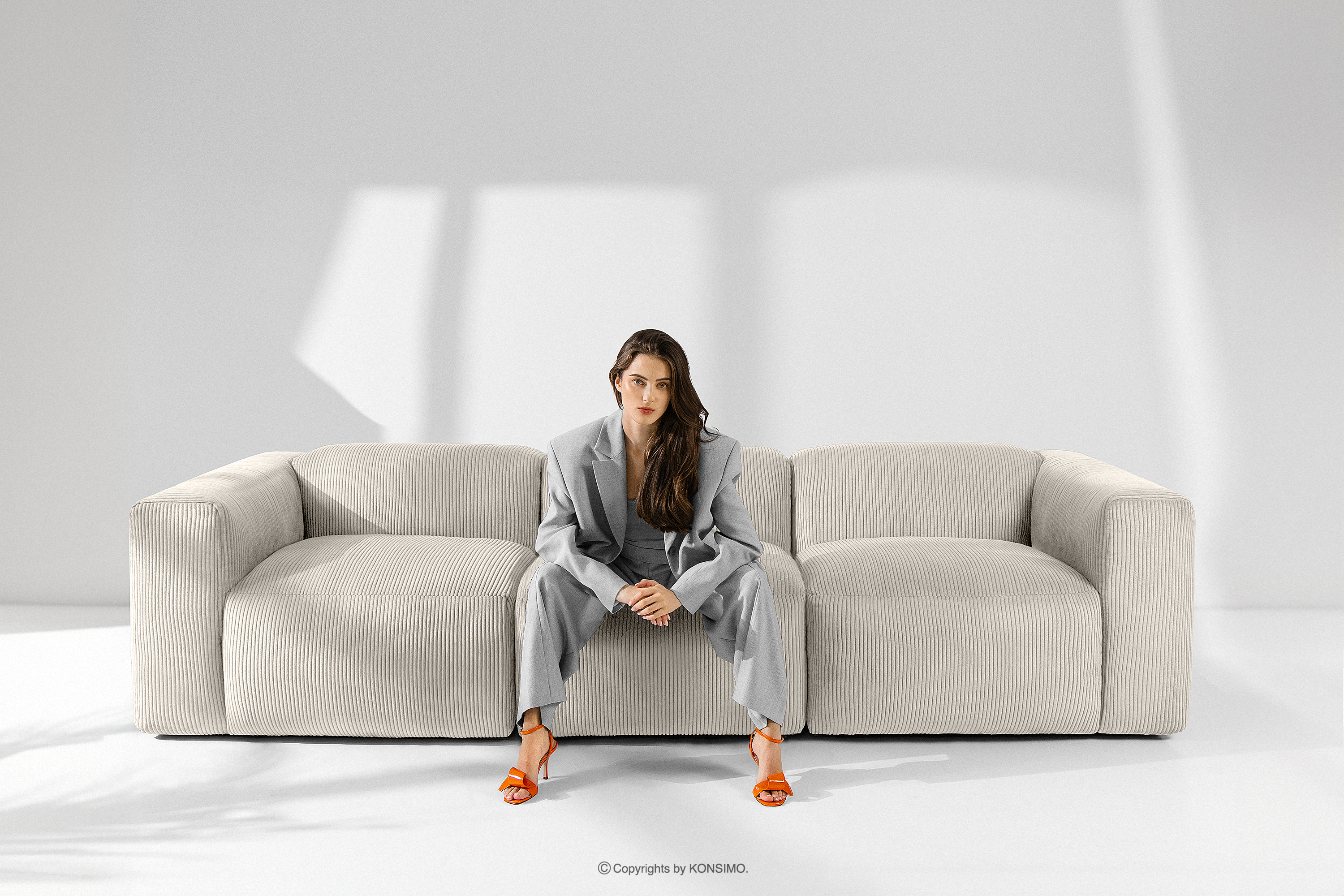 BUFFO Objav celú kolekciu Pohodlná rohová sedačka modulárna manšestrová látka krémová pravá- farba krémová