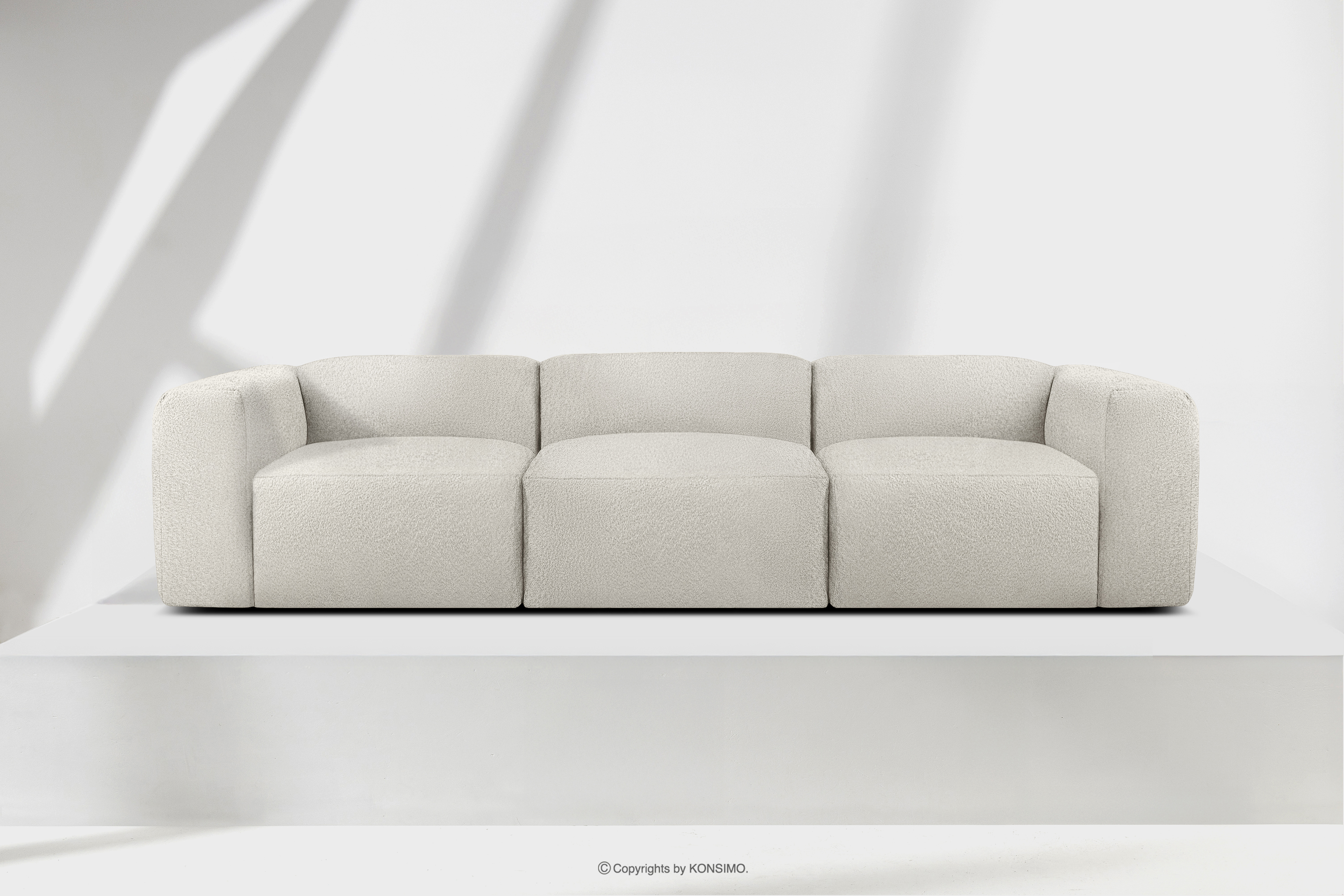 BUFFO Objav celú kolekciu Mäkká trojmiestna pohovka z bielej bouclé látky- farba bílá