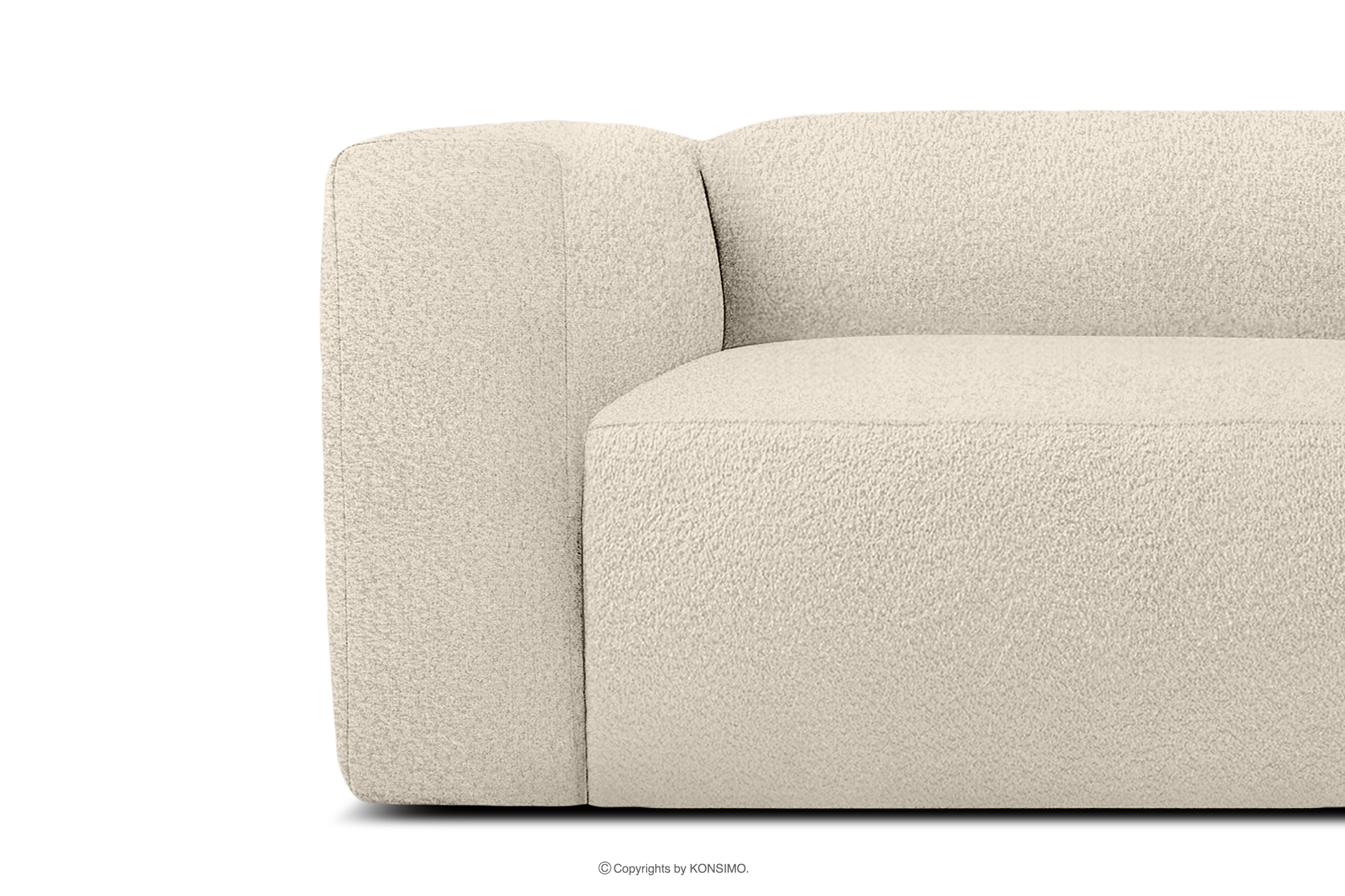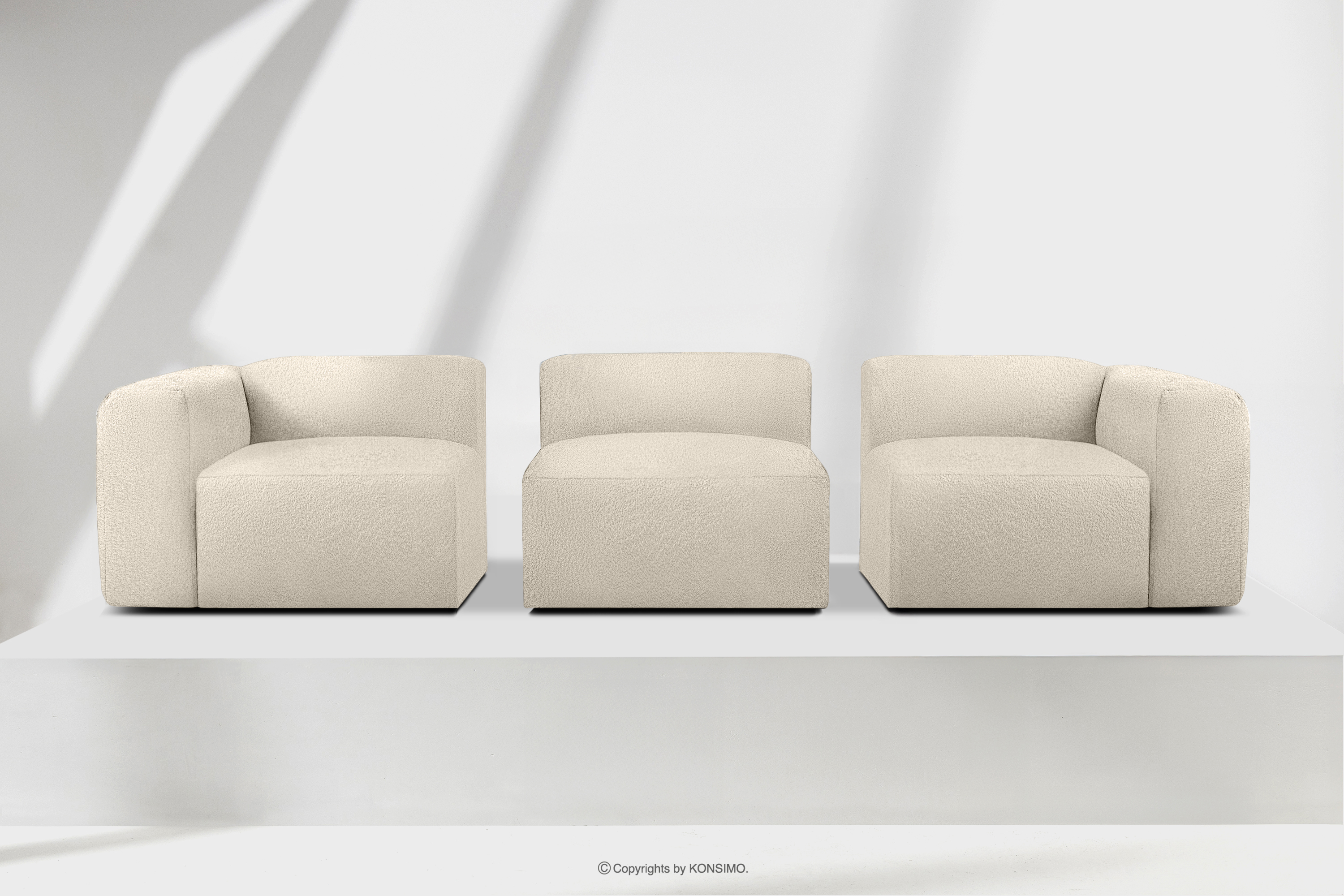 BUFFO Objav celú kolekciu Mäkká trojmiestna pohovka zo svetlo béžovej bouclé látky- farba světle béžová