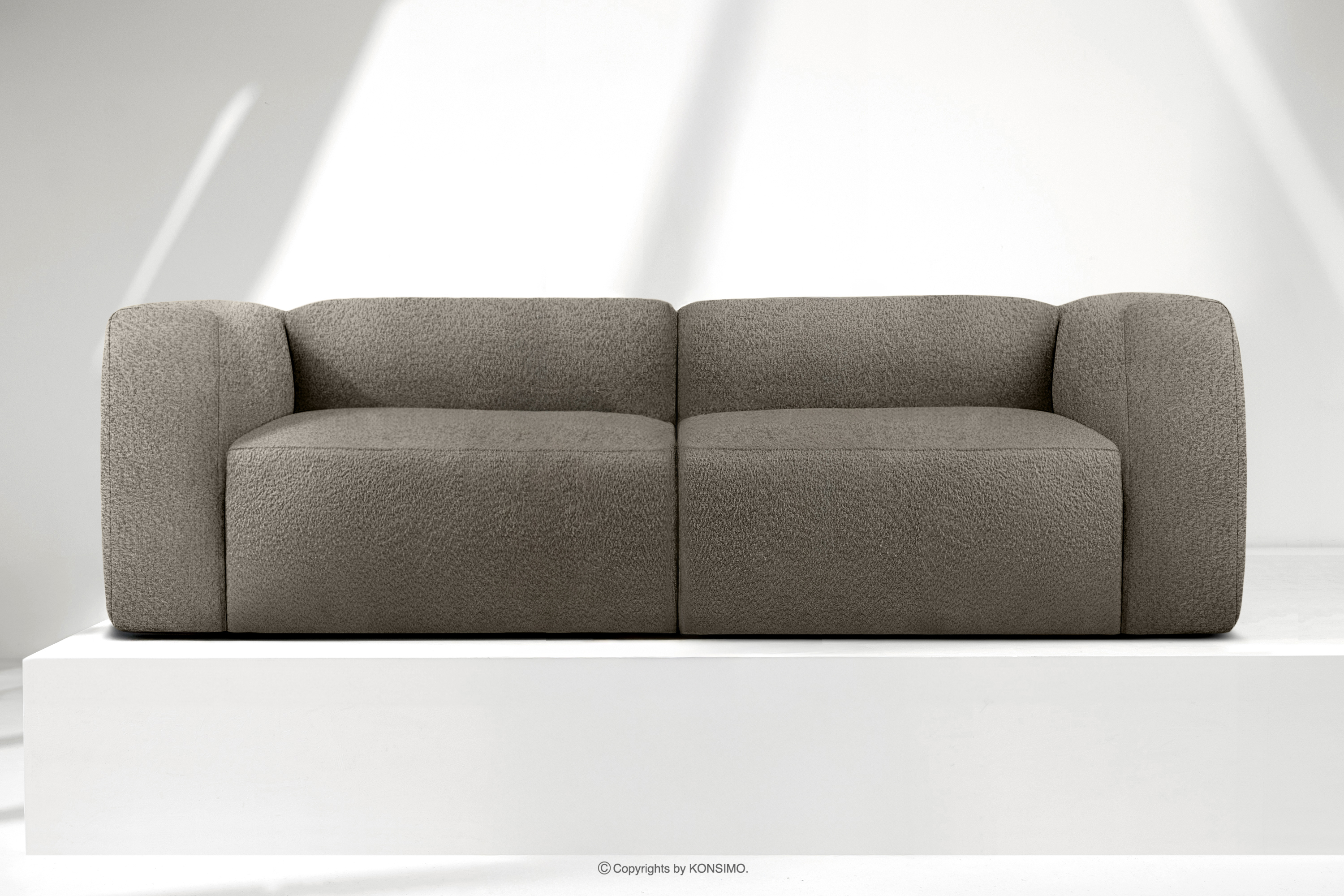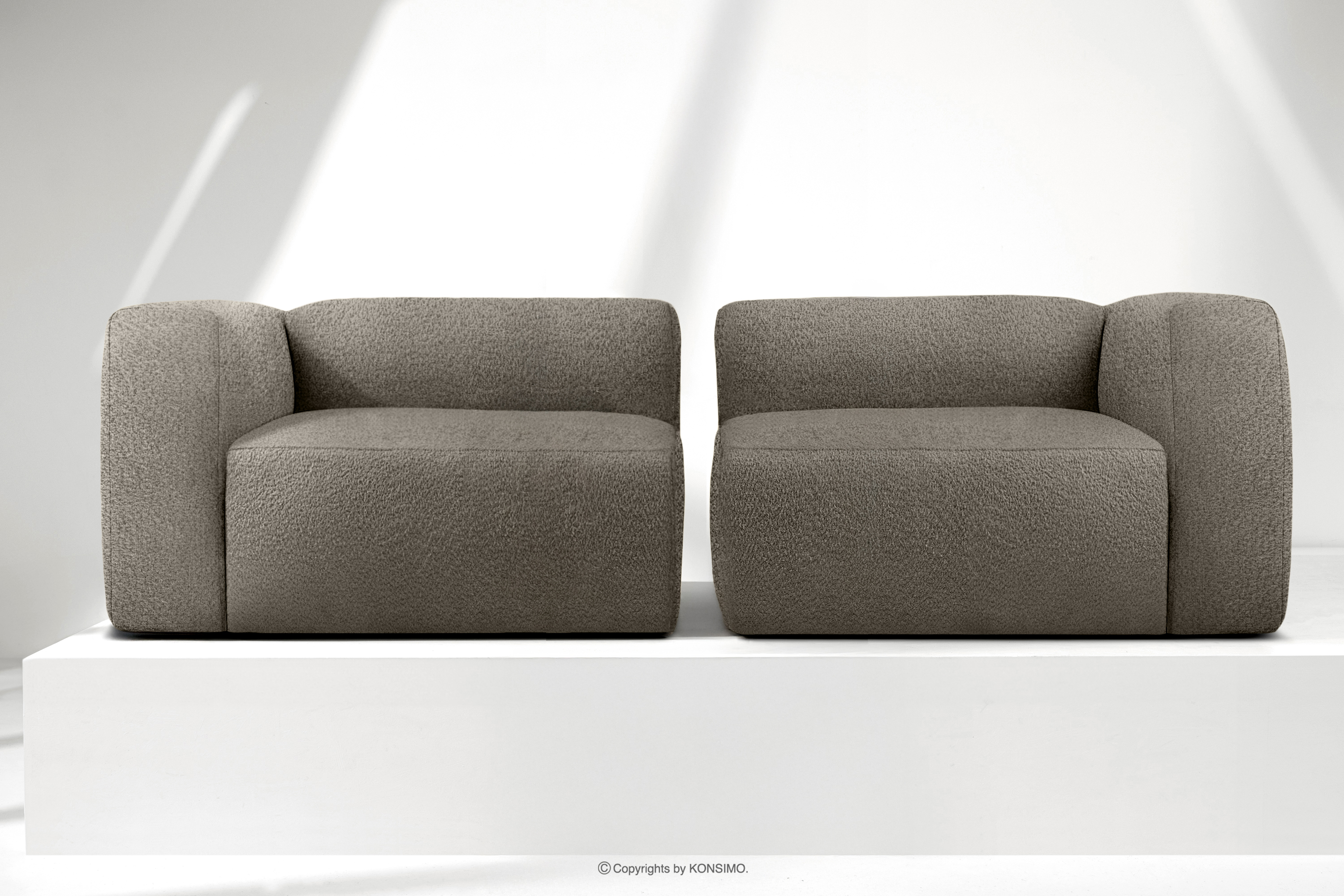 BUFFO Objav celú kolekciu Mäkká 25-miestna pohovka z chladnej hnedej bouclé tkaniny- farba studená hnědá