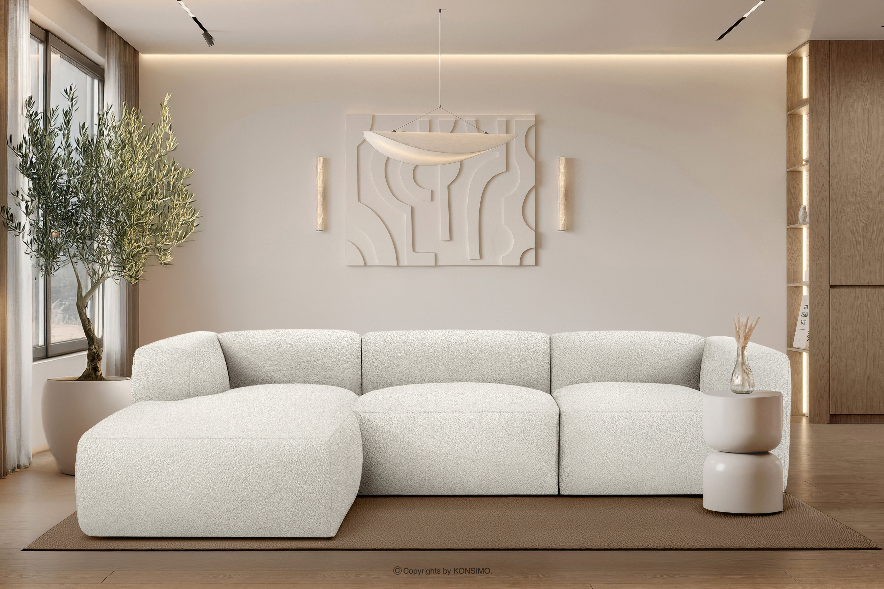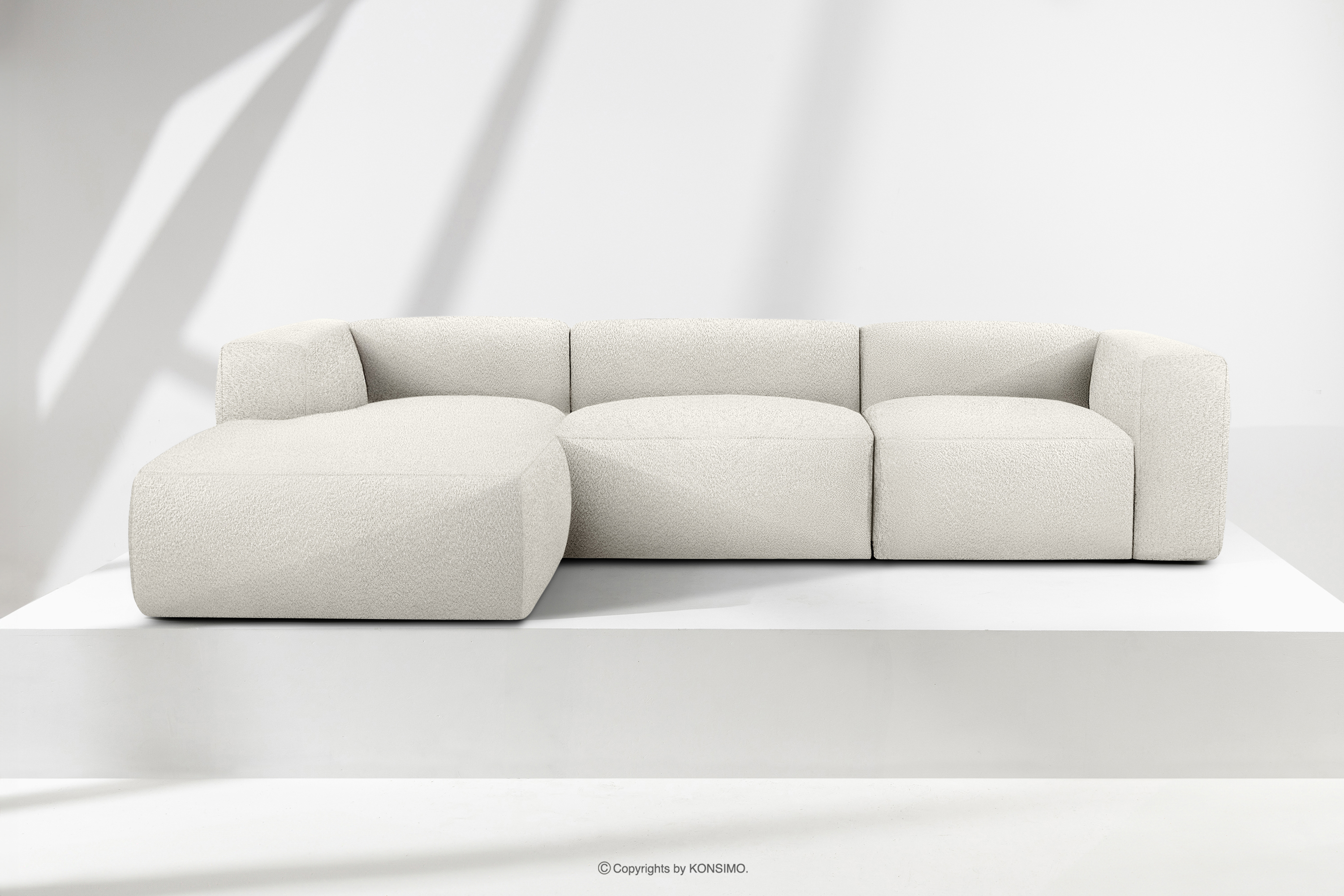 BUFFO Objav celú kolekciu Veľká mäkká rohová pohovka z bouclé tkaniny ľavá strana biela- farba bílá