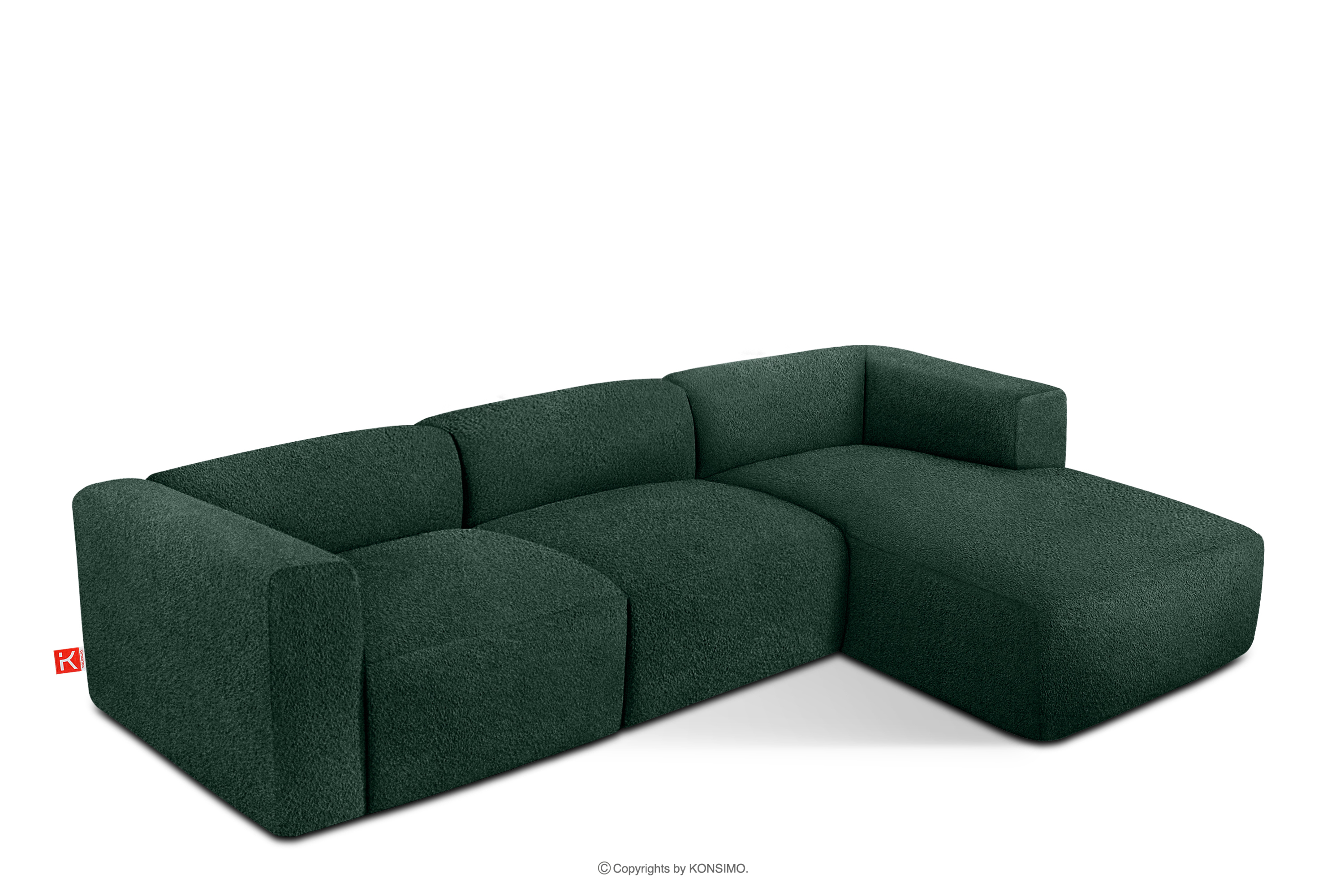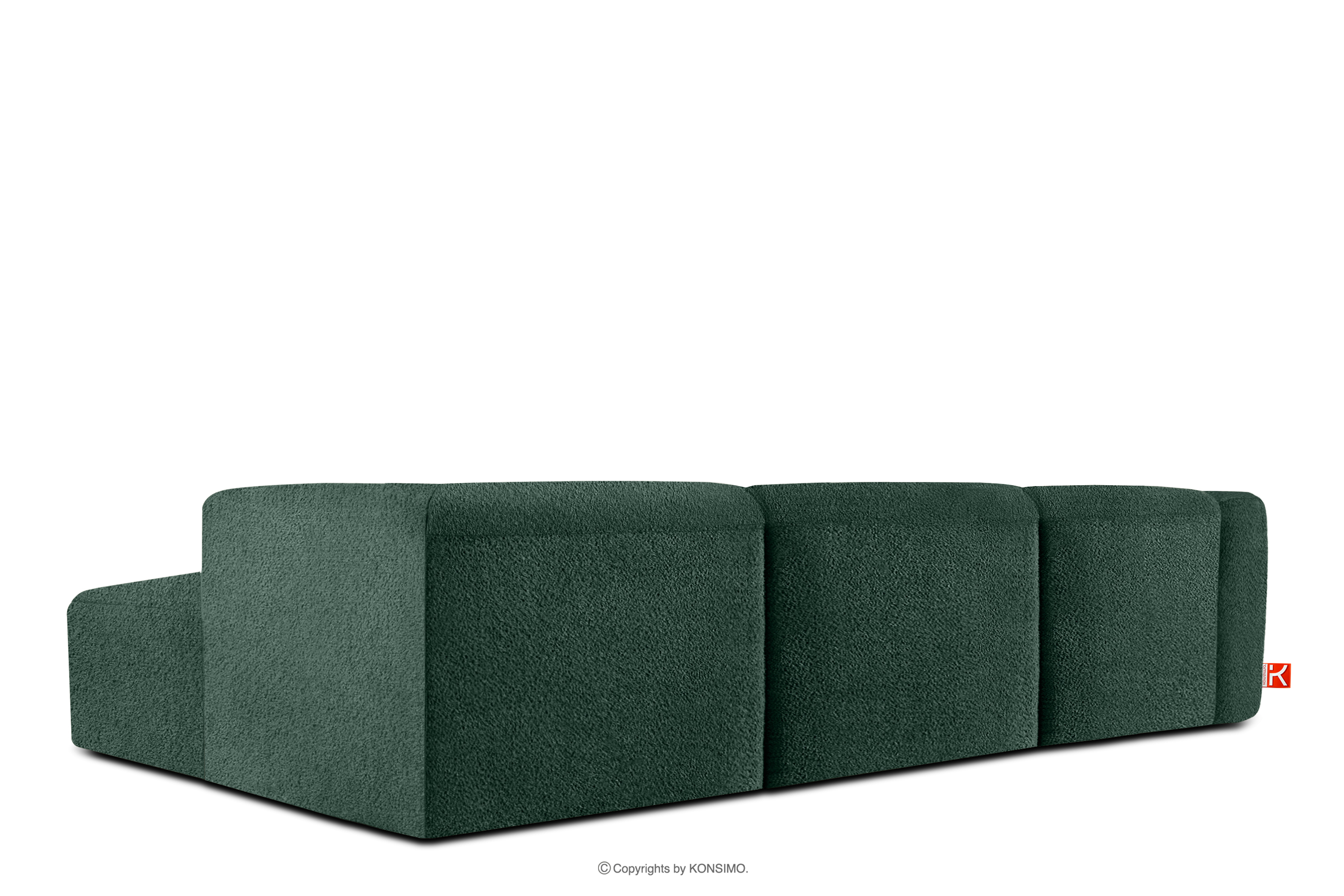 produktu Veľká mäkká rohová pohovka z bouclé tkaniny pravá tmavozelená