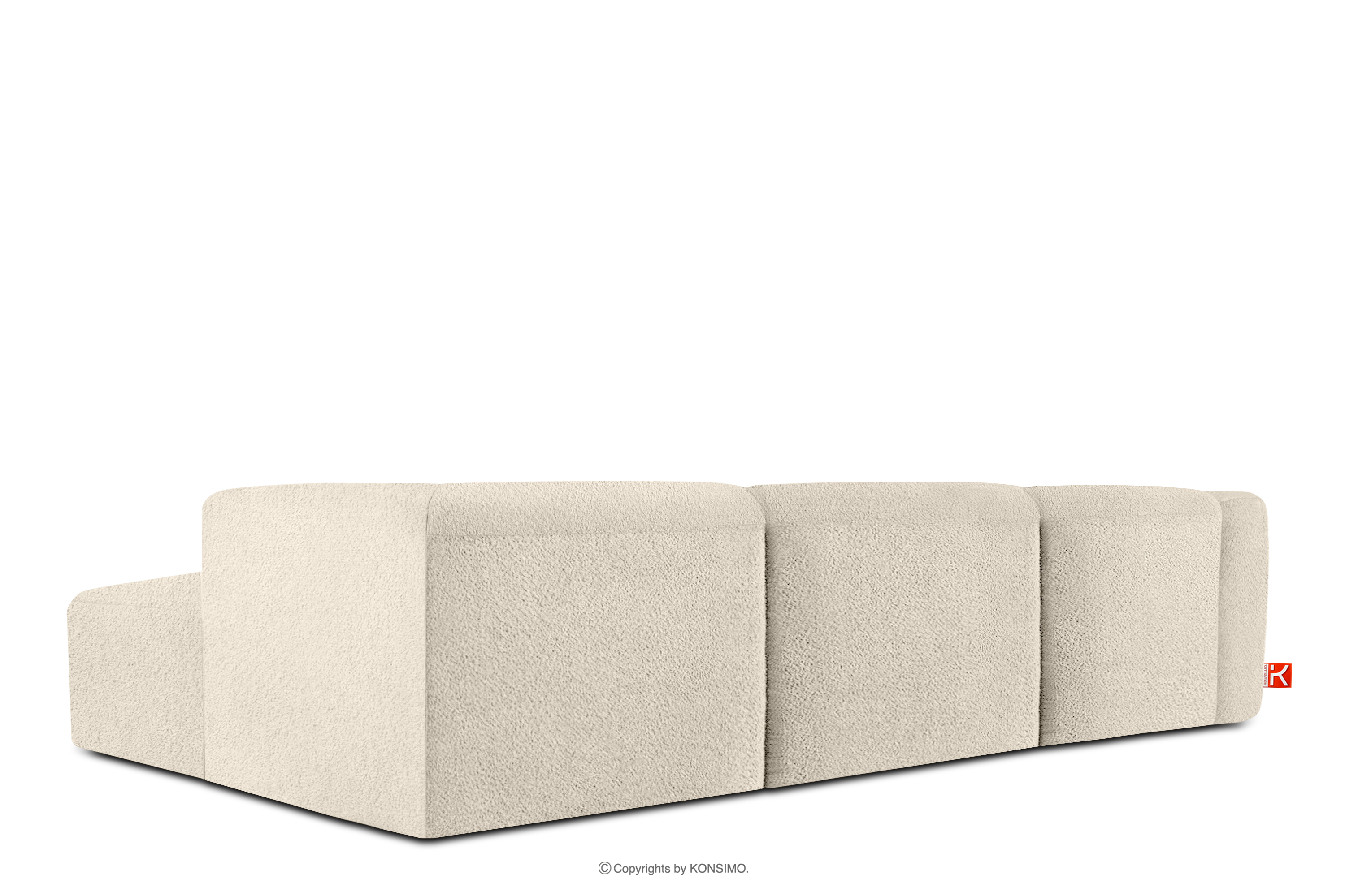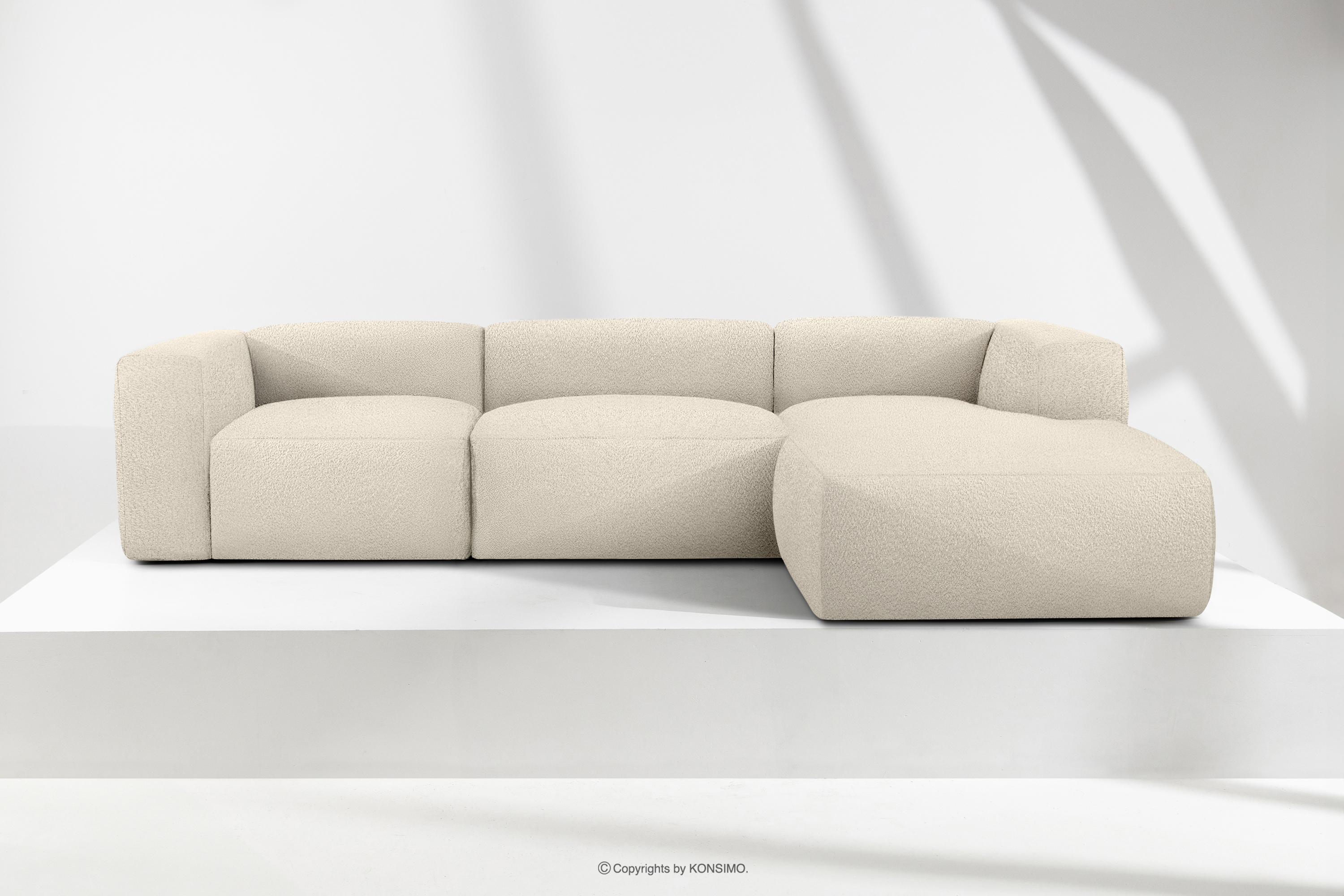 BUFFO Objav celú kolekciu Veľká mäkká rohová pohovka z bouclé tkaniny pravá svetlo béžová- farba světle béžová