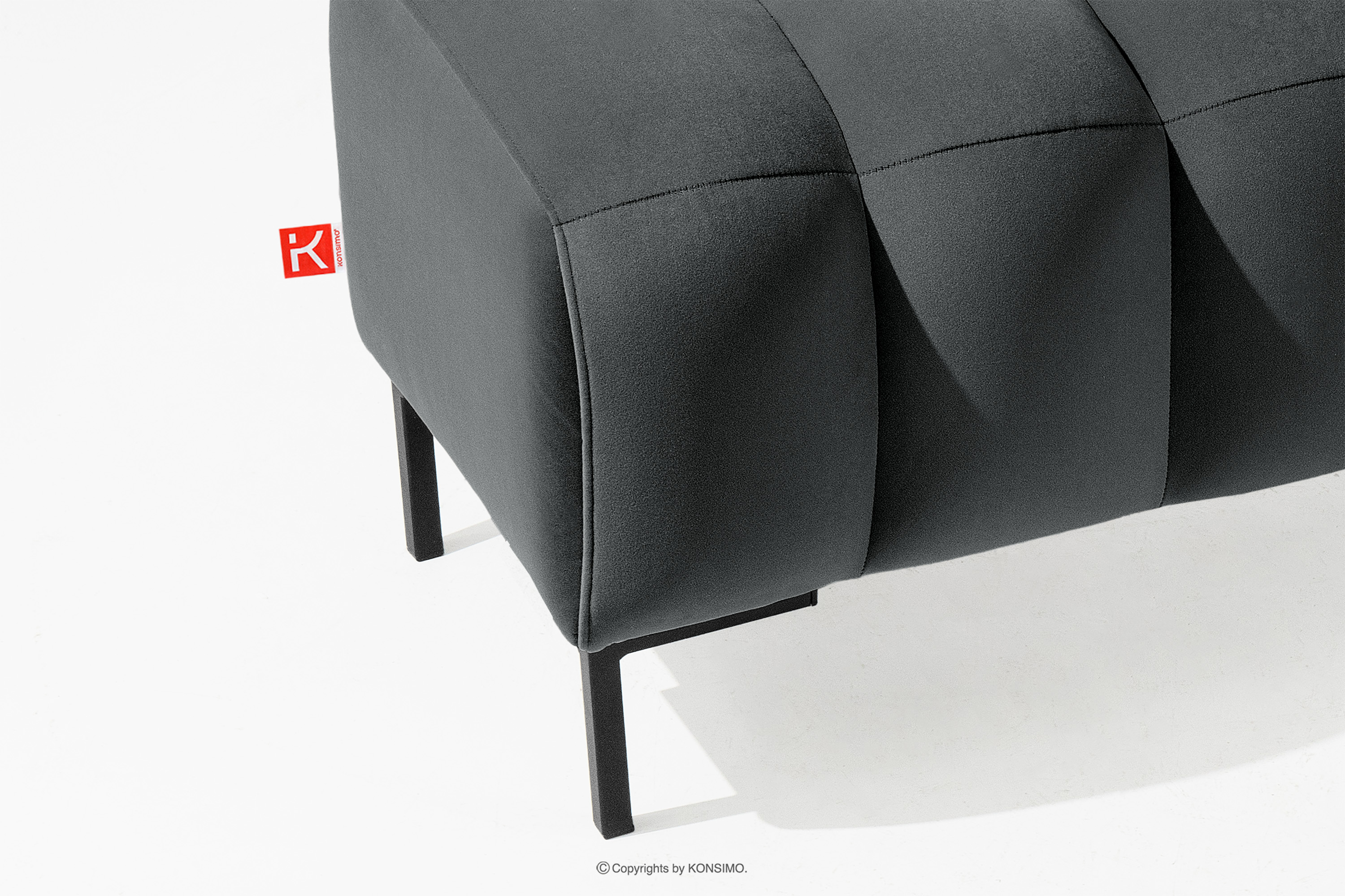 Elegantný tmavosivý puf na vysokých nožičkách spája funkčnosť s estetikou. Vysoké nohy dodávajú celej kompozícii eleganciu a ľahkosť a vytvárajú výrazný kontrast s mäkkým sedadlom. Precízne prešívanie je ďalším prvkom, ktorý dodáva tomuto kusu nábytku jedinečný charakter. Starostlivé detaily a pozornosť venovaná každému švu robia z pufu nielen praktický kus nábytku, ale aj dizajnový kúsok.