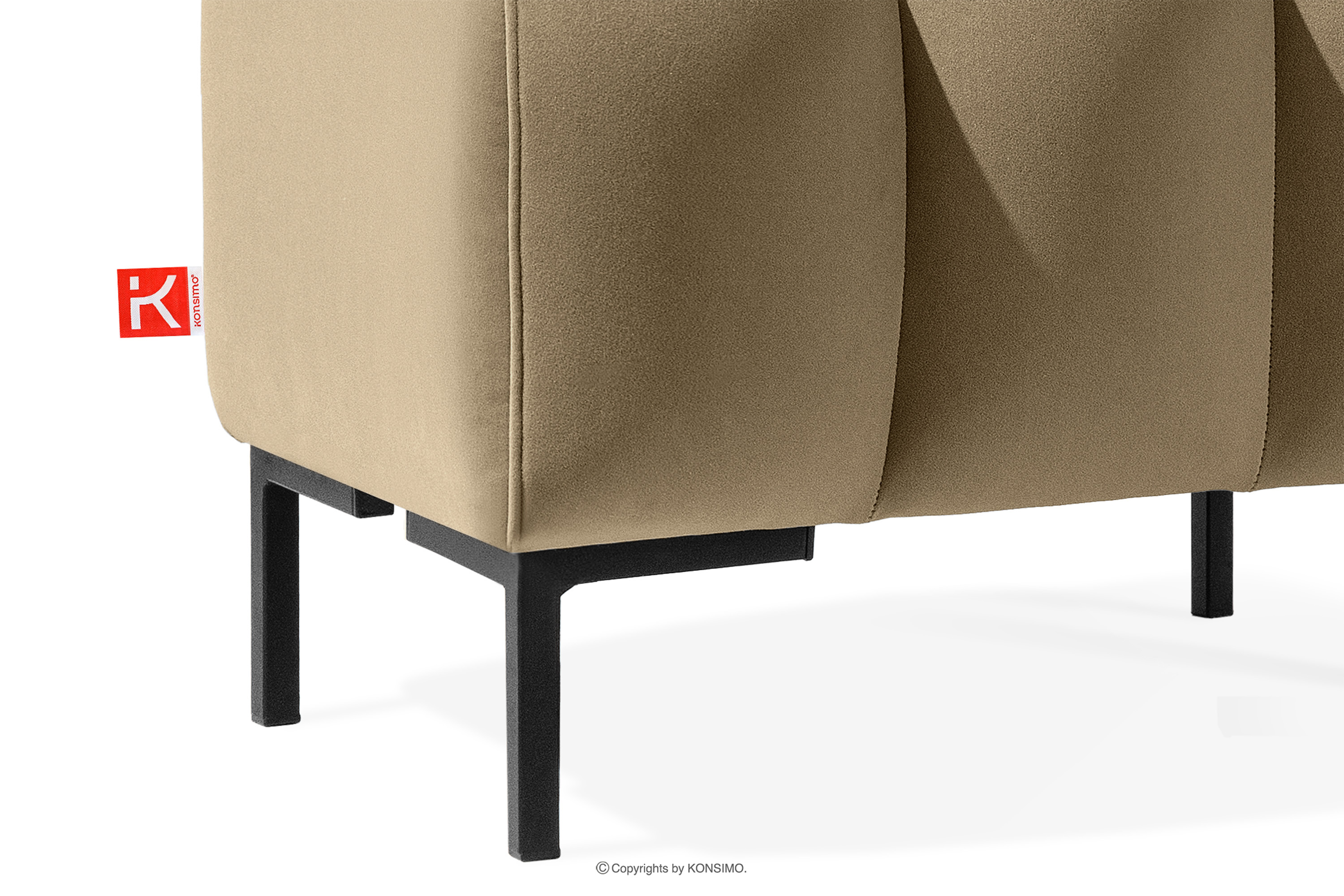 Elegantný béžový puf na vysokých nožičkách spája funkčnosť s estetikou. Vysoké nohy dodávajú celej kompozícii eleganciu a ľahkosť a vytvárajú výrazný kontrast s mäkkým sedadlom. Precízne prešívanie je ďalším prvkom, ktorý dodáva tomuto kusu nábytku jedinečný charakter. Starostlivé detaily a pozornosť venovaná každému švu robia z pufu nielen praktický kus nábytku, ale aj dizajnový kúsok.