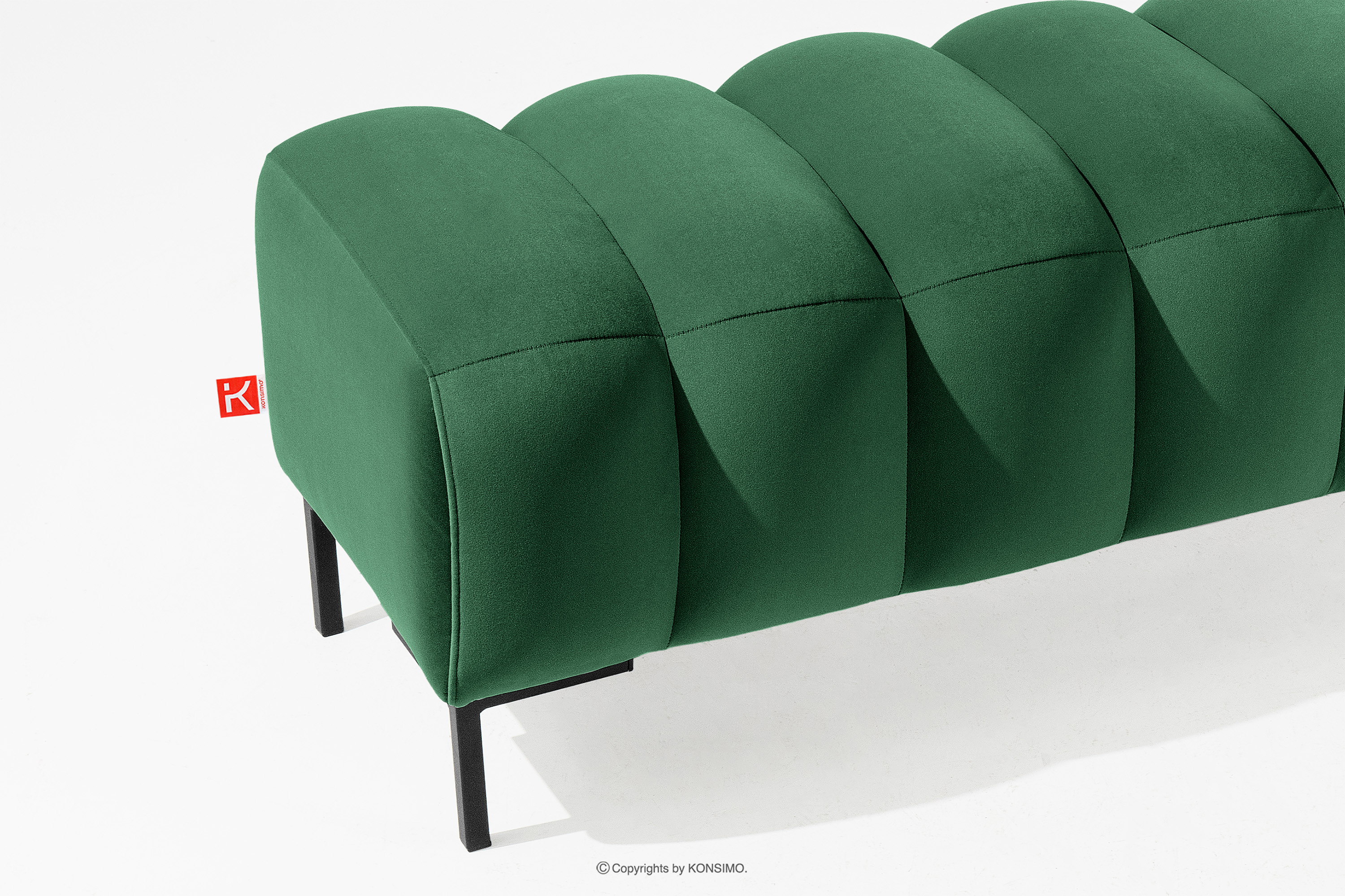 Puf široký 120 na vysokých tmavozelených nožičkách spája funkčnosť s estetikou. Vysoké nohy dodávajú celej kompozícii eleganciu a ľahkosť a vytvárajú výrazný kontrast s mäkkým sedákom. Precízne prešívanie je ďalším prvkom, ktorý dodáva tomuto kusu nábytku jedinečný charakter. Starostlivé detaily a pozornosť venovaná každému švu robia z pufu nielen praktický kus nábytku, ale aj dizajnový kúsok.