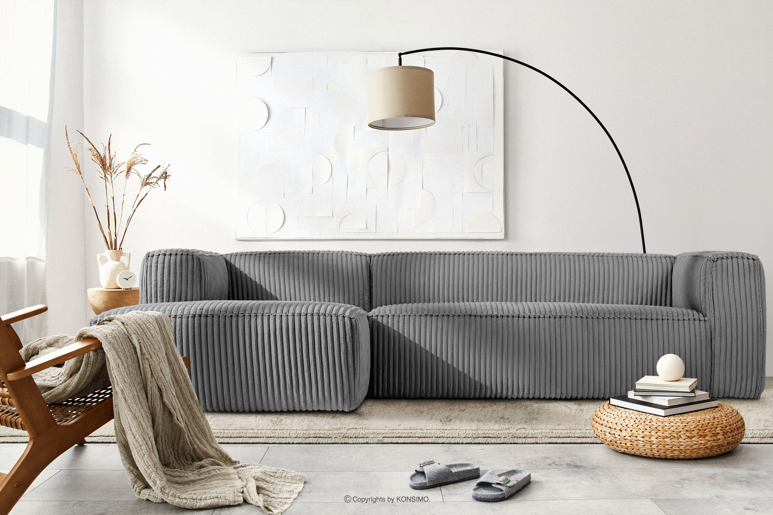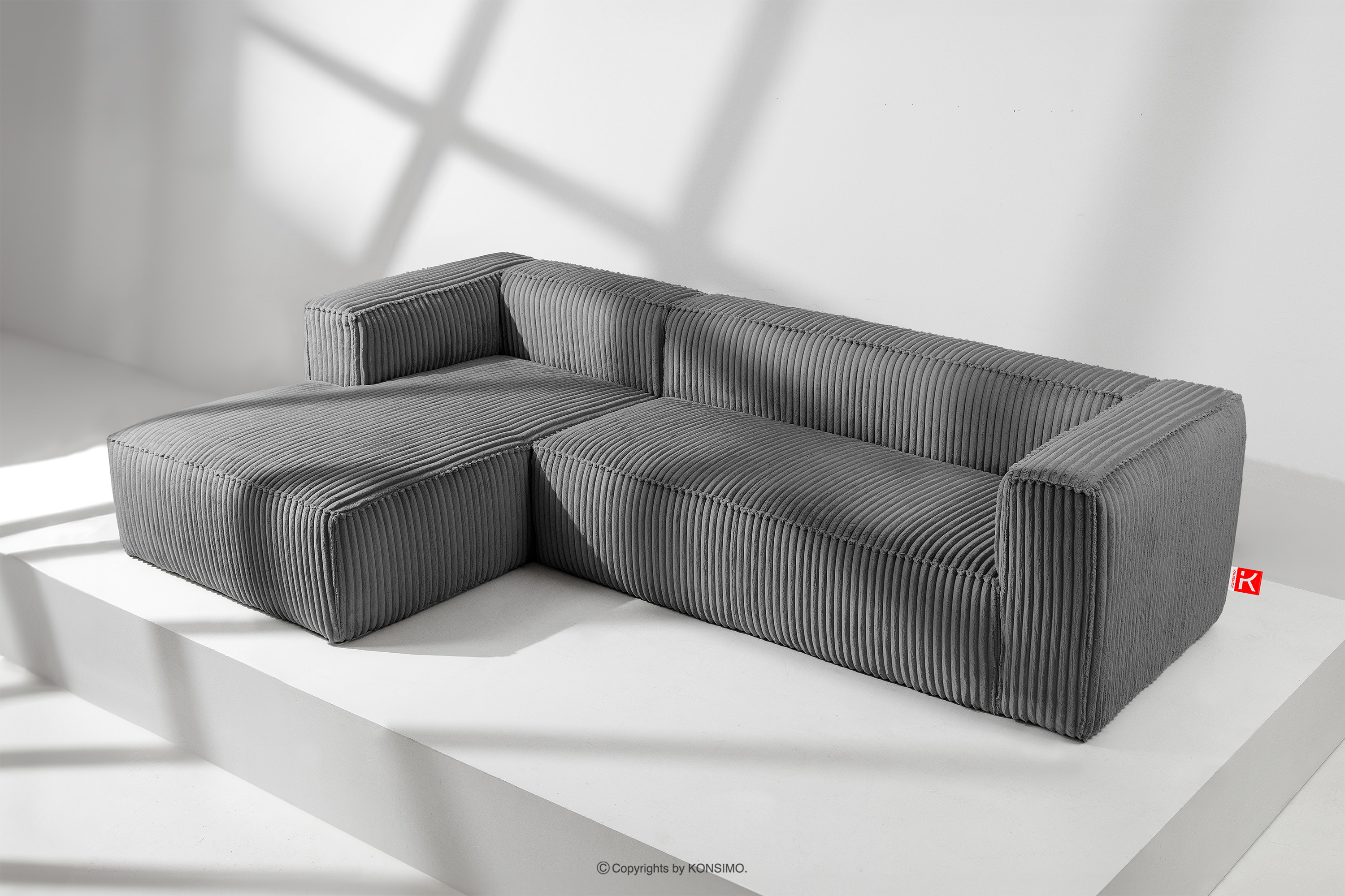 Veľká tmavosivá rohová sedacia súprava z manšestrovej látky left s pevnou konštrukciou a výnimočným dizajnom. Rám tohto elegantného kusu nábytku bol vyrobený z kombinácie borovicového a bukového dreva, čo zaručuje nielen estetický vzhľad, ale aj odolnosť na dlhé roky. Interiér podporuje pevná konštrukcia na báze drevotrieskových a drevovláknitých dosiek, ktorá zaručuje stabilitu a komfort pri používaní.