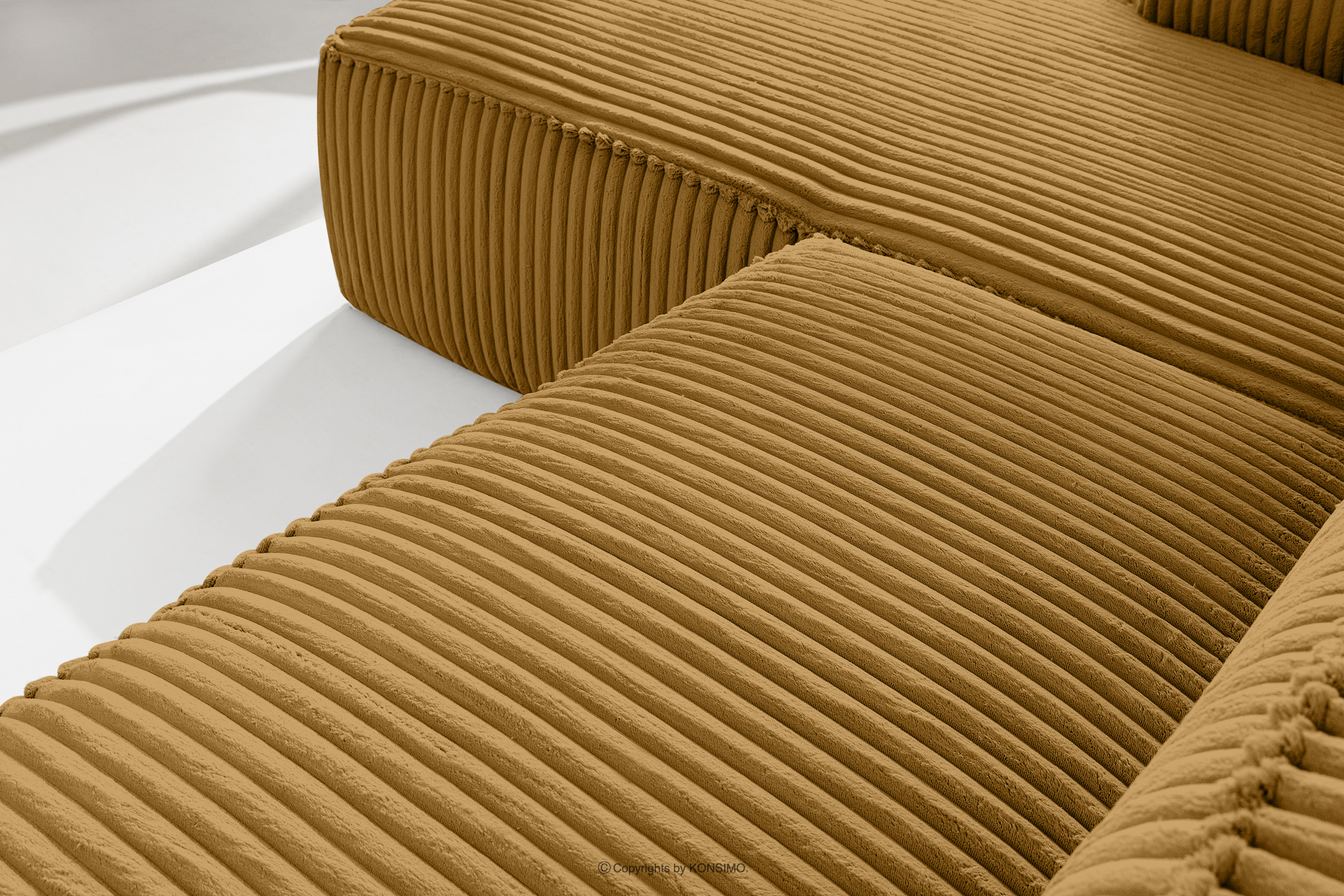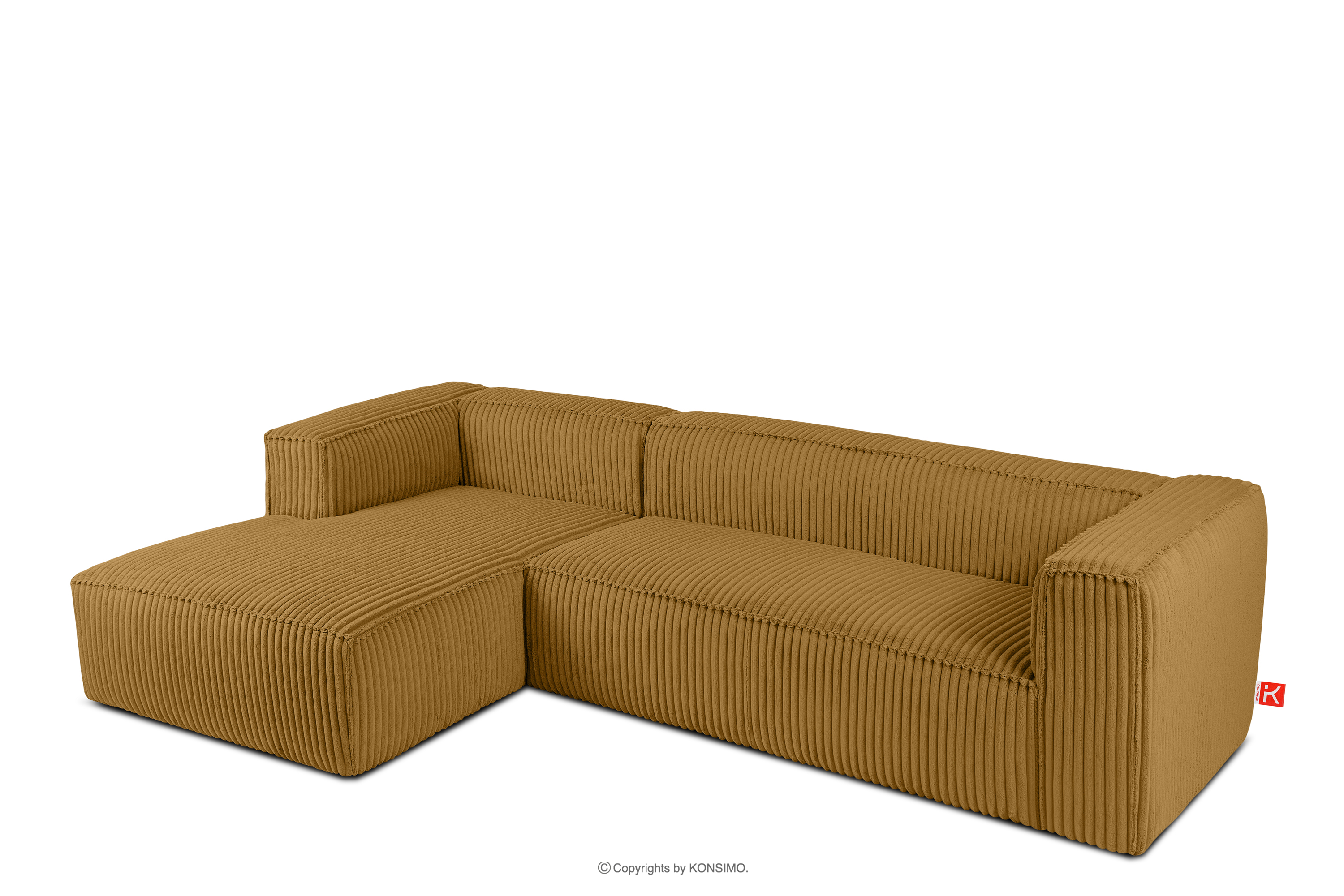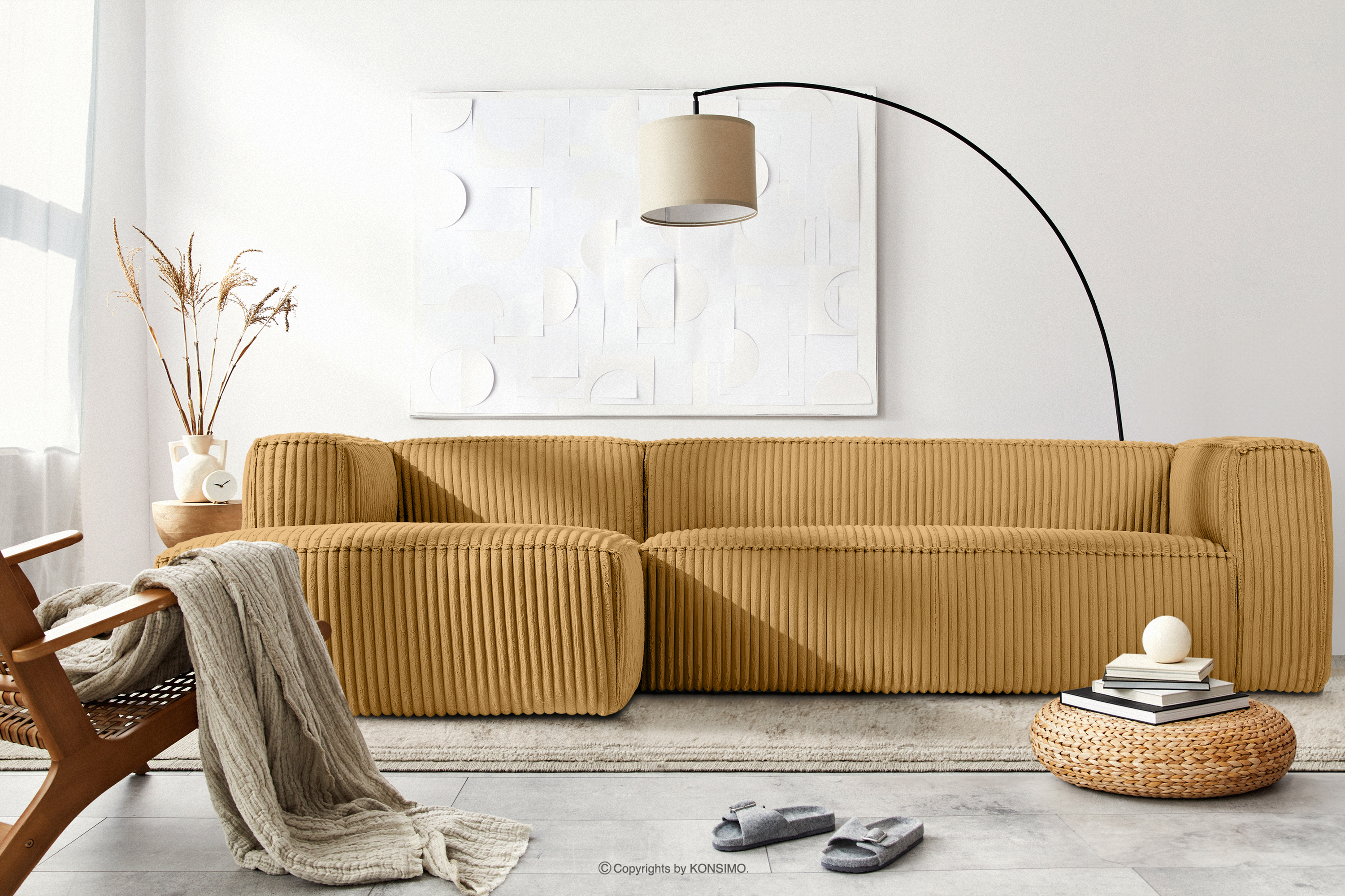FEROX Objav celú kolekciu Veľká žltá rohová sedačka z manšestrovej látky vľavo- farba žltá