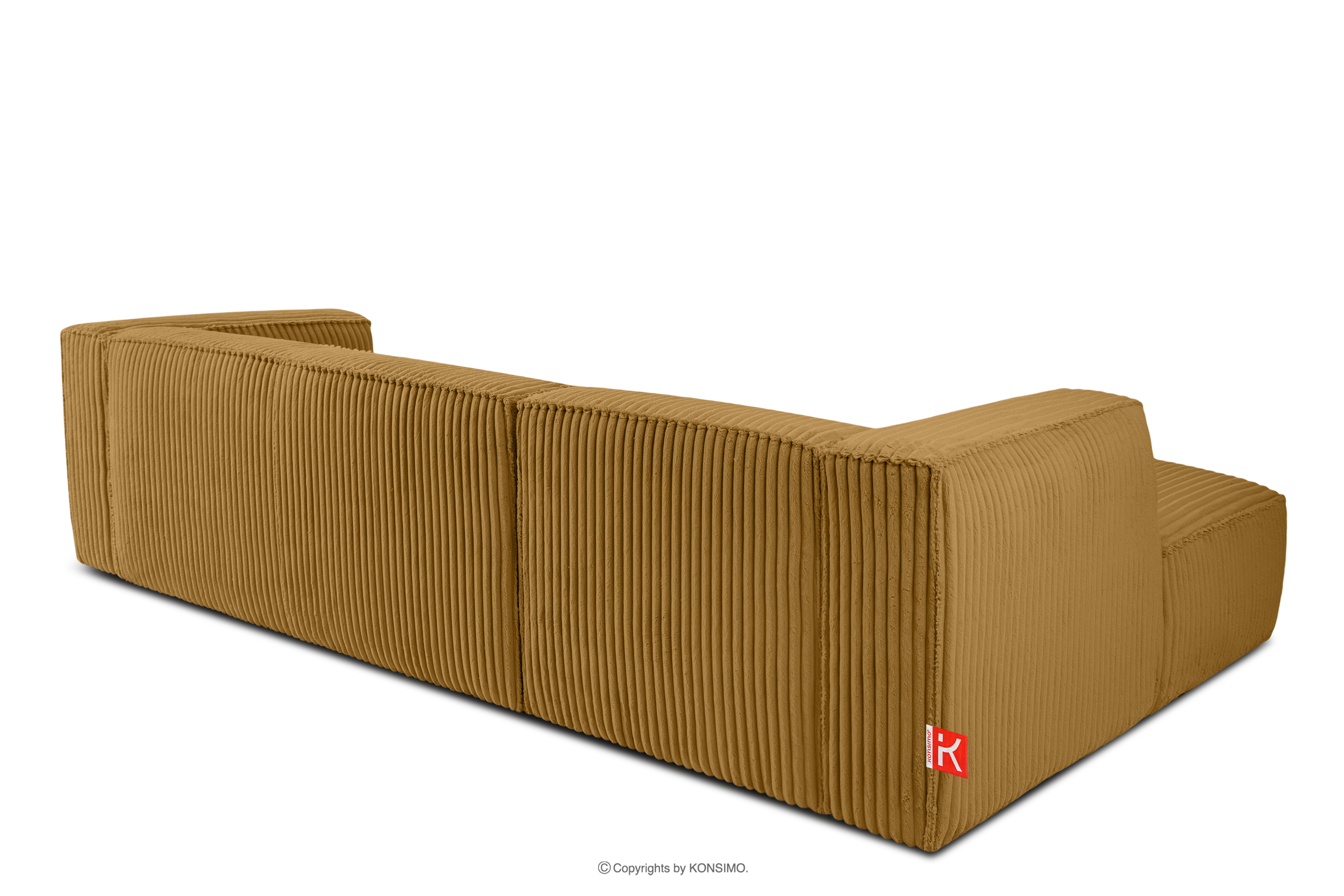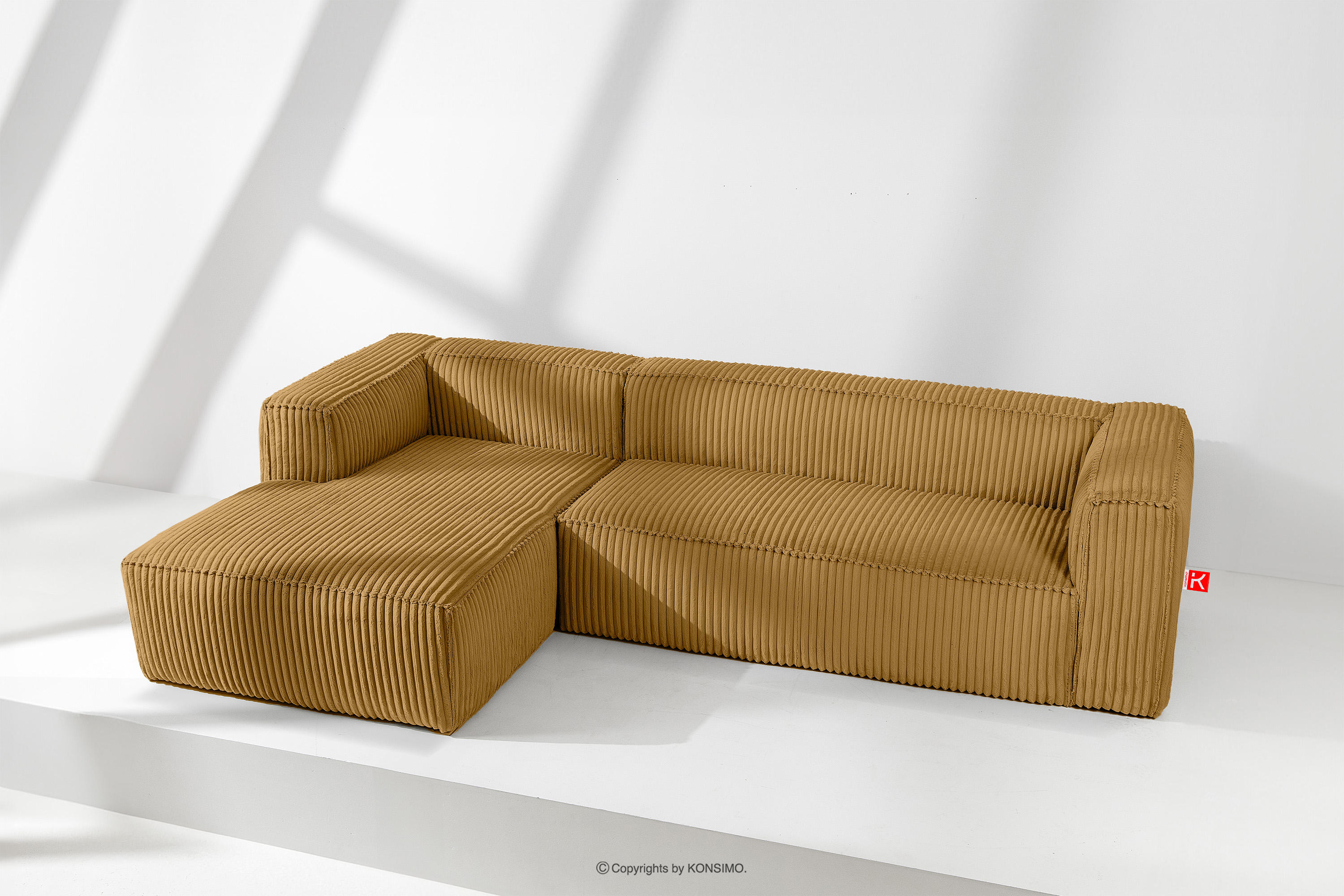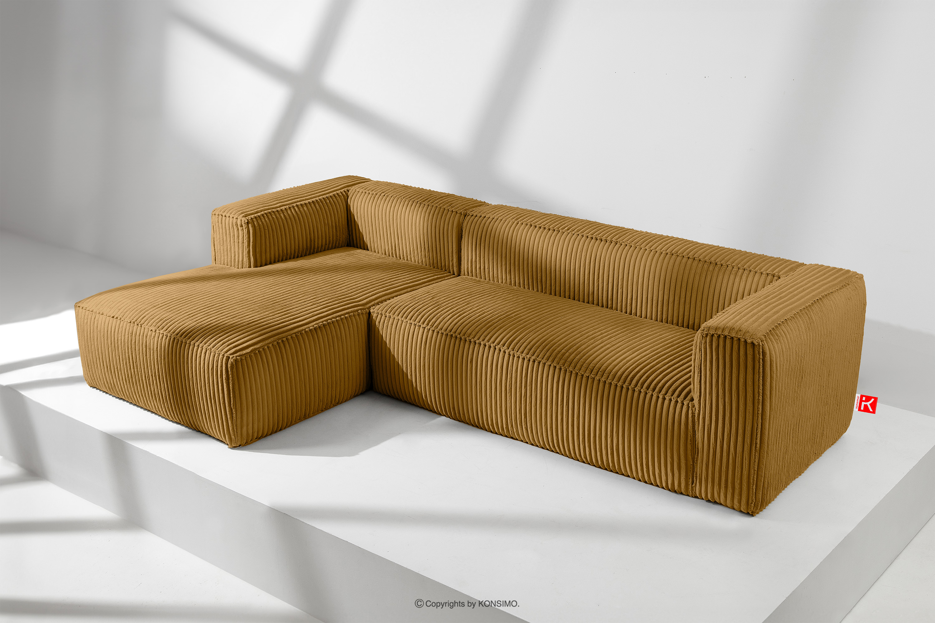 FEROX Objav celú kolekciu Veľká žltá rohová sedačka z manšestrovej látky vľavo- farba žltá