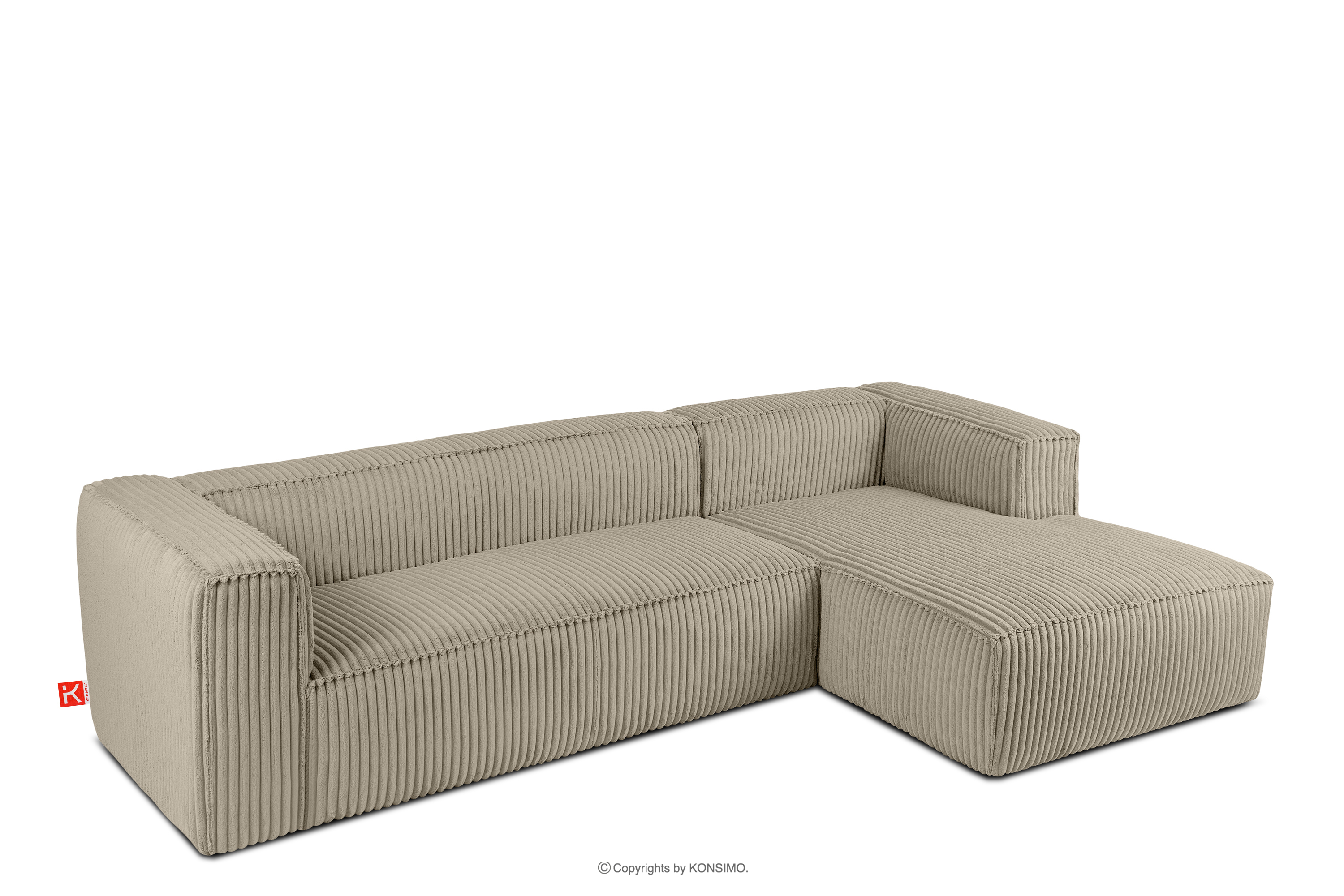 FEROX Objav celú kolekciu Veľká béžová rohová pohovka s manšestrovou látkou vpravo- farba béžová