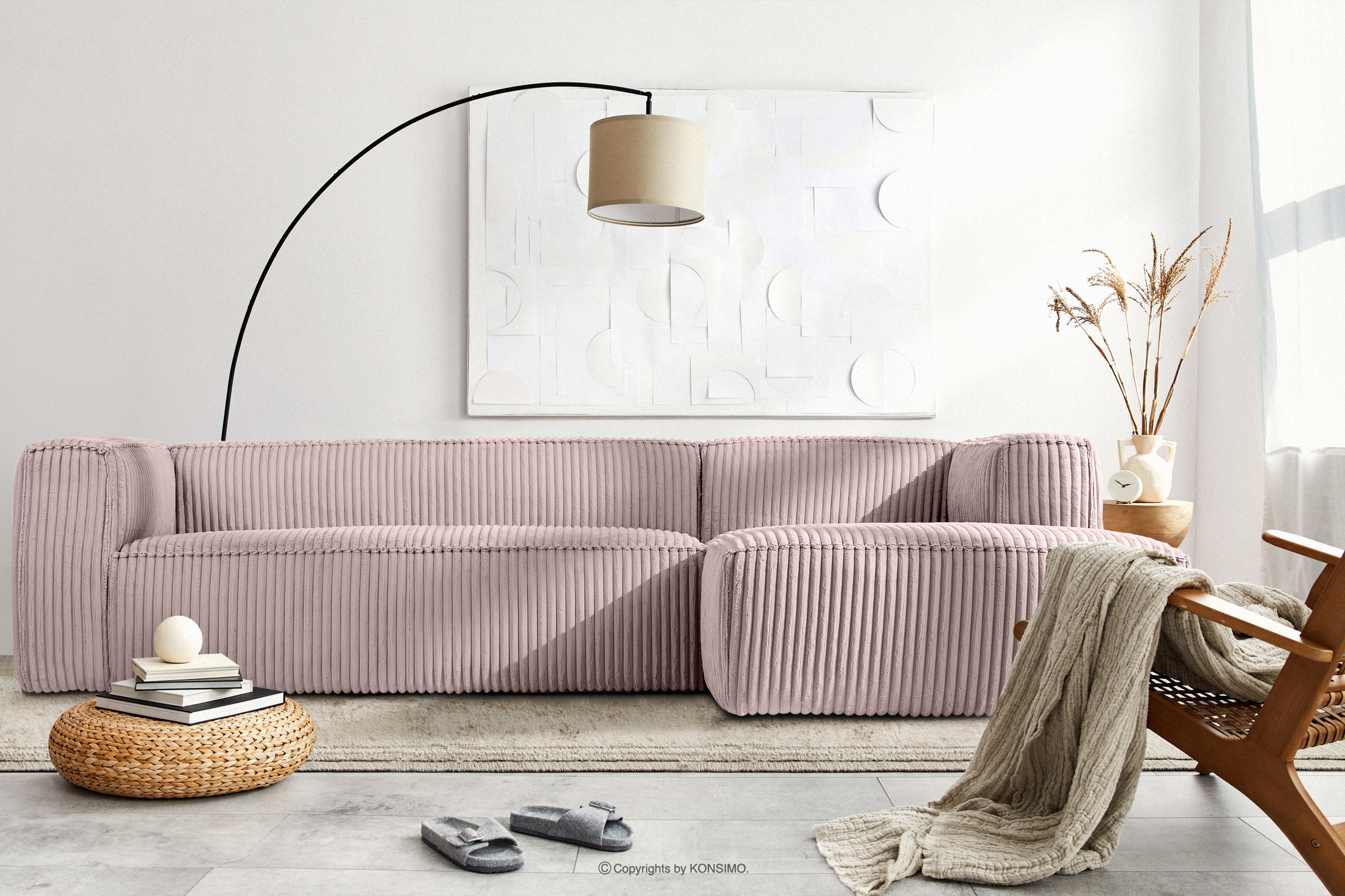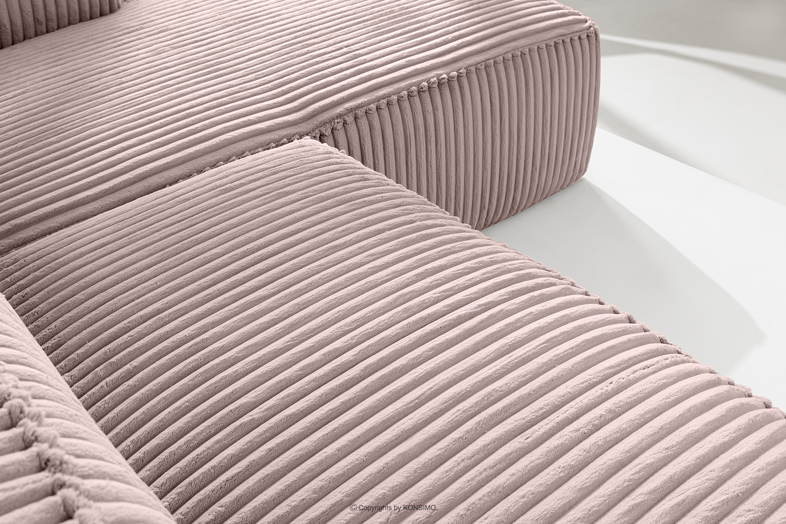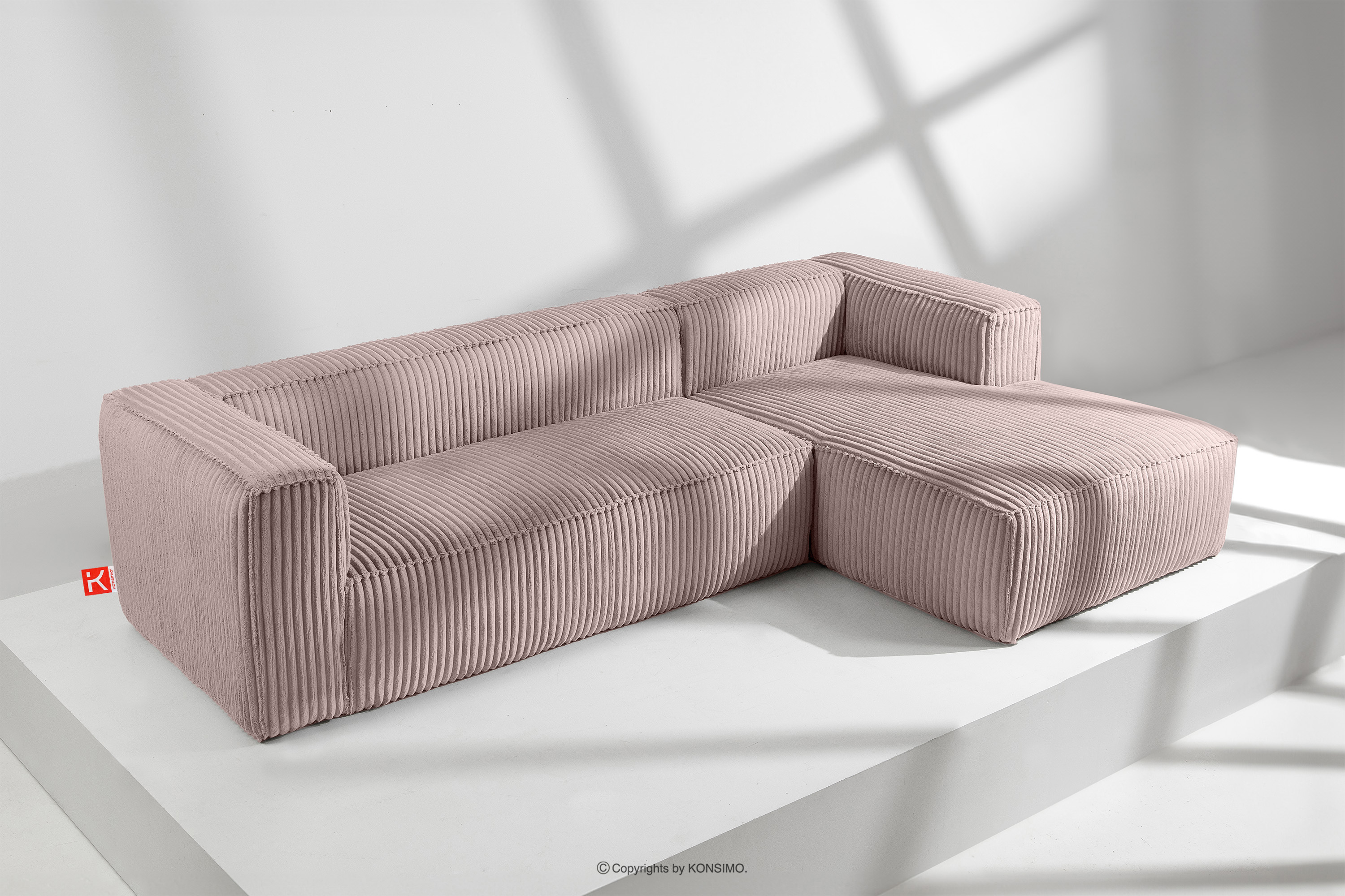 produktu Veľká ružová rohová pohovka z manšestrovej látky, vpravo
